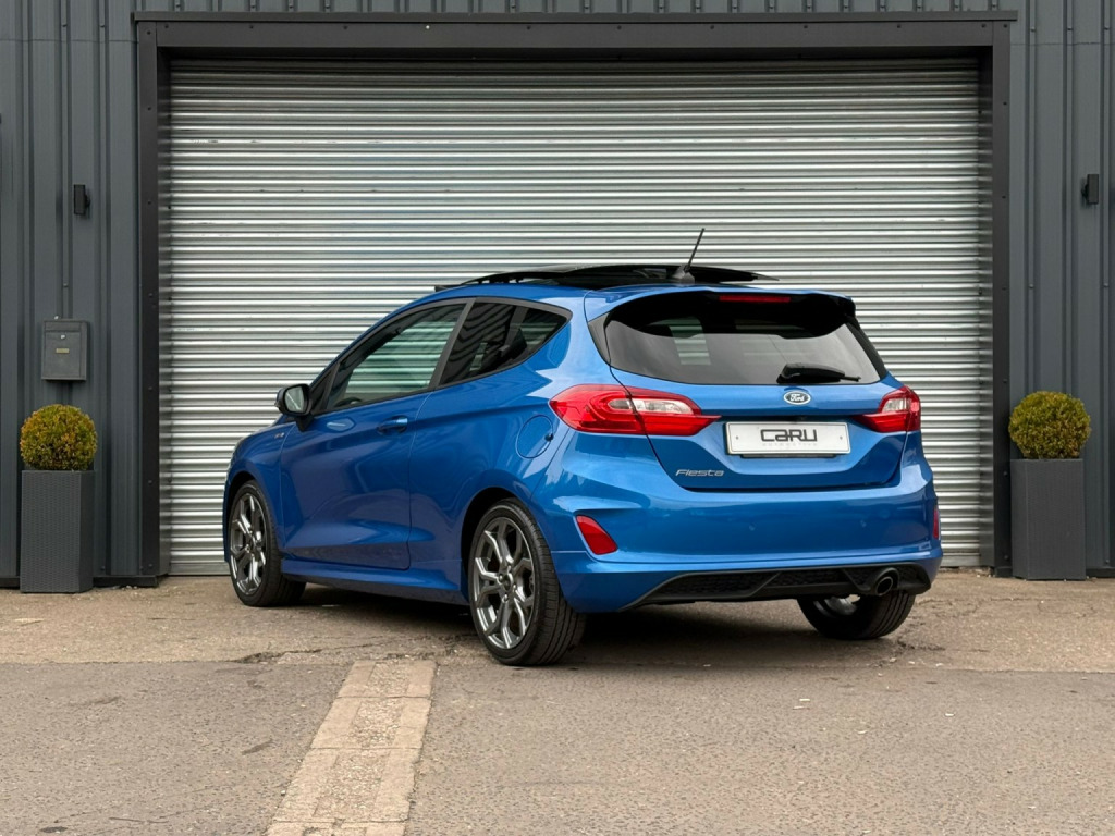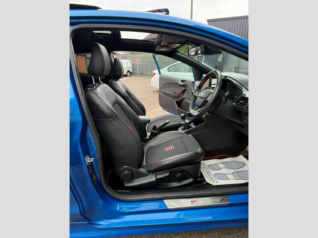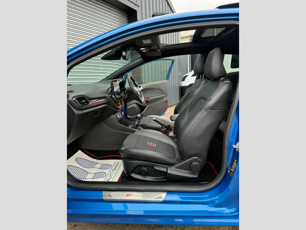 For Sale Is Our 2020 Ford Fiesta St Line Finished In The Stunning Desert Island Blue With Contrasting Black and Red Half Leather Interior. This Particular Car Is In Fantastic Condition Throughout and Is Backed Up With A Great Factory Specification Including, Opening Panoramic Roof, Heated Front Seats and Steering Wheel. The Car Also Has A Fully Documented Service History and All Documentation and 2 Keys Are Available. , We accept debit cards for payments up to £500. For larger payments we accept BACS (bank transfer) only. Please check transfer processing times and limits with your bank if you plan to pay on collection as we are unable to release cars without cleared funds. Please also bring anything you may need to access your online banking on the day including securekeys, card readers etc. We accept cash payments up to £9000 which are subject to a 2% banking fee. Please note a £250 admin fee is applicable for purchases funded by third party finance lenders. , , For Further Information Call Us Today On 01384 476587. Please note: Although every effort is made to ensure the accuracy of every advert and vehicle specification, system and human errors can occur from time to time and it is advised to check for confirmation. , Delivery Also Available. Ask For Further information.