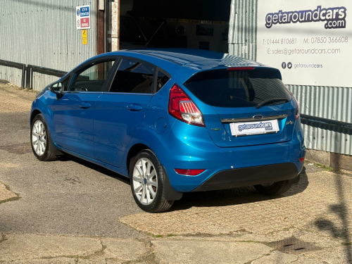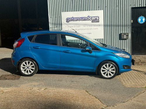 getaround in this 5-speed manual 1.0 petrol Fiesta from Ford. This range topping Titanium model looks great finished in metallic blue with contrasting dark cloth interior. It has a good spec that includes cruise control, quick-clear windscreen, DAB radio with hands-free phone prep, auto lights and air-conditioning. The car has an amazing service history that is made up of some 10-dealer stamps (9-Ford main dealer) and a long MOT. It comes with the owners book pack, fully stamped service booklet, two keys, locking wheel nut and clear HPi certificate. Phone, text or email for an appointment to view this sought after ulez compliant hatchback soon.