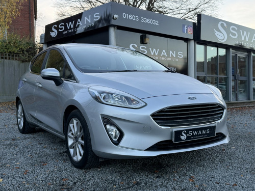2019 Ford Fiesta 1.0 EcoBoost Titanium Petrol Manual 5 Door Hatchback Silver , , - 44281 MILES. - 1 KEEPER FROM NEW . - 195 POUNDS ROAD TAX PER YEAR. - TWO KEYS. - HPI CLEAR. - 3 SERVICE ENTRIES IN TOTAL. 1 OF WHICH FORD MAIN DEALER , , All of our retail vehicles are sold with the Swans Promise, and will go through our rigorous preparation process which includes:, - A minimum of 9 months MOT at point of sale. - No-obligation 2 Year Service Plan quote provided for every customer. - A routine service carried out, if due within next 3 months or 3,000 miles at point of sale. - Thorough safety check and road test carried out by our experienced vehicle technicians. Our on-site workshop takes pride in professionally preparing your new car to a satisfactory standard. - 3 Months Warranty (Upgrades available, please ask for details). - Full HPI Report - all of our cars are HPI checked. - Drive away insurance available, please ask for details, - We do not charge any admin fees*, , **PART EXCHANGE AVAILABLE** , , **PARTNERS WITH CLOSE BROTHER MOTOR FINANCE**, , **COMPETITIVE FINANCE OPTIONS AVAILABLE FOR ALL CREDIT PROFILES, APPLY BELOW AND GET ACCEPTED TODAY! **, , **BROKERS CHARGE FEES, WE DO NOT! TALK TO US FOR A NO-OBLIGATION QUOTE TO ENSURE YOU GET THE LOWEST MONTHLY PAYMENT POSSIBLE**, , **EVERY CAR RECEIVES A PROFESSIONAL VALET UPON ARRIVAL AND REFRESH PRIOR TO COLLECTION**, , **ASK ABOUT OUR UPGRADED VALETING OPTIONS**, , Swans Motor Group are proud to be a highly reputable, family run used vehicle dealership in the Norwich area. Having originally established our business in 2012, we have a friendly team who all benefit from previous main-dealer experience cited to assist you along the journey of purchasing your next vehicle. We have over 60 combined years of experience in various sectors of the motor industry, so you can rest assured that you are in safe hands with Swans. Customer satisfaction is our number one priority; therefore, we offer a stress-free, personable buying experience. We look forward to welcoming you to our business soon!, , We are located close to Norwich City Centre, at 231-245 Heigham Street, Norwich, NR2 4LN. , DISCLAIMER, Although we make every effort to ensure our advertised vehicle specifications are correct, due to being computer-generated, there can sometimes be errors. Please call us to verify any vehicle specifications if you are unsure or require clarification. , Admin fees may apply when using out-of-house finance companies/brokers Please contact us for details. We do not charge any admin fees for using our in-house finance options.