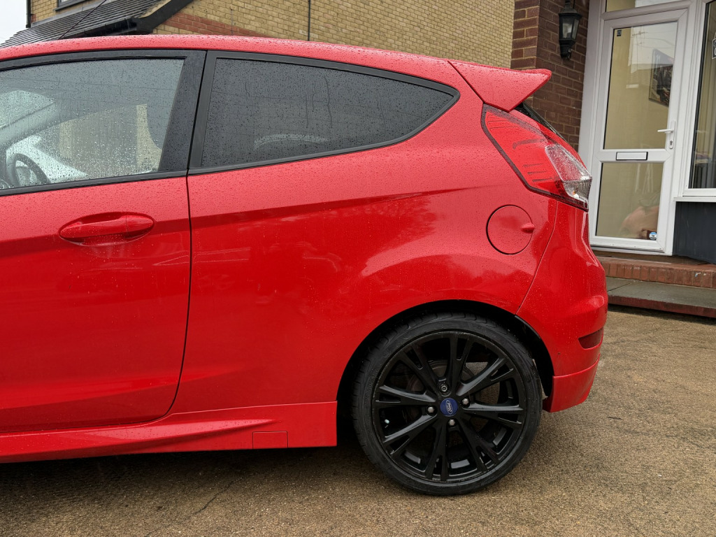 Ford Fiesta 1.0T EcoBoost Zetec S – 2014 (14) – £3995, , 85,394 miles | Petrol | Manual | Red, , For sale is a 2014 Ford Fiesta Zetec S 1.0 Turbo EcoBoost, a great-looking, economical and fun car to drive. , ✔ Cambelt just replaced, ✔ 1 Year MOT, ✔ Good service history, ✔ Low running costs & excellent MPG, ✔ Smooth manual gearbox, , Specification includes:, , Zetec S styling, , Alloy wheels, , Air conditioning, , Bluetooth / USB connectivity, , Heated windscreen, , Electric windows & mirrors, , Remote central locking, , ISOFIX, , The car drives very well, pulls strongly through the gears and is cheap to insure, tax and run. Interior and exterior are in good condition for its age and mileage. , Recent cambelt replacement offers peace of mind, especially on the 1.0 EcoBoost engine. , £3,995
