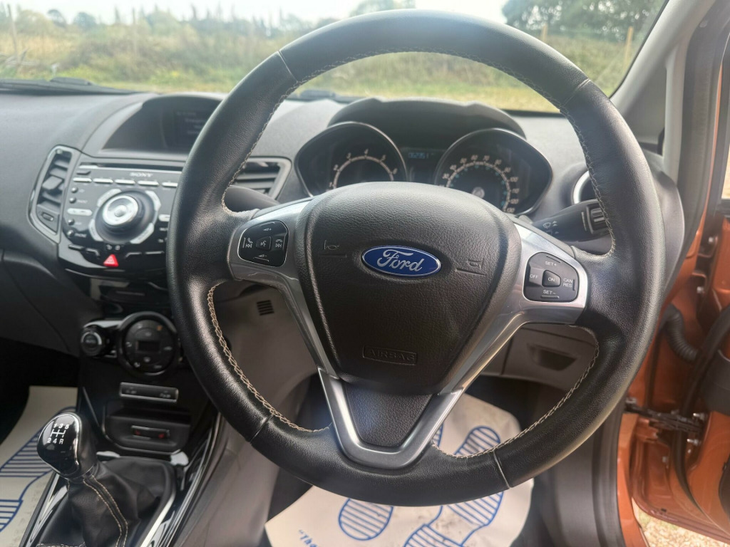 Welcome to K&O Motors – Your Trusted Source for Quality Cars in Southend, Essex. Discover an exciting selection of vehicles, each hand-selected and ready for immediate viewing and purchase. This 2015 Used Ford Fiesta Titanium, finished in stunning metallic Copper is fully ULEZ compliant and offered for sale in Southend-on-Sea, Essex. This vehicle is just one of many premium-quality models available at K&O Motors, all carefully chosen for their condition, value, and performance. With good service history and good condition throughout this is highly spec'd with full heated leather front seats etc, this car is fully prepped and ready for its next owner today. We’re proud to be recognised in the top 5% of Autotrader dealers for five consecutive years, having earned their ‘Highly Rated for Customer Service’ Award annually due to our consistent focus on customer satisfaction. Why choose K&O Motors? We are conveniently located in Southend, Essex and have earned over 295 verified 5-star reviews, with a 99%+ customer satisfaction rate. Every vehicle undergoes a full multi-point health check and is fully HPI clear, ensuring complete peace of mind. Exceptional customer service is our number one priority. We offer competitive part exchange deals and finance packages tailored to all credit backgrounds, including those with poor credit. Nationwide delivery is available at a pre-agreed fee. For added peace of mind, we provide nationwide drive-away warranty cover for up to 3 years. We also offer free collection from Southend Central or Prittlewell train stations, making it easy and convenient for you to visit us. Book an appointment today to view our stock or secure your chosen vehicle with a fully refundable deposit. Our opening hours are Monday to Friday, 9:15 AM to 6:00 PM, and Saturday, 9:15 AM to 1:00 PM. Appointments outside these hours are available on request. At K&O Motors, we don’t just sell cars – we redefine the buying experience. Contact us today or visit us in person. Your journey to a quality vehicle starts here.. 12V Power Socket - Front, 16in Alloy Wheels - 15 Spoke, 4.2in TFT Display, ABS - Anti-lock Braking System, AUX Connection, Aesthetic Lighting Package, Airbags - Curtain, Airbags - Driver Side Knee, Airbags - Front Passenger, Airbags - Head and Thorax, Airbags - Passenger Deactivation, Armrest - Centre Console, Automatic Dimming Rear View Mirror, Automatic Headlights - Rain Sensing Wipers - Auto Dimming Rear View Mirror, Automatic Rain Sensing Wipers, Bluetooth Hands-free Phone, Body Colour Exterior Mirrors, Brake Warning Lights - Automatic Flashing of Brake Lights Under Heavy Braking, Bumpers - Front and Rear - Body Colour, Centre Console - with Trinket Tray - 2x Cup Holders - Illuminated, Chrome Belt Line Finisher, Courtesy Light - Overhead with Theatre-Style Dimming, Courtesy Lights with Map Reading Lights, Cruise Control, DDS - Deflation Detection System, Door Handles - Body Colour, Door Mirrors - Power-Foldable with Puddle Lights, Drivers Airbag, EATC - Electronic Automatic Temperature Control - Climate Control, EBA - Emergency Brake Assist, EBD - Electronic Brakeforce Distribution, ECOmode, EPAS - Electric Power Assisted Steering, ESP - Electronic Stability Programme, Electric Windows - Front with One Touch Lowering Drivers, Emergency Assistance, Emergency Brake Warning - Automatic Hazard Warning Lights, Engine Immobiliser, Floor Mats - Front and Rear - Velour, Ford Easy Fuel Capless Refuelling System with Misfuel Inhibitor, Ford SYNC, Front Fog Lights - Chrome Bezel Rings, Front Lower Grille - Chrome Surround, Front Lower Grille Insert and Surround - Black, Front Seatback Map Pockets - Driver and Passenger, Front Upper Grille - Chrome Finish Surround, Front Upper Grille Insert - Chrome bars, Gear Knob - Leather, Gearshift Indicator Light, Gearshift Knob - Leather-Trimmed with Chrome Finish Bezel, Glovebox - Illuminated, Head Restraints - 2-way Adjustment, Head Restraints - Rear 2-Way Adjustment, Headlights - Automatic, Headlights - Follow Me Home, Headlights - Halogen Projector with Silver Bezel, Headliner - Woven, Heated Front Windscreen, High-Mounted Rear Brake Light, Hill Start Assist, IPS - Intelligent Protection System, Interior Door Lever - Chrome Finish, LED Ambient Courtesy Lighting, LED Daytime Running Lights, Leather-Trimmed Handbrake, Loadspace Compartment Light, Loadspace Floor Carpet, Locking Wheel Nuts, MyKey, Perimeter Anti Theft Alarm, Pollen Filter, Rake and Reach Steering Adjustable, Rear Courtesy Lights, Rear Privacy Glass, Rear Spoiler - Body Colour, Remote Central Locking, Removable Package Tray, Seats - 60-40 Split Folding Back and Fixed Cushion, Seats - Drivers 4-Way Adjustment, Seats - Drivers Lumbar Support, Seats - Front Comfort Style, Seats - ISOFIX Mounting Brackets for Child Seats, Sony CD-Radio Player-MP3 Compatibility, Sony DAB Digital Radio, Speakers - x6, Steering Wheel - 3-Spoke - Leather Trimmed with Bezel, Steering Wheel - Multifunction, Stowage Pockets - Driver and Front Passenger Seatbacks, Tailgate Handle - Body Colour with Chrome Finisher, Traction Control - TC, Trip Computer, Tyre Inflator Kit, Tyre Pressure Monitoring System, USB Connection, Voice Control - Audio, Parking Sensor - Front and Rear, Active City Stop, 17in Alloy Wheels - 8-Spoke, Electric Windows - Rear, Heated Driver and Passenger Seats, Leather Pack - Modena Leather - Charcoal Black.