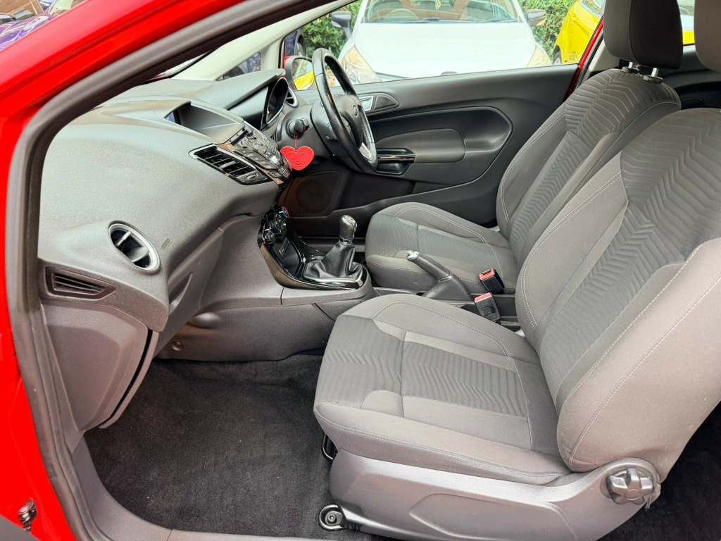 LOW MILEAGE, LOW TAX AT ONLY £20, LOW INSURANCE. 2 KEYS, HIGH SPEC INCLUDING Air ConditioningBluetoothDABHeated Front ScreenMedia ConnectivityRadio, CD and more.This 2017 Ford Fiesta 1.0 Zetec Hatchback 3dr with a mileage of 38213 miles is an impressive hatchback powered by petrol, boasting a manual transmission and Euro 6 (s/s) compliance with 80 ps. It offers 5 seats and 3 doors, making it a convenient and compact choice for city driving. The exterior is enhanced with 15-inch Alloy Wheels, body-coloured bumpers, and electrically-operated and heated door mirrors with integrated side indicators. Inside, the car features electrically-operated front windows with one-touch functionality, adding to the overall convenience. With its sleek design and practical features, this Ford Fiesta is a top choice for a versatile and stylish driving experience. BY APPOINTMENT ONLY! in alloy wheels - 5x2 spoke, bumpers - front and rear body colour, door handles - body colour, door mirrors - electrically-operated and heated - integrated side indicators - body colour housing, electrically-operated front windows with one touch, front lower grille insert - black, front upper grille - chrome finish surround, front upper grille insert - chrome bars, locking wheel nuts, quickclear heated windscreen, rear spoiler - body colour, tailgate handle - body colour, tinted glass, tyre repair kit, ambient lighting, centre console, courtesy light - front with map reading lights, courtesy light - overhead with theatre-style dimming, courtesy light - rear, footwell lights - driver and passenger, gearshift knob - leather, glovebox - illuminated, interior door lever - chrome finish, leather-trimmed handbrake, loadspace compartment light, loadspace floor carpet, manual air conditioning, mykey, pollen filter, removable package tray, seats - drivers 4-way manual adjustment, steering column - rake and reach adjustment, steering wheel - 3 spoke - leather trimmed, wipers - front variable intermittent, double locking, esp - electronic stability programme, emergency brake warning - automatic hazard warning lights, engine immobiliser - passive anti-theft system, first aid kit and warning traingle storage, ford easy fuel capless refuelling system with misfuel inhibitor, hill start assist, ips - intelligent protection system, remote central locking with two flip keys, tailgate wash-wipe, epas - electric power assisted steering, gear shift indicator, suspension - front stabiliser bar, trip computer, tyre pressure monitoring system, ford dab with ford sync, power point socket - 12 v, front fog lights - chrome bezel rings, halogen projector headlights with silver surrounds and led daytime running lights, headlights - courtesy delay, high-mounted rear brake light