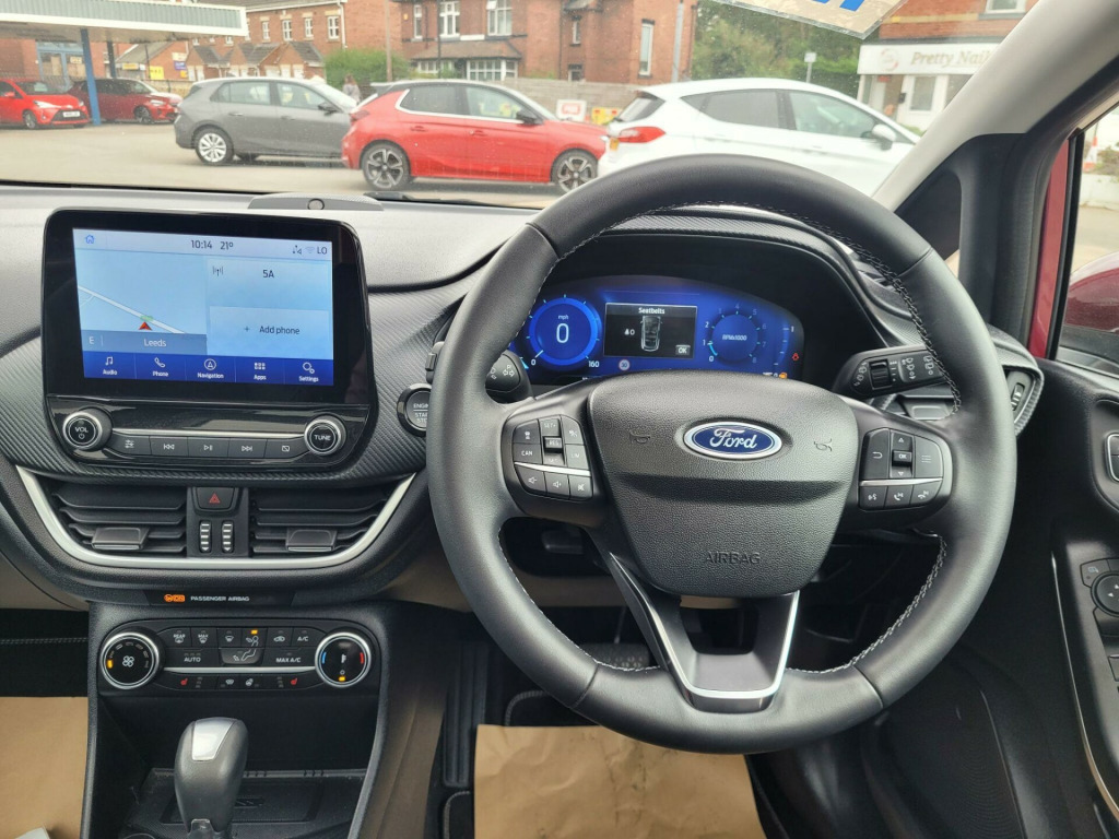 Priced At £17,999.00 This One Privately Owned Ford Fiesta 1.0T 125PS Ecoboost Titanium Vignale Automatic 5dr In Beautiful Berry Red With Only 13,448 Miles Recorded. Beautifully Presented And In Addition To The Standard Specification It Also Has The Factory Fitted Optional Features Worth Over £1,600.00, Which Include: A Drivers Assistance Pack ( Adaptive Cruise Control With The Stop And Go Functionality ), Traffic Sign Recognition, Driver Alert System And Intelligent Speed Limiter), A Parking Pack ( Active Park Assist With Front Parking Sensors And Door Edge Protectors And Finally A Panoramic Roof. Our Sale Price Would Include A Full 12 Month MOT And A 3 Months/Unlimited Mileage Ford Protect Parts And Labour Warranty. This Warranty Can Be Extended For Up To A Further 3 Years At The New Owners Request For An Additional Charge. Please Ask Our Sales Team For Further Details. We Do Not Charge Any Administration Fees, The Only Add On Costs Are For Road Tax And Any Additional Warranty Period Requested By The New Keeper.
