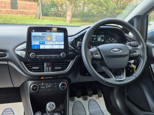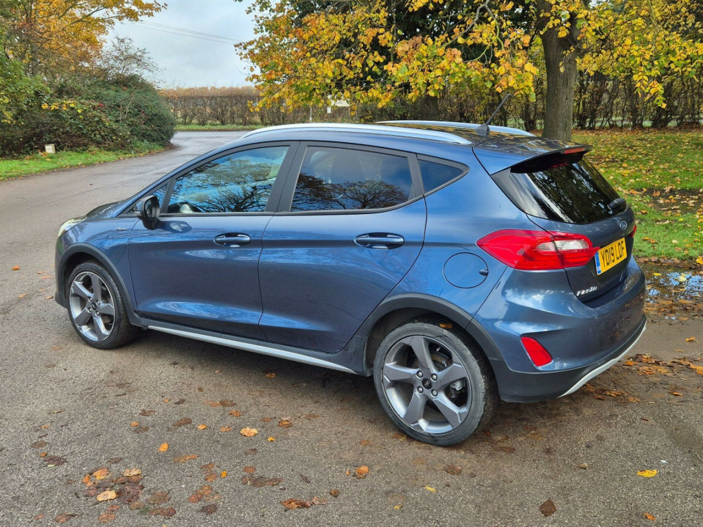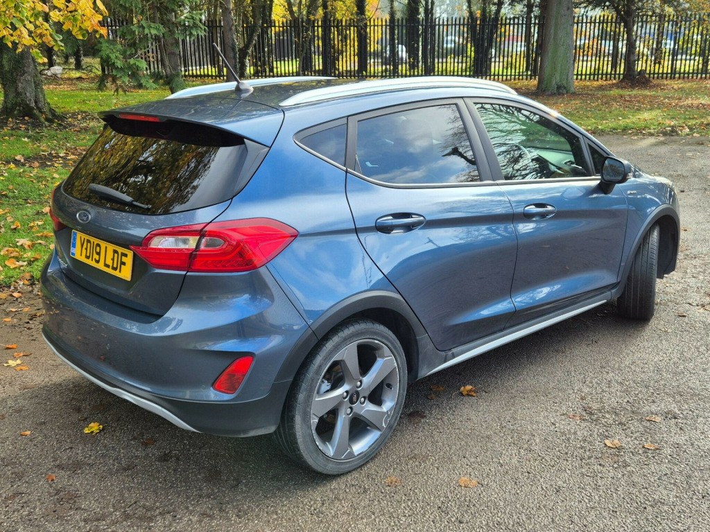 This 2019 Ford Fiesta Active 1 boasts a clear vehicle history, offering you peace of mind. This stylish hatchback features a 1.0 litre petrol engine and meets Euro 6 emissions standards, contributing to its low CO2 emissions. Inside, you'll find a manual air conditioning system for your comfort, and the Ford SYNC system with a touchscreen, DAB radio, Apple CarPlay, and Android Auto keeps you connected and entertained on every journey. Automatic headlights are also included for added convenience.The Ford Fiesta Active 1 is designed for an engaging drive, with an acceleration of 0 to 62 miles per hour in just 10.0 seconds. Its Euro 6 compliant engine and low CO2 emissions highlight its efficiency compared to other vehicles in its class. This combination of practical features, enjoyable performance, and a clean vehicle history makes this Fiesta a compelling choice., in alloy wheels - 5 spoke rough metal - machined finish, 3-spoke leather trimmed steering wheel with audio controls, active logo front door threshold plates, air conditioning - manual, airbags - driver and front passenger, airbags - front side impact, airbags - front and rear side curtain, anti-lock braking system - abs with electronic brake force distribution - ebd, black belt line finisher, centre console with two cupholders and 12v power point, courtesy light - front map light and rear - overhead led, door handles - body colour, door lever - chrome finish, door mirrors - heated - electric - integrated side indicators - body coloured, epas - electric power assisted steering, electric windows - rear, emergency brake warning - automatic hazard warning lights, enhanced electronic stability control - esc with traction control - emergency brake assist - eba - hill start assist - hsa and trailer sway control, floor mats - front, ford easy-fuel capless refuelling system, ford sync with touchscreen - dab radio - apple carplay and android auto, front bumper - unique active, front fog lights including cornering lights - bright bezel, front seat - drivers manual height and fore-aft adjustment, front seat - drivers manual lumbar support adjustment, front seats - sports style, front upper grille - unique active design, gearshift knob - leather-trimmed, glovebox - illuminated, headlights - automatic on-off, headlights - halogen projector with black bezel and dedicated led daytime running lights, headliner - woven, ips - intelligent protection system, leather-trimmed handbrake, mykey, ncap pack, overhead console - sunglasses holder, quickclear heated windscreen, rear bumper - unique active with silver-finish diffuser, rear fog lamps, rear lights - led night signature, rear privacy glass, rear seat - 60-40 split back and cushion, rear spoiler - body colour with centre high mounted stop light, remote central locking and engine immobiliser, rough road suspension including increased ride height, rugged bodystyling kit with active front wing badges, seats - isofix mounting provision for child seats, selectable drive modes - eco - normal - slippery, side panel - unique active bodyside mouldings, silver roof rails, steering column - rake and reach adjustment, tailgate wash-wipe, thatcham category 1 alarm, trip computer, tyre pressure monitoring system - tpms, tyre repair kit, warning triangle storage, windows - electrically operated front and rear with one touch lowering-closing on drivers side and global closing, wipers - standard with 6 speed interval settings