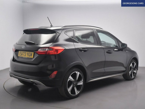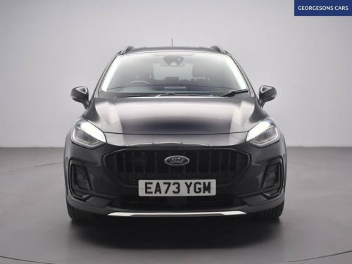 The Ford Fiesta 1.0T EcoBoost Active combines a responsive 1.0-litre turbo petrol engine with 125hp, delivering 0-62mph in 9.9 seconds and up to 55.4mpg in this front-wheel-drive setup with a precise 6-speed manual transmission. The Active trim offers crossover appeal with raised ride height, 17-inch alloy wheels, and practical styling for versatile urban driving. With one owner and three services, this Fiesta is in excellent condition. Navigate effortlessly with Apple CarPlay, Bluetooth, and DAB radio, ensuring seamless connectivity on every journey. Parking is a breeze thanks to the parking sensors, providing confidence in tight spaces. Stay comfortable with air conditioning and a heated windscreen, offering quick defrosting on chilly mornings. Cruise control with speed limiter enhances relaxation on highways, while selectable drive modes provide tailored performance, whether for efficiency or dynamic driving. The push-button start adds daily convenience, and the spacious five-door hatchback design includes a 311-litre boot for practicality. Contact us today to test drive this stylish supermini! 17in Alloy Wheels - 5 Spoke Rough Metal , 4.2in TFT Ice Blue Illumination Analogue, Active Grille Shutter, Air Conditioning - Manual, Airbags - Driver and Front Passenger, Airbags - Front Side Impact, Airbags - Side Curtain, Anti-Lock Braking System - ABS with Elec, Auto Dimming Rear View Mirror, Black Roof Rails, Cargo Area Cover, Centre Console - Premium with Openable S, Cloth - Black-Nordic Blue with Dark Blue, Courtesy Light - Front LED with Map-read, Cruise Control includes Speed Limiter an, Door Handles - Body Colour, Door Lever - Chrome Finish, Door Mirrors - Heated - Electric - Integ, Electric Windows - Rear, Emergency Brake Warning - Automatic Flas, Enhanced Electronic Stability Con
