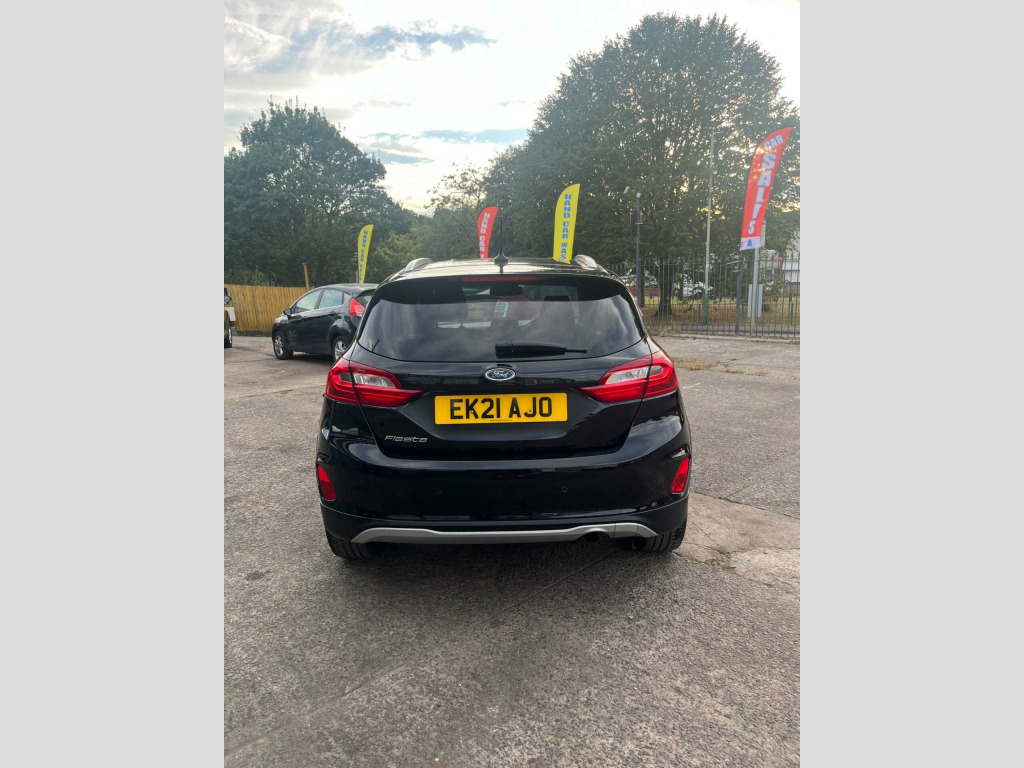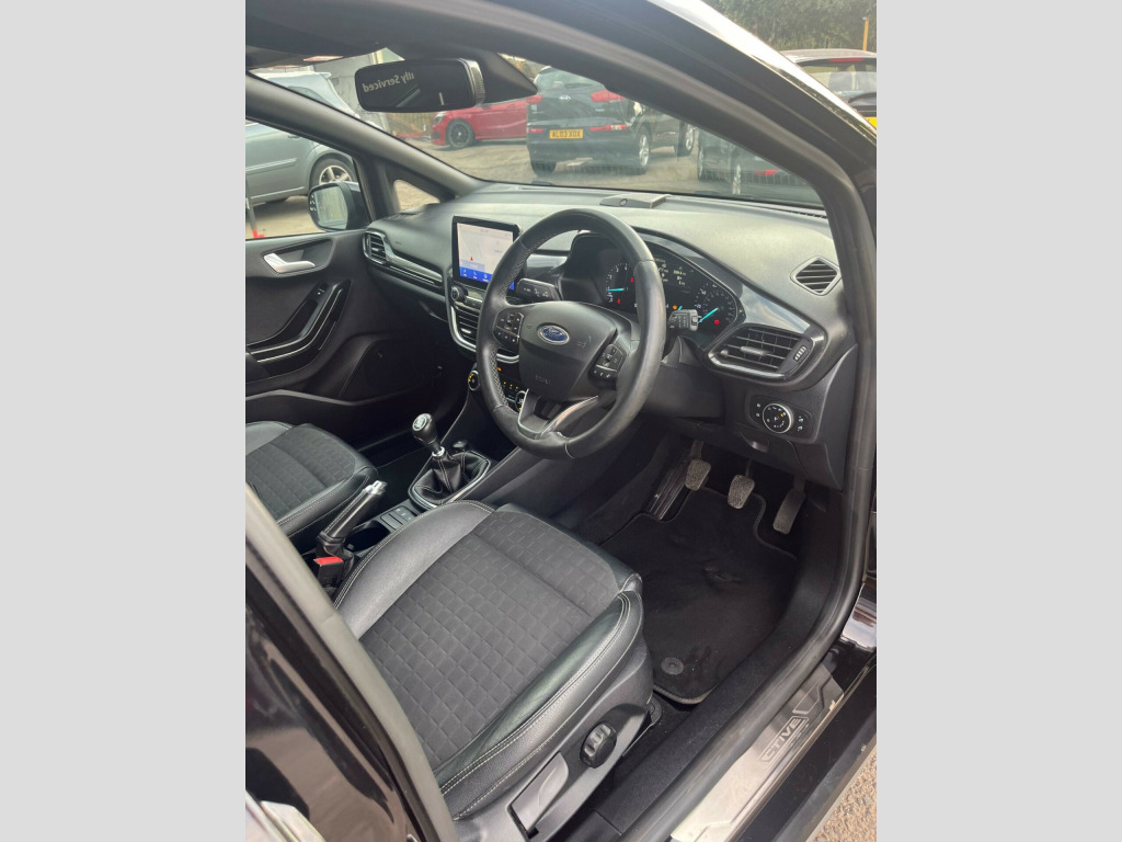 With only one previous owner, this 2021 Ford Fiesta Active X Edition is a great option. Featuring a 1.0L petrol engine and meeting Euro 6 emission standards, this model combines efficiency with modern technology. The Active X Edition trim adds a touch of sophistication to this popular hatchback.Inside, you'll find the Comfort Pack, which includes heated seats and a heated steering wheel, perfect for those chilly mornings. The Electronic Automatic Temperature Control (EATC) ensures a comfortable cabin environment, while the rear parking distance sensors make parking a breeze. The Ford KeyFree System adds convenience with keyless entry. Safety is enhanced with the NCAP Pack, including automatic headlights. With fuel economy figures of 51 mpg, this Fiesta is more efficient than similar vehicles. Furthermore, acceleration from 0-62mph in 10.0 seconds means that this Fiesta is quicker than other comparable cars. mfort pack, full led headlamps, agate black contrast roof and mirrors, 18in alloy wheels - 5-spoke shadow black machined finish, 4.2in tft instrument cluster screen, active logo front door threshold plates, air conditioning - electronic automatic temperature control - eatc, airbags - driver and front passenger, airbags - front side impact, airbags - front and rear side curtain, anti-lock braking system - abs with electronic brake force distribution - ebd, automatic rain sensing wipers and auto-dimming rear view mirror, b and o play in-car audio premium sound system with ford sync 3 navigation system and fordpass connect - embedded modem, black interior headlining, body colour bumpers, centre console with armrest and illuminated cupholders, courtesy light - front map light and rear - overhead led, cross-over body styling kit, cruise control, door handles - body colour, door lever - chrome finish, door mirrors - electrically-operated and heated - power-foldable with integrated side indicators - body colour housings and puddle lights, driver seat with manual height adjust, drivers seat lumbar support and passenger seat lumbar support, dual tone horn, epas - electric power assisted steering, electric windows - front, electric windows - rear, electronic stability programme - esp with hill start assist, emergency brake warning - automatic hazard warning lights, floor mats - front and rear, ford easy-fuel capless refuelling system, ford keyfree system, front fog lights with cornering function, front seats - sports style, glovebox - illuminated, halogen projector headlights with led daytime running lights, ips - intelligent protection system, interior ambient led lighting, manual passenger seat height adjustment, mesh design front grille with chrome surround, mykey, ncap pack, overhead console - sunglasses holder, parking distance sensors - rear, quickclear heated windscreen, rear fog lamps, rear lights - led night signature, rear privacy glass, rear seat - 60-40 split back and cushion, remote central-double locking, rough road suspension including increased ride height, rugged bodystyling kit with active front wing badges, seats - isofix mounting provision for child seats, selectable drive modes, sensico steering wheel, sensico wrapped handbrake and gear knob, side panel - unique active bodyside mouldings, silver roof rails, steering column - rake and reach adjustment, tailgate wash-wipe, thatcham category 1 alarm, trip computer, tyre pressure monitoring system - tpms, tyre repair kit, usb connection x2, ultra low rolling resistance tyres, warning triangle storage