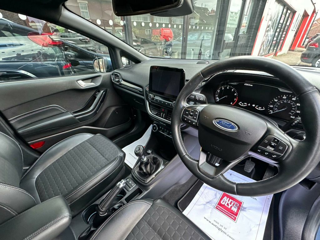 This 2020 Ford Fiesta T Active X Edition offers a superb blend of style and technology, making it a standout choice. This Euro 6 compliant model boasts a responsive 1.0L petrol engine and comes equipped with the convenient Ford Key Free System for keyless entry. Inside, you'll find the impressive B and O PLAY In-Car Audio Premium Sound System, integrated with the Ford SYNC 3 Navigation System and Ford Pass Connect, offering seamless connectivity with Android Auto and Apple CarPlay. For added ease, it includes rear parking distance sensors and electronic automatic air conditioning, ensuring a comfortable and stress free driving experience. The NCAP Pack, featuring automatic headlights, further enhances its safety credentials.With a fuel economy of 52 mpg, this Fiesta T Active X Edition is designed to be economical for your journeys, indicating it performs better than many similar vehicles in its class. Its acceleration from 0-62mph in just 10.6 seconds demonstrates a lively performance that complements its efficient running. This combination of impressive fuel economy and brisk acceleration highlights its superior capabilities compared to other cars you might consider.. 18in Alloy Wheels - 5-Spoke Shadow Black Machined Finish, 4.2in TFT Instrument Cluster Screen, Active Logo Front Door Threshold Plates, Air Conditioning - Electronic Automatic Temperature Control - EATC, Airbags - Driver and Front Passenger, Airbags - Front Side Impact, Airbags - Front and Rear Side Curtain, Anti-Lock Braking System - ABS with Electronic Brake Force Distribution - EBD, Automatic Rain Sensing Wipers and Auto-Dimming Rear View Mirror, B and O PLAY In-Car Audio Premium Sound System with Ford SYNC 3 Navigation System and FordPass Connect - Embedded Modem, Black Interior Headlining, Body Colour Bumpers, Centre Console with Armrest and Illuminated Cupholders, Courtesy Light - Front Map Light and Rear - Overhead LED, Cross-Over Body Styling Kit, Cruise Control, Door Handles - Body Colour, Door Lever - Chrome Finish, Door Mirrors - Electrically-Operated and Heated - Power-Foldable with Integrated Side Indicators - Body Colour Housings and Puddle Lights, Driver Seat with Manual Height Adjust, Drivers Seat Lumbar Support and Passenger Seat Lumbar Support, Dual Tone Horn, EPAS - Electric Power Assisted Steering, Electric Windows - Front, Electric Windows - Rear, Electronic Stability Programme - ESP with Hill Start Assist, Emergency Brake Warning - Automatic Hazard Warning Lights, Floor Mats - Front and Rear, Ford Easy-Fuel Capless Refuelling System, Ford KeyFree System, Front Fog Lights with Cornering Function, Front Seats - Sports Style, Glovebox - Illuminated, Halogen Projector Headlights with LED Daytime Running Lights, IPS - Intelligent Protection System, Interior Ambient LED Lighting, Manual Passenger Seat Height Adjustment, Mesh Design Front Grille with Chrome Surround, MyKey, NCAP Pack, Overhead Console - Sunglasses Holder, Parking Distance Sensors - Rear, Quickclear Heated Windscreen, Rear Fog Lamps, Rear Lights - LED Night Signature, Rear Privacy Glass, Rear Seat - 60-40 Split Back and Cushion, Remote Central-Double Locking, Rough Road Suspension Including Increased Ride Height, Rugged Bodystyling Kit with Active Front Wing Badges, Seats - ISOFIX Mounting Provision for Child Seats, Selectable Drive Modes, Sensico Steering Wheel, Sensico Wrapped Handbrake and Gear Knob, Side Panel - Unique Active Bodyside Mouldings, Silver Roof Rails, Steering Column - Rake and Reach Adjustment, Tailgate Wash-Wipe, Thatcham Category 1 Alarm, Trip Computer, Tyre Pressure Monitoring System - TPMS, Tyre Repair Kit, USB Connection x2, Ultra Low Rolling Resistance Tyres, Warning Triangle Storage. Full service history