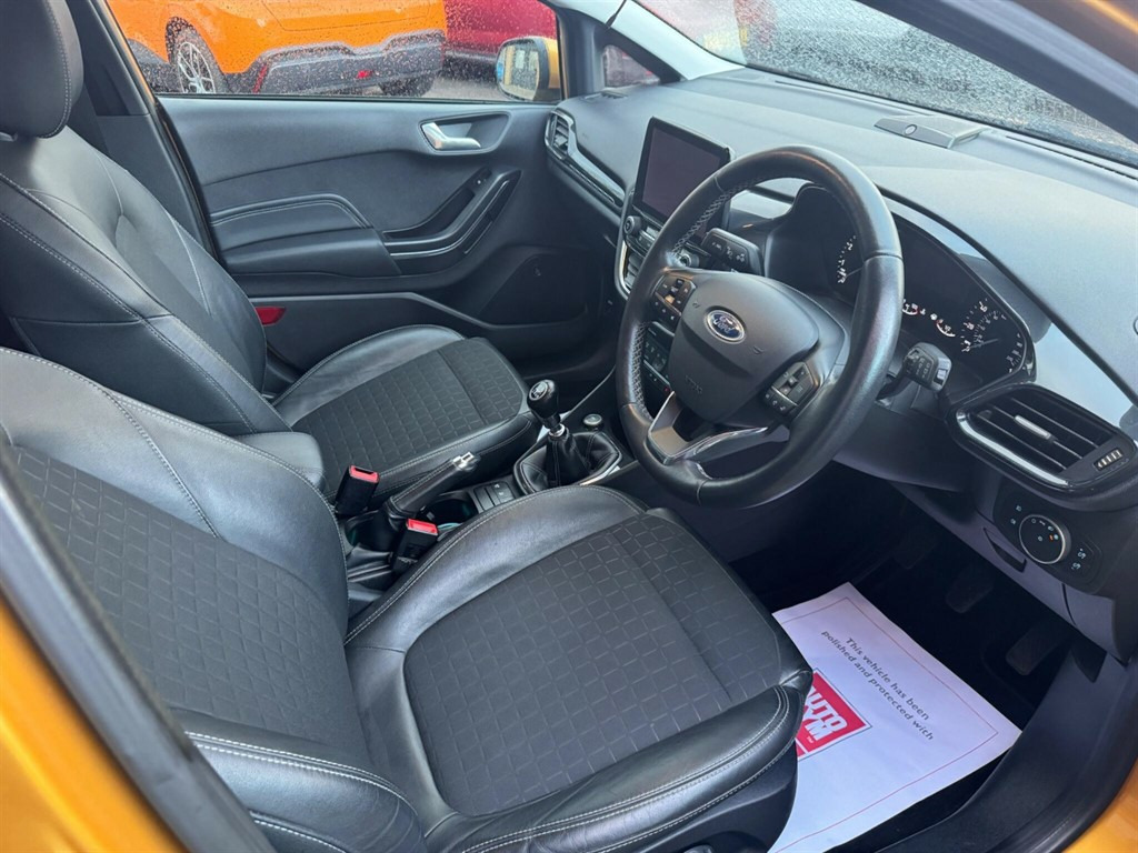 This 2018 Ford Fiesta T Active X offers a compelling blend of style and practicality, making it an excellent choice for those seeking a reliable and well equipped hatchback. As a Euro 6 compliant model, it benefits from efficient 1.0L petrol engine performance. This particular Active X trim level comes with a host of desirable features designed to enhance your driving experience, including the Ford Navigation System with Ford SYNC 3, which seamlessly integrates Apple CarPlay and Android Auto for effortless connectivity. Manoeuvring is made simpler with a rear view camera and rear parking sensors, while automatic headlights are included as part of the NCAP Pack for added convenience and safety. Inside, you'll find climate control with Electronic Automatic Temperature Control, a DAB radio, and a total of six speakers to enjoy your music. Full service history. The Ford Fiesta T Active X stands out with its impressive fuel economy, achieving a highlight of 54 miles per gallon, which indicates it is more economical than many similar vehicles. Furthermore, its acceleration from 0 to 62 miles per hour in just 9.0 seconds demonstrates a responsive and engaging driving performance, suggesting it offers a more spirited drive compared to other cars in its class. These highlights, combined with its comprehensive feature set, make this 2018 Fiesta a well rounded and attractive option. 17in Alloy Wheels - 5 Spoke Rough Metal - Machined Finish,3-Spoke Leather Trimmed Steering Wheel with Audio Controls,4.2in TFT Instrument Cluster Screen,ABS - Anti-lock Braking System,Active Logo Front Door Threshold Plates,Air Conditioning - Electronic Automatic Temperature Control - EATC,Airbags - Driver,Airbags - Front Passenger,Airbags - Front and Rear Side Curtain,Airbags - Side Curtain,Airbags - Side Impact,Automatic Rain Sensing Wipers and Auto-Dimming Rear View Mirror,Centre Console with Armrest and Illuminated Cupholders,Chrome Belt Line Finisher,Cruise Control,Door Handles - Body Colour,Door Mirrors - Power-Foldable with Puddle Lights,Driver Alert,Driver and Passenger Seat Height and Lumbar Support,Electric Windows - Rear,Electrically-Operated Front Windows with One Touch Drivers,Electronic Stability Programme - ESP with Hill Start Assist,Floor Mats - Front and Rear,Ford Easy Fuel System,Ford KeyFree System,Ford Navigation System with Ford SYNC 3 - Apple CarPlay and Android Auto,Ford SYNC3 8in Touchscreen - DAB Radio - Emergency Assistance - Apple CarPlay - Android Auto - 2 USB Sockets with 6 Speakers,Front Bumper - Body Colour,Front Fog Lamps with Cornering Lights,Headlights - Automatic High Beam Assist,Headlights - Halogen with LED Daytime Running Lights,Heated Driver and Passenger Seats,Leather-Trimmed Handbrake,Manual Drivers Seat Height Adjustment,MyKey,NCAP Pack,Power Steering,Quickclear Heated Windscreen,Rear Lights - LED Night Signature,Rear Privacy Glass,Rear View Camera,Remote Central Locking and Engine Immobiliser,Rough Road Suspension Including Increased Ride Height,Rugged Bodystyling Kit with Active Front Wing Badges,Seats - Passenger Lumbar Support,Selectable Drive Modes - ECO - Normal - Slippery,Silver Roof Rails,TSR - Traffic Sign Recognition,Thatcham Alarm,Trip Computer,Tyre Pressure Monitoring System - TPMS,Tyre Repair Kit