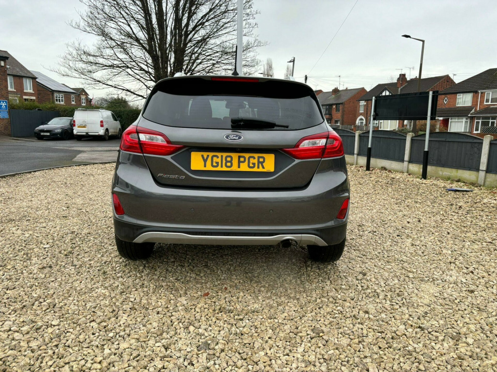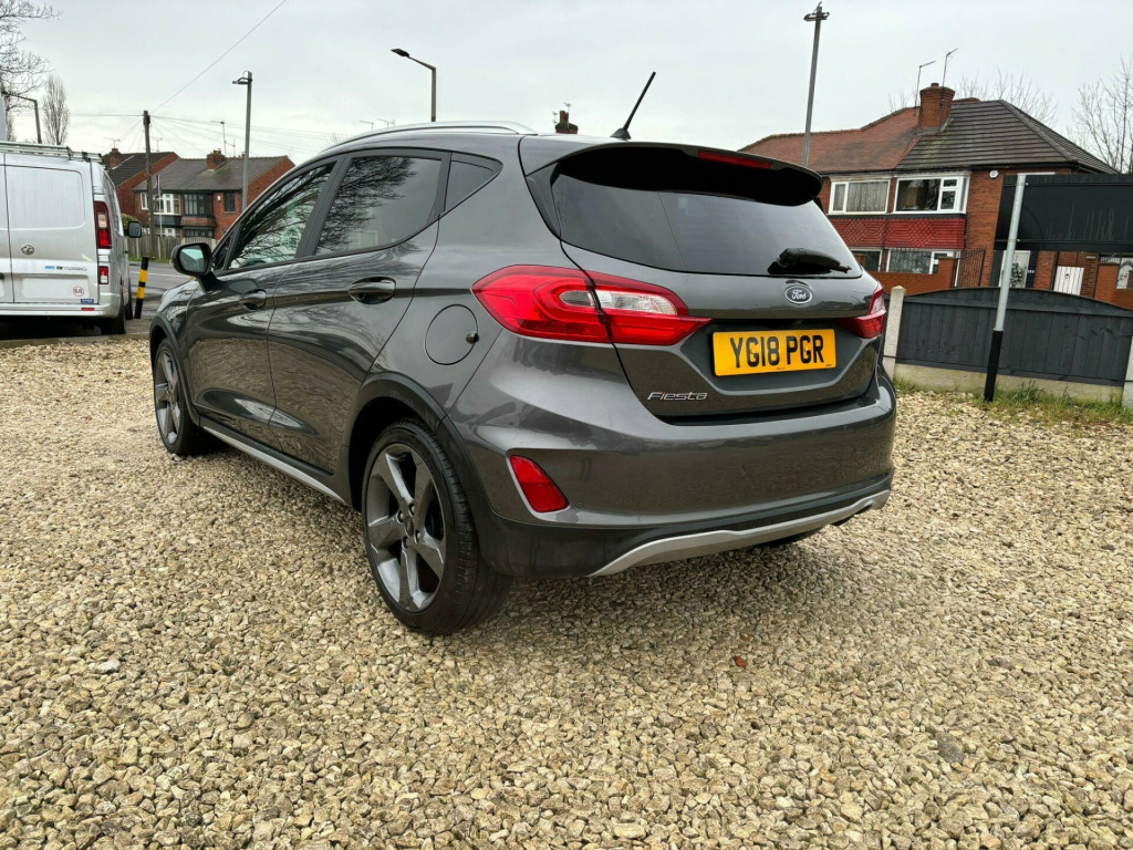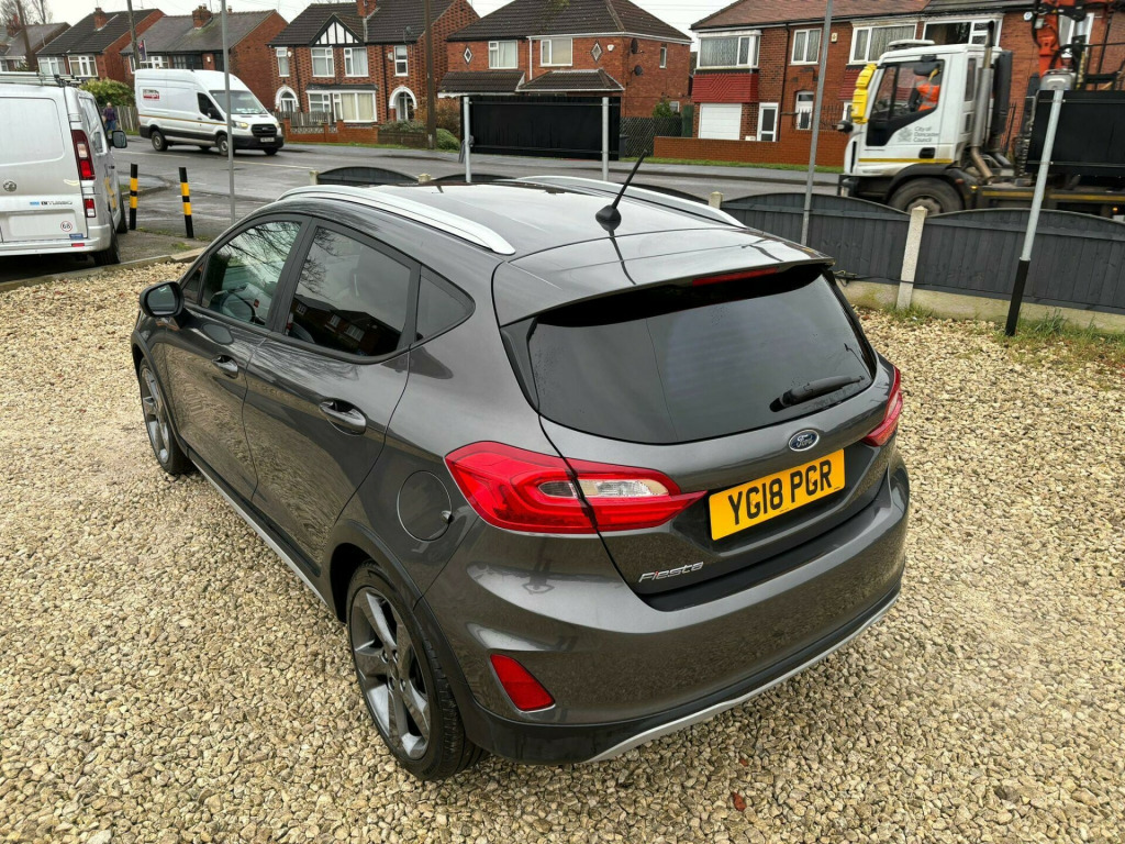 5 Service Stamps In The Book - Last Serviced January 2026 - Mot Nov 2026 With No AdvisoriesThis 2018 Ford Fiesta T Active X boasts a clear vehicle history, offering you peace of mind. This stylish hatchback features a 1.0 litre petrol engine and meets Euro 6 emissions standards. It comes equipped with a Driver Assistance Pack including adaptive cruise control, full LED headlamps for superior visibility, and a premium B and O PLAY in car audio system for an enhanced listening experience. Convenience is key with the Ford KeyFree System allowing keyless entry, and parking is made easier with a rear view camera and rear parking sensors.Experience impressive efficiency with a highlight fuel economy of 57 miles per gallon, alongside low CO2 emissions. This Fiesta also offers brisk acceleration, reaching 0 to 62 miles per hour in just 10.0 seconds. These highlights demonstrate how this particular Ford Fiesta T Active X offers a compelling blend of performance, technology, and economy compared to other vehicles in its class.. 17in Alloy Wheels - 5 Spoke Rough Metal - Machined Finish, 3-Spoke Leather Trimmed Steering Wheel with Audio Controls, 4.2in TFT Instrument Cluster Screen, ABS - Anti-lock Braking System, Active Logo Front Door Threshold Plates, Air Conditioning - Electronic Automatic Temperature Control - EATC, Airbags - Driver, Airbags - Front Passenger, Airbags - Front and Rear Side Curtain, Airbags - Side Curtain, Airbags - Side Impact, Automatic Rain Sensing Wipers and Auto-Dimming Rear View Mirror, Centre Console with Armrest and Illuminated Cupholders, Chrome Belt Line Finisher, Cruise Control, Door Handles - Body Colour, Door Mirrors - Power-Foldable with Puddle Lights, Driver Alert, Driver and Passenger Seat Height and Lumbar Support, Electric Windows - Rear, Electrically-Operated Front Windows with One Touch Drivers, Electronic Stability Programme - ESP with Hill Start Assist, Floor Mats - Front and Rear, Ford Easy Fuel System, Ford KeyFree System, Ford Navigation System with Ford SYNC 3 - Apple CarPlay and Android Auto, Ford SYNC3 8in Touchscreen - DAB Radio - Emergency Assistance - Apple CarPlay - Android Auto - 2 USB Sockets with 6 Speakers, Front Bumper - Body Colour, Front Fog Lamps with Cornering Lights, Headlights - Automatic High Beam Assist, Headlights - Halogen with LED Daytime Running Lights, Heated Driver and Passenger Seats, Leather-Trimmed Handbrake, Manual Drivers Seat Height Adjustment, MyKey, NCAP Pack, Power Steering, Quickclear Heated Windscreen, Rear Lights - LED Night Signature, Rear Privacy Glass, Rear View Camera, Remote Central Locking and Engine Immobiliser, Rough Road Suspension Including Increased Ride Height, Rugged Bodystyling Kit with Active Front Wing Badges, Seats - Passenger Lumbar Support, Selectable Drive Modes - ECO - Normal - Slippery, Silver Roof Rails, TSR - Traffic Sign Recognition, Thatcham Alarm, Trip Computer, Tyre Pressure Monitoring System - TPMS, Tyre Repair Kit, B and O PLAY In-Car Audio Premium Sound System, Driver Assistance Pack, Full LED Headlamps, Flag Partial Leather - Charcoal.