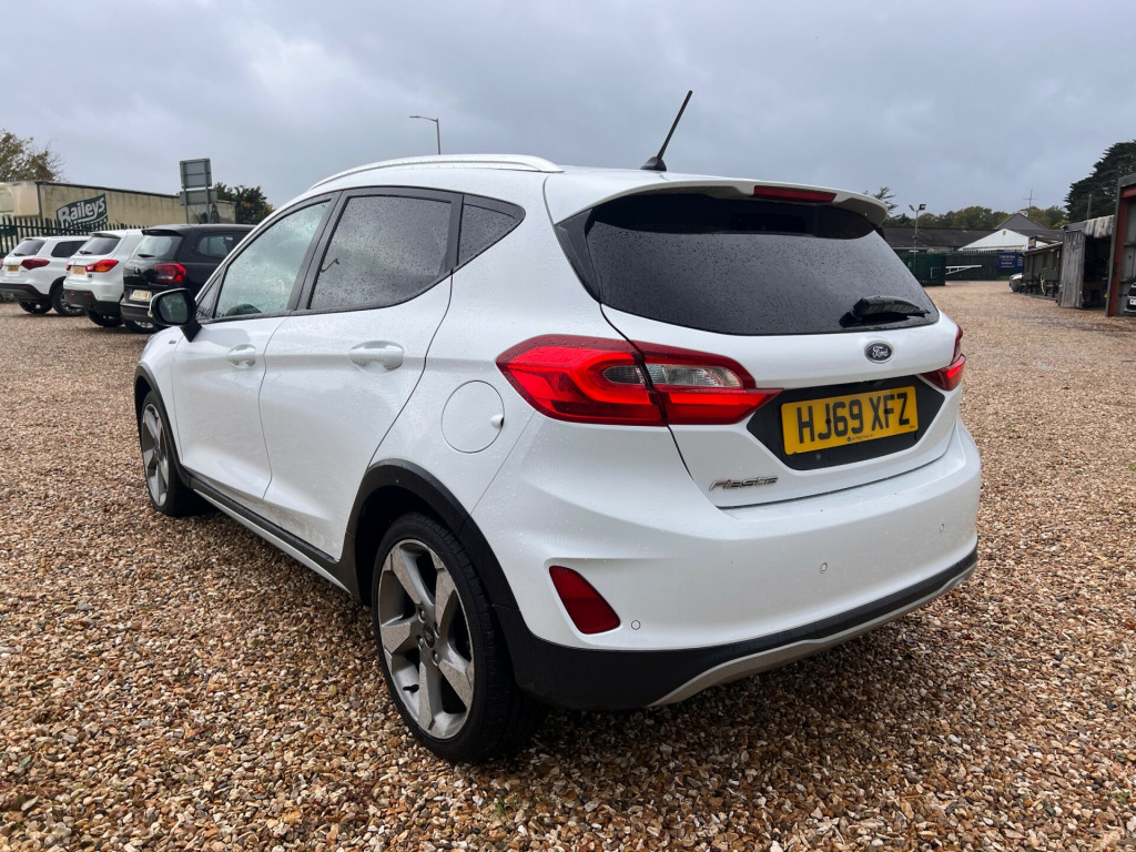 This 2020 Ford Fiesta 1.0T EcoBoost GPF Active X Hatchback with a mileage of 63368 miles is a reliable and efficient hatchback, perfect for urban driving. The petrol engine is ULEZ compliant, and with MOT expiring on 07/02/2026, you can have peace of mind knowing it's roadworthy for years to come. With 5 seats and 5 doors, this Fiesta provides ample space for passengers and cargo. The sleek design features 17in Alloy Wheels, Black Belt Line Finisher, and Body Colour Door Handles and Mirrors. The electrically-operated and heated mirrors are power-foldable with integrated side indicators, while the electric windows add convenience to your drive. This practical and stylish hatchback offers both comfort and practicality for all your driving needs. in alloy wheels - 5 spoke rough metal - machined finish, black belt line finisher, door handles - body colour, door mirrors - electrically-operated and heated - power-foldable with integrated side indicators - body colour housings and puddle lights, electric windows - front, electric windows - rear, front bumper - unique active, front upper grille - unique active design, quickclear heated windscreen, rear bumper - unique active with silver-finish diffuser, rear privacy glass, rear spoiler - body colour with centre high mounted stop light, rugged bodystyling kit with active front wing badges, side panel - unique active bodyside mouldings, silver roof rails, tyre repair kit, 3-spoke leather trimmed steering wheel with audio controls, active logo front door threshold plates, air conditioning - electronic automatic temperature control - eatc, automatic rain sensing wipers and auto-dimming rear view mirror, centre console with armrest and illuminated cupholders, courtesy light - ambient led courtesy lighting, courtesy light - front map light and rear - overhead led, door lever - chrome finish, drivers seat lumbar support and passenger seat lumbar support, floor mats - front and rear, front seat - drivers manual height and fore-aft adjustment, front seats - sports style, gearshift knob - leather-trimmed, glovebox - illuminated, headliner - woven-dark, heated driver and passenger seats, leather-trimmed handbrake, mykey, overhead console - sunglasses holder, rear fog lamps, rear seat - 60-40 split back and cushion, steering column - rake and reach adjustment, warning triangle storage, 4.2in tft instrument cluster screen, ford navigation system with ford sync 3 - apple carplay and android auto and fordpass connect - embedded modem, airbags - driver and front passenger, airbags - front side impact, airbags - front and rear side curtain, anti-lock braking system - abs with electronic brake force distribution - ebd, emergency brake warning - automatic hazard warning lights, enhanced electronic stability control - esc with traction control - emergency brake assist - eba - hill start assist - hsa and trailer sway control, ford easy-fuel capless refuelling system, ford keyfree system, ips - intelligent protection system, ncap pack, remote central-double locking, seats - isofix mounting provision for child seats, tailgate wash-wipe, thatcham category 1 alarm, cruise control, driver alert, epas - electric power assisted steering, rear view camera, rough road suspension including increased ride height, selectable drive modes - eco - normal - slippery, tsr - traffic sign recognition, trip computer, tyre pressure monitoring system - tpms, front fog lights with cornering function, halogen projector headlights with led daytime running lights, headlights - automatic on-off and highbeam, rear lights - led night signature