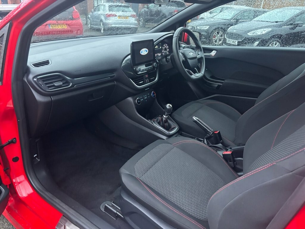 FORD FIESTA 1.0T ECOBOOST GPF ST-LINE , WET BELT JUST DONE , CARBON GREY ALLOY WHEELS, BODYKIT, REAR SPOILER, FULL SCREEN MEDIA PACK, FRONT FOGLIGHTS, BLUETOOTH, MULTI FUNCTION STEERING WHEEL, AIR CONDITIONING, EURO 6, ULEZ COMPLIANT, 6 SPEED MANUAL GEARBOX, HPI CHECKED AND MILEAGE CHECKED, SERVICE HISTORY, LOW MILEAGE ,STUNNING CONDITION, PART EXCHANGE AND TEST DRIVES WELCOMED, LOW RATE FINANCE AVAILABLE WITH NO DEPOSIT REQUIRED, CALL US FREE ON 0800 9179533 OR VISIT OUR ONLINE SHOWROOM WWW.CHESHIRECARFINANCE.CO.UK, FREE NATIONWIDE DELIVERY AVAILABLE 17in Alloy Wheels - ST-Line 5-spoke - Ro, Air Conditioning - Manual, Airbags - Driver and Front Passenger, Airbags - Front Side Impact, Airbags - Front and Rear Side Curtain, Anti-Lock Braking System - ABS with Elec, Black Belt Line Finisher, Centre Console with Two Cupholders and 1, Courtesy Light - Front Map Light and Rea, Door Handles - Body Colour, Door Lever - Chrome Finish, Door Mirrors - Heated - Electric - Integ, EPAS - Electric Power Assisted Steering, Electric Windows - Front, Emergency Brake Warning - Automatic Haza, Enhanced Electronic Stability Control - , Ford Easy-Fuel Capless Refuelling System, Ford SYNC with Touchscreen - DAB Radio -, Front Bumper - Unique ST-Line, Front Doo
