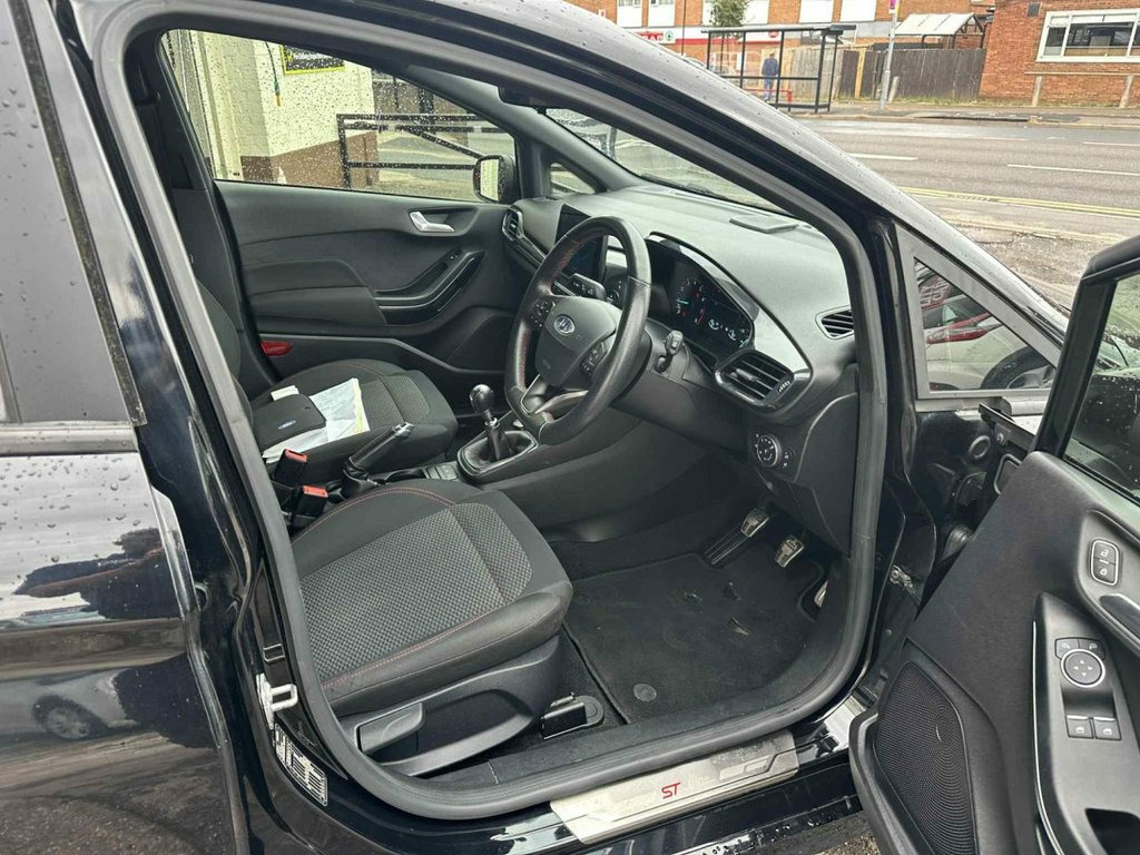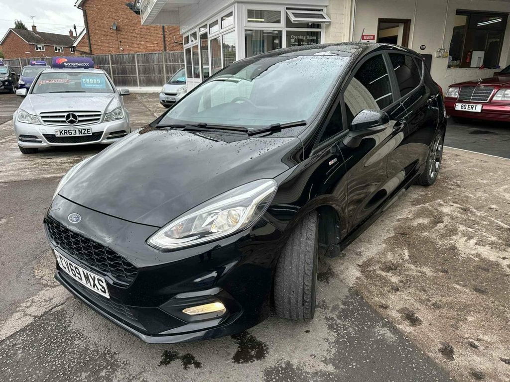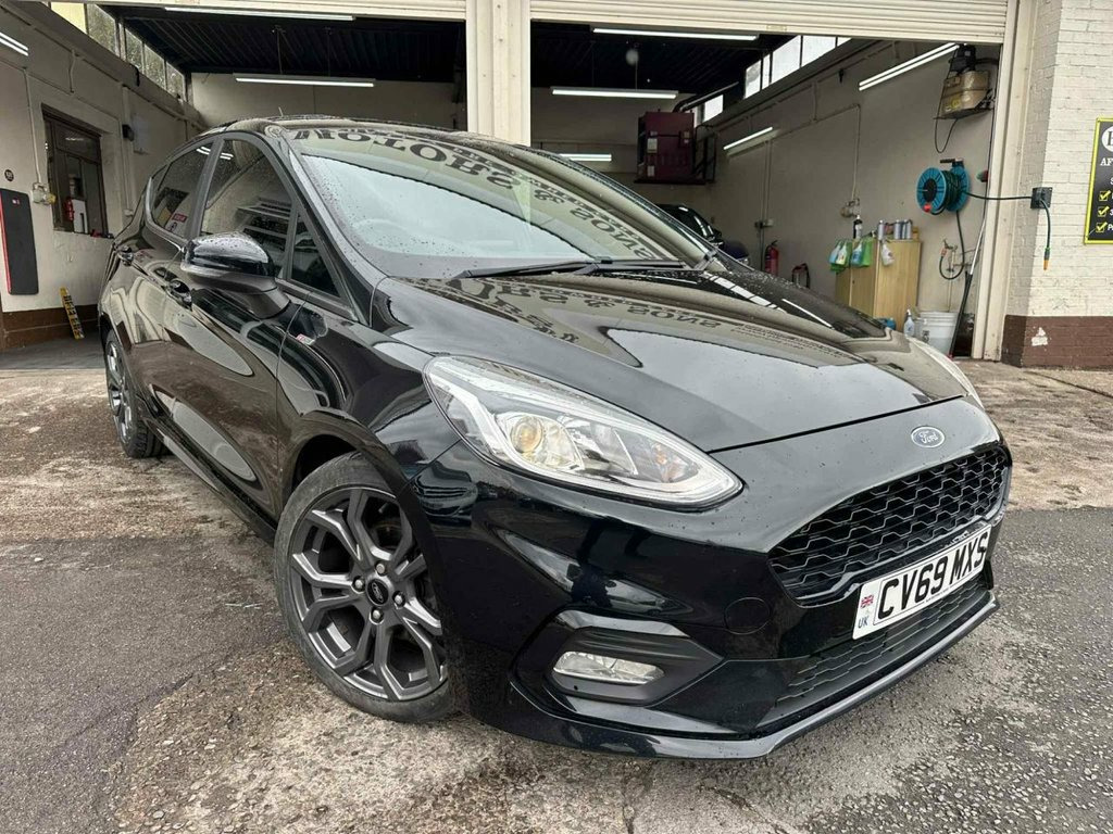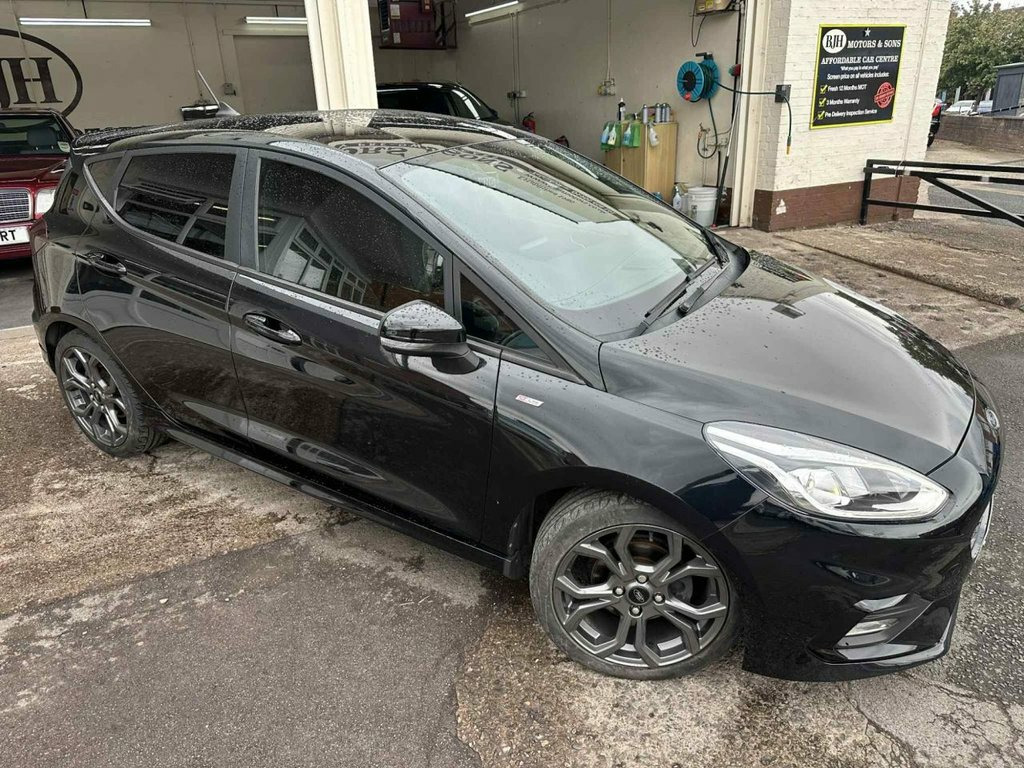 This 2019 69-Reg Ford Fiesta 1.0 T EcoBoost ST-Line is in excellent condition with only 1 owner from new, 48,300 miles and comes with 4 services in total!! Presented here in Agate black with black cloth interior. Specification includes Air conditioning, Cruise control, Apple car play/Android auto, Automatic lights and wipers, Lane assist, DAB radio, Keyless start, Heated front screen, Cornering fog lights and much much more!! Lovely example!! ULEZ free!! 17in Alloy Wheels - ST-Line 5-spoke - Ro, Air Conditioning - Manual, Airbags - Driver and Front Passenger, Airbags - Front Side Impact, Airbags - Front and Rear Side Curtain, Anti-Lock Braking System - ABS with Elec, Black Belt Line Finisher, Centre Console with Two Cupholders and 1, Courtesy Light - Front Map Light and Rea, Door Handles - Body Colour, Door Lever - Chrome Finish, Door Mirrors - Heated - Electric - Integ, EPAS - Electric Power Assisted Steering, Electric Windows - Front, Emergency Brake Warning - Automatic Haza, Enhanced Electronic Stability Control - , Ford Easy-Fuel Capless Refuelling System, Ford SYNC with Touchscreen - DAB Radio -, Front Bumper - Unique ST-Line, Front Doo
