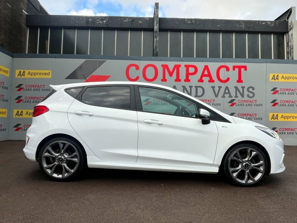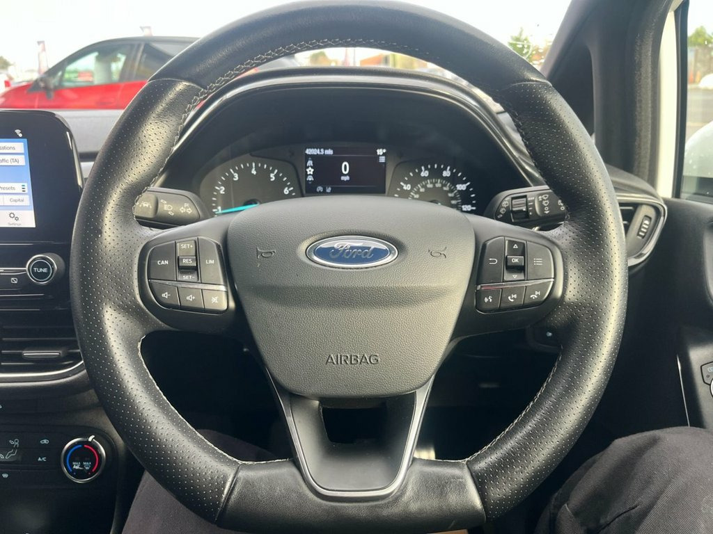 Powered by a trusted 1.0 litre petrol engine and paired with its smooth 6 speed manual gear box it boasts 99 bhp and returns an incredible 50.4 mpg on a combined cycle This Ford has done just under 43,000 miles, considering the year of manufacture this is a low millage car This Fiesta comes with 5 seats all having ample leg room, in the back there is a very generous load space for all your needs As you would expect it benefits from great spec such as telephone connection, screen display and just so much more 17in Alloy Wheels - 5x2-Spoke - Rock Met, Air Conditioning - Manual, Airbags - Driver and Front Passenger, Airbags - Front Side Impact, Airbags - Front and Rear Side Curtain, Anti-Lock Braking System - ABS with Elec, Black Belt Line Finisher, Centre Console with Two Cupholders and 1, Courtesy Light - Front Map Light and Rea, Door Handles - Body Colour, Door Lever - Chrome Finish, Door Mirrors - Heated - Electric - Integ, EPAS - Electric Power Assisted Steering, Emergency Brake Warning - Automatic Haza, Enhanced Electronic Stability Control - , Ford Easy-Fuel Capless Refuelling System, Ford SYNC with Touchscreen - DAB Radio -, Front Bumper - Unique ST-Line, Front Door Threshold Plates - ST-Li