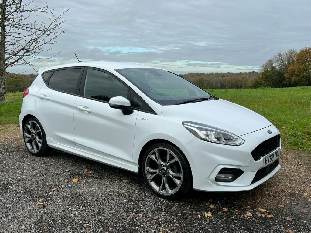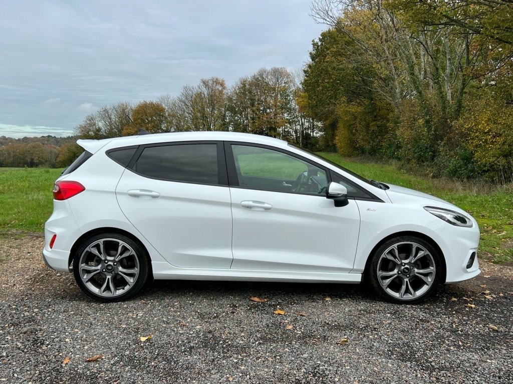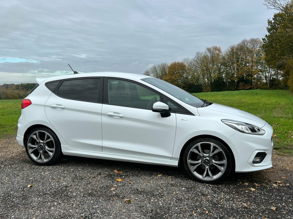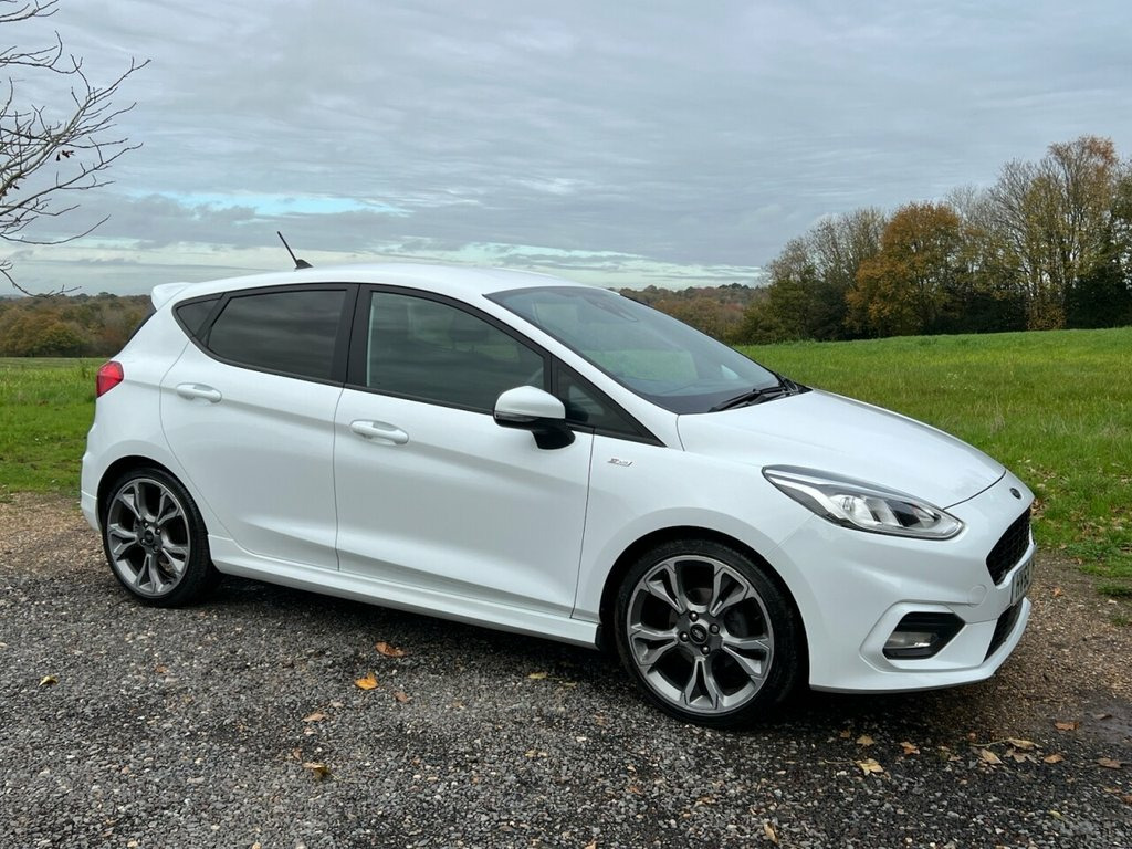 Buy with confidence - Please see our reviews, we also offer finance so you can spread the cost of this car - please get in touch to apply or for more details. Here is a well cared for example of a Ford Fiesta ST-Line finished in Frozen White with Grey cloth seats. The car is fitted with the superb 1.0 litre Turbo EcoBoost petrol engine which has plenty of power and great economy. This car is supplied with a comprehensive service history and in preparation for sale has had a service, a full vehicle health check and an MOT till October 2026. Generally in good condition for a car of this age and mileage - Feel free to ask for a full walk round video! The specification includes 18" Alloy Wheels, Sat Nav, Climate Control, Cruise Control, Phone Connectivity, Auto Lights and lots more. As expected, the car runs and drives very well and is very comfortable to drive. Any trial, test or inspection welcome and any part exchange also very welcome. Please note we encourage booking an appointment as the cars are not always stored on site. Please get in touch for more details or to arrange a viewing. 3 months warranty included 17in Alloy Wheels - ST-Line 5-spoke - Ro, Air Conditioning - Manual, Airbags - Driver and Front Passenger, Airbags - Front Side Impact, Airbags - Front and Rear Side Curtain, Anti-Lock Braking System - ABS with Elec, Black Belt Line Finisher, Centre Console with Two Cupholders and 1, Courtesy Light - Front Map Light and Rea, Door Handles - Body Colour, Door Lever - Chrome Finish, Door Mirrors - Heated - Electric - Integ, EPAS - Electric Power Assisted Steering, Electric Windows - Front, Emergency Brake Warning - Automatic Haza, Enhanced Electronic Stability Control - , Ford Easy-Fuel Capless Refuelling System, Ford SYNC with Touchscreen - DAB Radio -, Front Bumper - Unique ST-Line, Front Doo