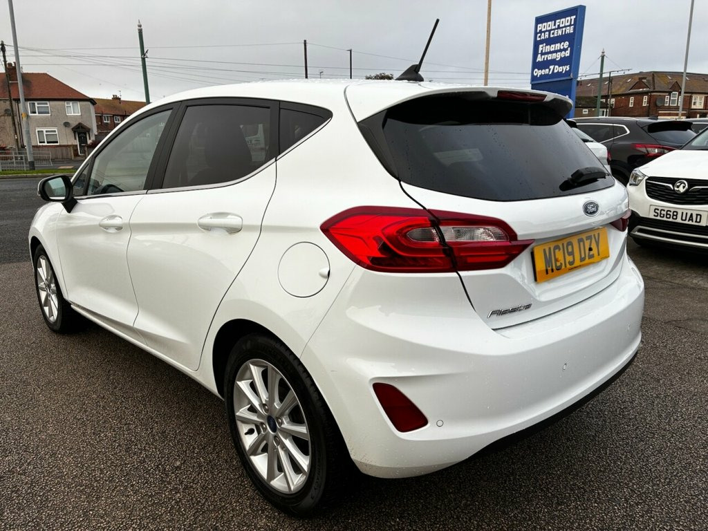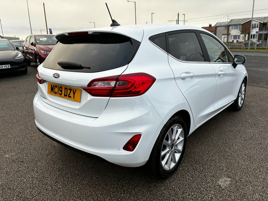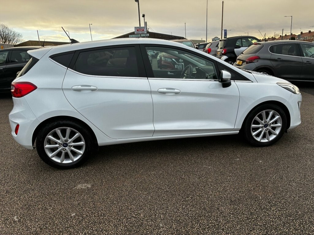 AUTOMATIC* SERVICE HISTORY* SAT NAV* CRUISE CONTROL WITH SPEED LIMITER* HEATED WINDSCREEN* REAR PARKING SENSORS WITH PARK PILOT* AIR CONDITIONING* CLIMATE CONTROL* DAB RADIO* BLUETOOTH PHONE AND AUDIO* USB POINT* AUTO START/ STOP* TOUCH SCREEN MEDIA SYSTEM* ELECTRIC FRONT WINDOWS* 2 KEYS* Traction control* Rear wiper* Isofix* Split and folding rear seats* Driver height adjustable seat* Remote control central locking* This 2019 Ford Fiesta T Titanium presents an exceptional opportunity with its remarkably low mileage of just 18,000 miles. This Euro 6 compliant 1.0L petrol model, finished in the Titanium trim, offers a sophisticated driving experience. It comes equipped with a Ford Navigation System featuring Ford SYNC 3, which seamlessly integrates with both Apple CarPlay and Android Auto. Further enhancing connectivity and convenience is FordPass Connect, an embedded modem that also supports Bluetooth. For your comfort, the vehicle includes Electronic Automatic Temperature Control for its air conditioning, ensuring a pleasant cabin environment. The NCAP Pack, along with automatic headlights that also manage high beam functionality, adds to the vehicle's safety and ease of use. The highlights of this Fiesta Titanium demonstrate its superior offering compared to other vehicles in its class. The inclusion of the Ford Navigation System with SYNC 3 and full smartphone integration via Apple CarPlay and Android Auto provides advanced infotainment and navigation capabilities 16in Alloy Wheels - 10 Spoke, 3-Spoke Leather Trimmed Steering Wheel w, 4.2in TFT Instrument Cluster Screen, Air Conditioning - Electronic Automatic , Airbags - Driver and Front Passenger, Airbags - Front and Rear Side Curtain, Airbags - Front Side Impact, Anti-Lock Braking System - ABS with Elec, Automatic Rain Sensing Wipers and Auto-D, Centre Console with Armrest and Illumina, Chrome Belt Line Finisher, Courtesy Light - Ambient LED Courtesy Li, Courtesy Light - Front Map Light and Rea, Cruise Control, Door Handles - Body Colour, Door Lever - Chrome Finish, Door Mirrors - Electrically-Operated and, Driver Alert, Electric Windows - Front, Emergency Brake Warning - Automatic Haza, Enhanced E