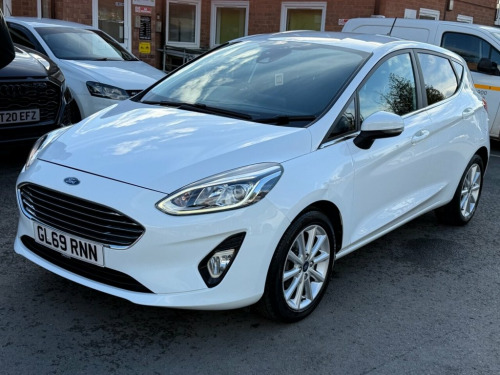 Here we have a Ford Fiesta 1.0 Petrol Titanium finished in Frozen White having done 75k miles from new with Full Service History including the last service done less than 50 miles ago with brand new brake discs + pads fitted. Also comes with a long MOT until October 2026 with no advisories. Will come with 3 month warranty and 12 month AA breakdown cover included and only 1 Previous Owner. Comes complete with a set of 2 remote keys. The interior and exterior of the car have been looked after very well, it starts and drives perfectly with no issues at all. Being the top of the range spec this vehicle benefits from Navigation, Apple CarPlay, Android Auto, Ford Connect, In-car Wi-Fi, Automatic Lights, Rear Privacy Glass, Bluetooth, Automatic Climate Control and Aux/USB capability. The car will be sold with extendable Warranty. We also offer Part Exchange / Delivery / Finance, HPI report available on request. Please call us on 0121 798 2352 for further enquiries. =============================================================================== Why not read our AutoTrader reviews to see what our customers think about their experience here and why they choose to buy from us? =============================================================================== Please contact our sales department for the latest finance offers on this vehicle. We have a dedicated team researching our used car prices daily to make sure we offer the best value cars in the market. ================= Magnetic, Full LED Headlamps, Comfort Pack, Door Edge Protectors, Spare Wheel - 14in Steel, 17in Alloy Wheel Style Pack, 16in Alloy Wheels - 10 Spoke, 3-Spoke Leather Trimmed Steering Wheel w, 4.2in TFT Instrument Cluster Screen, Air Conditioning - Electronic Automatic , Airbags - Driver and Front Passenger, Airbags - Front Side Impact, Airbags - Front and Rear Side Curtain, Anti-Lock Braking System - ABS with Elec, Automatic Rain Sensing Wipers and Auto-D, Centre Console with Armrest and Illumina, Chrome Belt Line Finisher, Courtesy Light - Ambient LED Courtesy Li, Courtesy Light - Front Map Light and Rea, Cruise Control, Door Handles - Body Colour, Door Lever - Chrome Finish, Door Mirrors
