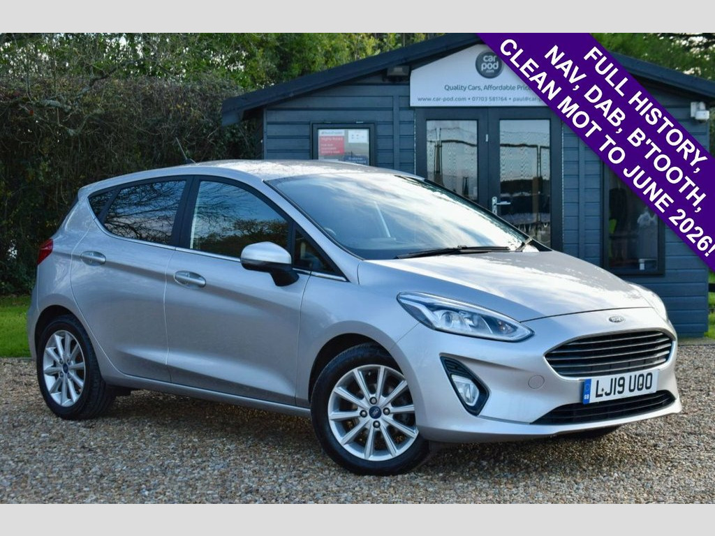 Welcome to Car-Pod and our advert for this Metallic Moondust Silver Ford Fiesta 1.0T EcoBoost Titanium which joins us extremely well presented throughout with Full Service History (services at 18k, 35k, 48k, 59k and 70k miles) and comes with an MOT showing No Advisories until 27th June 2026. Being the Titanium model, this super popular hatchback comes loaded with features such as Sat Nav, DAB Radio, Bluetooth Handsfree, Lane Assist, 16in Alloy Wheels, Cruise Control, Heated Windscreen, Climate Control, Apple CarPlay, Auto Lights and 2 Remote Keys. First to see will buy, so call now to book your personal viewing, alternatively scan the QR Code to request a walkaround video of this car! 16in Alloy Wheels - 10 Spoke, 3-Spoke Leather Trimmed Steering Wheel w, 4.2in TFT Instrument Cluster Screen, Air Conditioning - Electronic Automatic , Airbags - Driver and Front Passenger, Airbags - Front and Rear Side Curtain, Airbags - Front Side Impact, Anti-Lock Braking System - ABS with Elec, Automatic Rain Sensing Wipers and Auto-D, Centre Console with Armrest and Illumina, Chrome Belt Line Finisher, Courtesy Light - Ambient LED Courtesy Li, Courtesy Light - Front Map Light and Rea, Cruise Control, Door Handles - Body Colour, Door Lever - Chrome Finish, Door Mirrors - Electrically-Operated and, Driver Alert, Electric Windows - Front, Emergency Brake Warning - Automatic Haza, Enhanced E