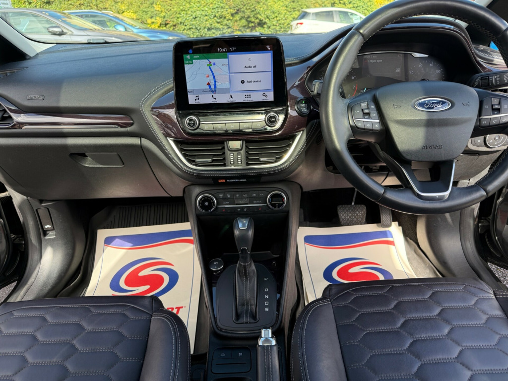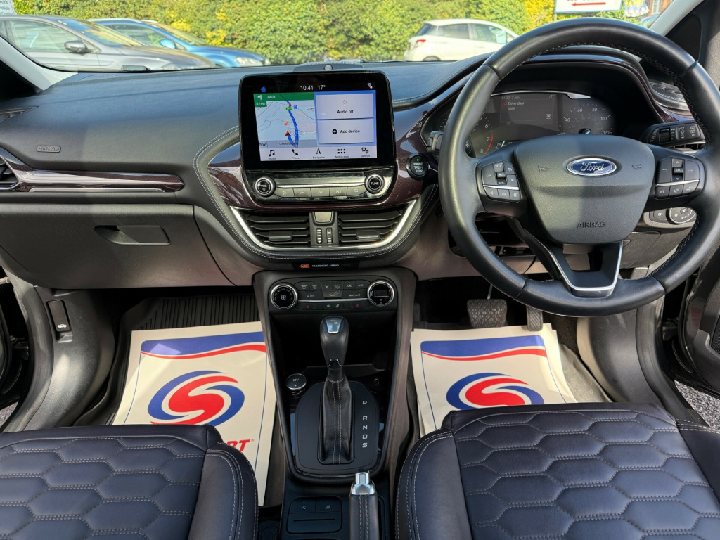 Lovely automatic petrol top of the range Ford fiesta low mileage comes fantastic car in alloy wheels - 10-spoke vignale - luster-nickel finish, chrome belt line finisher, door handles - body colour, door mirrors - electrically-operated and heated - power-foldable with integrated side indicators - body colour housings and puddle lights, electric windows - front, electric windows - rear, front bumper - unique vignale, opening panorama roof, quickclear heated windscreen, rear bumper - unique vignale with diffuser and satin aluminium applique, rear privacy glass, rear spoiler - body colour with centre high mounted stop light, side panel applique - unique vignale arrow - satin aluminium, tyre repair kit, unique vignale front grille and bodystyling, vignale badge - wing and rear, vignale front door threshold plates, 3-spoke leather trimmed steering wheel with audio controls, air conditioning - electronic automatic temperature control - eatc, automatic rain sensing wipers and auto-dimming rear view mirror, centre console with armrest and illuminated cupholders, comfort pack, courtesy light - ambient led courtesy lighting, courtesy light - front map light and rear - overhead led, door lever - chrome finish, drivers seat lumbar support and passenger seat lumbar support, front seat - drivers manual height and fore-aft adjustment, gearshift knob - vignale leather trimmed, glovebox - illuminated, headliner - woven, heated front seats and heated steering wheel, leather-trimmed handbrake, mykey, overhead console - sunglasses holder, rear fog lamps, rear seat - 60-40 split back and cushion, seats - front comfort style, steering column - rake and reach adjustment, vignale floor mats - front and rear, warning triangle storage, 4.2in tft instrument cluster screen, b and o play in-car audio premium sound system with ford sync 3 navigation system and fordpass connect - embedded modem, airbags - driver and front passenger, airbags - front side impact, airbags - front and rear side curtain, anti-lock braking system - abs with electronic brake force distribution - ebd, emergency brake warning - automatic hazard warning lights, enhanced electronic stability control - esc with traction control - emergency brake assist - eba - hill start assist - hsa and trailer sway control, ford easy-fuel capless refuelling system, ford keyfree system, ips - intelligent protection system, ncap pack, remote central-double locking, seats - isofix mounting provision for child seats, tailgate wash-wipe, thatcham category 1 alarm, cruise control, driver alert, epas - electric power assisted steering, front suspension - independent with macpherson struts and anti-roll bar, parking distance sensors - rear, rear view camera, tsr - traffic sign recognition, trip computer, tyre pressure monitoring system - tpms, halogen projector headlights with led daytime running lights, headlights - automatic on-off and highbeam, rear lights - led night signature, vignale front fog lamps with cornering lights