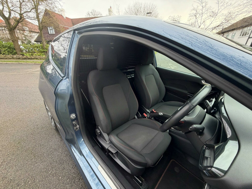 REG NUMBER>(EA21MLL)This 2021 Ford Fiesta Van presents a compelling proposition with its remarkably low mileage of just 42079 miles for its age, coupled with a clear vehicle history check. As a 1.0T EcoBoost MHEV Sport Euro 6 (s/s) 3dr model, this petrol van offers a blend of efficiency and performance. It comes equipped with a Ford SYNC Radio featuring DAB and Bluetooth connectivity, manual air conditioning for your comfort, and LED projector headlights with daytime running lights for enhanced visibility. The convenience of automatic headlights further adds to its practical appeal. The 1.0 litre EcoBoost engine delivers an impressive 123 bhp, a figure that stands out when compared to other vehicles in its class. Furthermore, its fuel economy is a significant advantage, achieving a remarkable 64 mpg, indicating a more economical driving experience than many alternatives. This combination of strong performance and excellent efficiency makes this Ford Fiesta Van a sensible and capable choice. Last service done on the 24/2/26 and the mileage was 42123. This vehicle complies with ULEZ regulations in London zones. We offer excellent part-exchange prices, so please Contact us today to book a test drive and find out more about our finance options and warranty options. We offer excellent part-exchange prices, so please contact us before you sell your old car. We also provide nationwide delivery for your convenience. We can arrange video calls with our customers before they visit us in person. We have no hidden fees or charges, and you can check our reviews on our website. Please book an appointment in advance to view our cars, by phone or email, as we operate on an appointment only basis. We look forward to hearing from you.. 17in Alloy Wheels - 5x2-Spoke - Rock Metallic, Active Grille Shutter, Adjustable Speed Limiter, Aluminium Gear Shift Knob with Leather Gaiter, Anti-Lock Braking System - ABS with Electronic Brake Force Distribution - EBD, Automatic Headlights, Body Colour Exterior Mirrors, Bulkhead - Full Height - Upper Half Mesh, Centre Console - Open Stowage Bins and 12V Front Power Point and Two Cupholders, Door Mirrors - Electrically Operated and Heated - Body Coloured, Driver and Passenger Airbags with Passenger Deactivation Switch, EPAS - Electric Power Assisted Steering, EcoCoach, Electronic Stability Control - ESC with Traction Control - Emergency Brake Assist - EBA - Hill Start Assist - HSA, Emergency Brake Lights, Flat Load Floor Board, Fog Lights - Rear, Ford Easy Fuel - Capless Refuelling System, Ford SYNC Radio with DAB, Front Fog Lamps with Cornering Lights, Gearshift Knob Sport - Leather-trimmed with Aluminium Insert and Metal Grey Gaiter Stitching, Glovebox - Illuminated, Handbrake Leather-trimmed with Chrome Gear Knob, Header-mounted Front with Two Map Reading Lights - Theatre Dimming and Sunglasses Holder, Headliner - Woven-Dark, Keyless Start with Ford Power Start Button, LED Projector Headlights with Daytime Running Lights, LED Taillamps, Lane Keeping System, Load Compartment Tie Down Loops, Load Floor Liner, Manual Air Conditioning, Power Door Deadlocks - Double Locking, Power Front Windows with One Touch Up Down, Premium Floor Mats, Quickclear Heated Front Windscreen with Heated Washer Jets, Rear Spoiler - Body Colour, Remote Central Locking with Two Flip Keys, Rocker Panel Mouldings - Body Colour, Seats - Drivers 4-Way Adjustment, Single Chrome Exhaust, Spare Wheel - 14in Steel, Sports Seats, Sports Style Body Kit, Sports Suspension, Stainless Steel Sports Foot Pedals, Steering Column - Rake and Reach Adjustment, Steering Wheel - Leather-Trimmed Sports Style Flat Bottomed, Thatcham Category 1 Alarm with Power Door Deadlocks, Trip Computer, Tyre Pressure Monitoring System, Unique Upper Grille - Bumpers and Side Skirts, Court Cloth - Ebony. Part service history