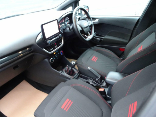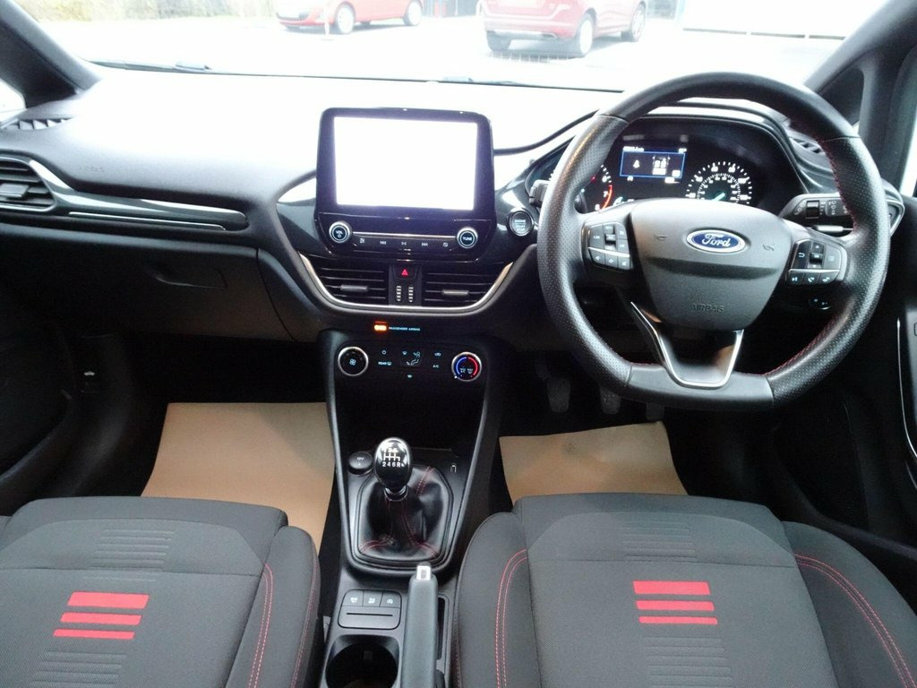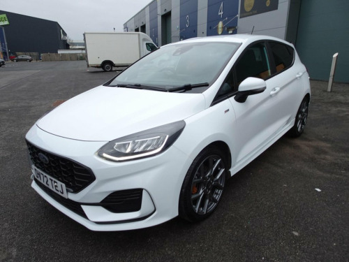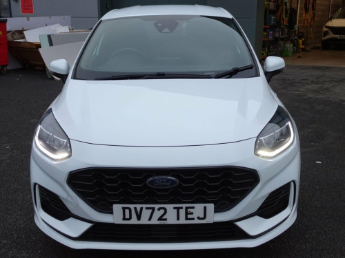 This 2022 Ford Fiesta ST Line Edition offers an exceptional blend of style and practicality, making it a standout choice. Powered by an efficient 1.0L petrol engine, this Euro 6 compliant model boasts a highlight fuel economy of 58 mpg, ensuring your journeys are both economical and enjoyable. This is one of the newer hybrid models that have a timing chain, not the infamous "wet belt". Complimented by a documented service history and MOT to September 2026. The ST Line Edition trim level comes equipped with desirable features such as SAT NAV, DAB and Bluetooth, automatic headlights, rear parking distance sensors for easier manoeuvring, and air conditioning to keep you comfortable. Additionally, the NCAP Pack, which includes automatic headlights, contributes to the vehicle's safety credentials. Experience impressive performance with a 0-62mph acceleration time of just 9.4 seconds, demonstrating its responsive nature. This Ford Fiesta also stands out with its low CO2 emissions, indicating a more environmentally conscious driving experience compared to many other vehicles in its class. The LED projector headlights with distinctive daytime running lights not only enhance visibility but also contribute to the car's modern and dynamic appearance. Another great value offering from the Copycars team, please get in touch to arrange a viewing and test drive.. 1 Key, 17in Alloy Wheels - ST-Line 5-spoke - Ro, Air Conditioning - Manual, Airbags - Driver and Front Passenger, Airbags - Front and Rear Side Curtain, Airbags - Front Side Impact, Anti-Lock Braking System - ABS with Elec, Automatic Rain Sensing Wipers and Auto-D, Black Belt Line Finisher, Black Interior Headlining, Body Colour Bumpers, Cargo Area Cover, Centre Console with Armrest and Illumina, Chrome Finish Exhaust Pipe, Courtesy Light - Front Map Light and Rea, Cruise Control, Door Handles - Body Colour, Door Lever - Chrome Finish, Door Mirrors - Electrically-Operated and, Driver Seat with Manual Height Adjust, Electric Windows - Front, Electric Windows - Rear, Electronic Stability Progr