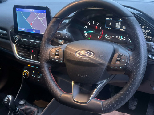 This 2022 Ford Fiesta ST Line Edition offers exceptional value with its remarkably low mileage of just 20,651 miles. This Euro 6 compliant 1.0L petrol model boasts a clear vehicle history check, providing peace of mind for its next owner. Inside, you'll find the convenient Ford Navigation System with Ford SYNC 3, offering seamless integration with Apple CarPlay and Android Auto, further enhanced by FordPass Connect with its embedded modem. Safety and visibility are prioritised with the NCAP Pack, including automatic headlights, and LED projector headlights with distinctive daytime running lights. Maneuvering is made easier thanks to the rear parking distance sensors.Experience impressive efficiency with a fuel economy of 58 mpg, alongside low CO2 emissions, making this Fiesta an economical choice. Its performance is equally engaging, achieving 0-62mph in just 9.4 seconds. These highlights demonstrate how this particular Ford Fiesta ST Line Edition stands out from other vehicles in its class, offering a compelling blend of technology, safety, and driving enjoyment., iver assistance pack, full led headlamps, 17in alloy wheels - st-line 5-spoke - rock metallic, air conditioning - manual, airbags - driver and front passenger, airbags - front side impact, airbags - front and rear side curtain, anti-lock braking system - abs with electronic brake force distribution - ebd, automatic rain sensing wipers and auto-dimming rear view mirror, black belt line finisher, black interior headlining, body colour bumpers, cargo area cover, centre console with armrest and illuminated cupholders, chrome finish exhaust pipe, courtesy light - front map light and rear - overhead led, cruise control, door handles - body colour, door lever - chrome finish, door mirrors - electrically-operated and heated - power-foldable with integrated side indicators - body colour housings and puddle lights, driver seat with manual height adjust, epas - electric power assisted steering, electric windows - front, electric windows - rear, electronic stability programme - esp with hill start assist, emergency brake warning - automatic hazard warning lights, enhanced electronic stability control - esc with traction control - emergency brake assist - eba - hill start assist - hsa and trailer sway control, floor mats - front velour, ford easy-fuel capless refuelling system, ford navigation system with ford sync 3 - apple carplay and android auto and fordpass connect - embedded modem, front bumper - unique st-line, front seats - sports style, headlights - automatic, ips - intelligent protection system, keyless start with ford power start button, led projector headlights with daytime running lights, large rear spoiler - body colour with centre high mounted stop light, leather gaiter, leather handbrake and gearknob, locking wheel nuts, mykey, ncap pack, overhead console - sunglasses holder, parking distance sensors - rear, quickclear heated windscreen, rear bumper - unique st-line, rear fog lamps, rear lights - led night signature, rear privacy glass, rear seat - 60-40 split back and cushion, remote central-double locking, st-line flat-bottomed leather steering wheel, st-line front fog lamps with cornering lights, st-line front scuff plates, st-line side skirt body mouldings - body colour, seats - front passenger 2-way adjustment, seats - isofix mounting provision for child seats, selectable drive modes, side panel - bodyside mouldings - body colour, sports pedals, sports tuned suspension, steering column - rake and reach adjustment, tailgate wash-wipe, thatcham category 1 alarm, trip computer, tyre pressure monitoring system - tpms, tyre repair kit, unique st-line upper grille and full bodystyling kit with st-line wing badges