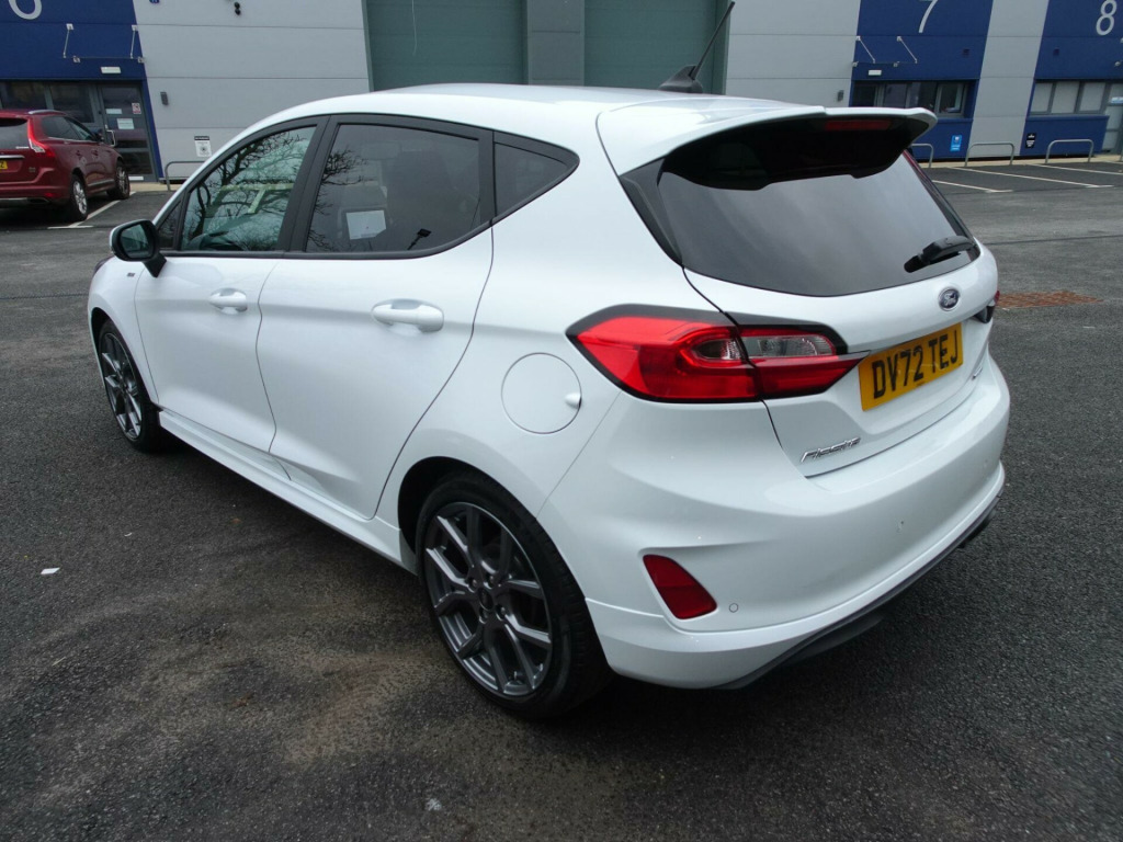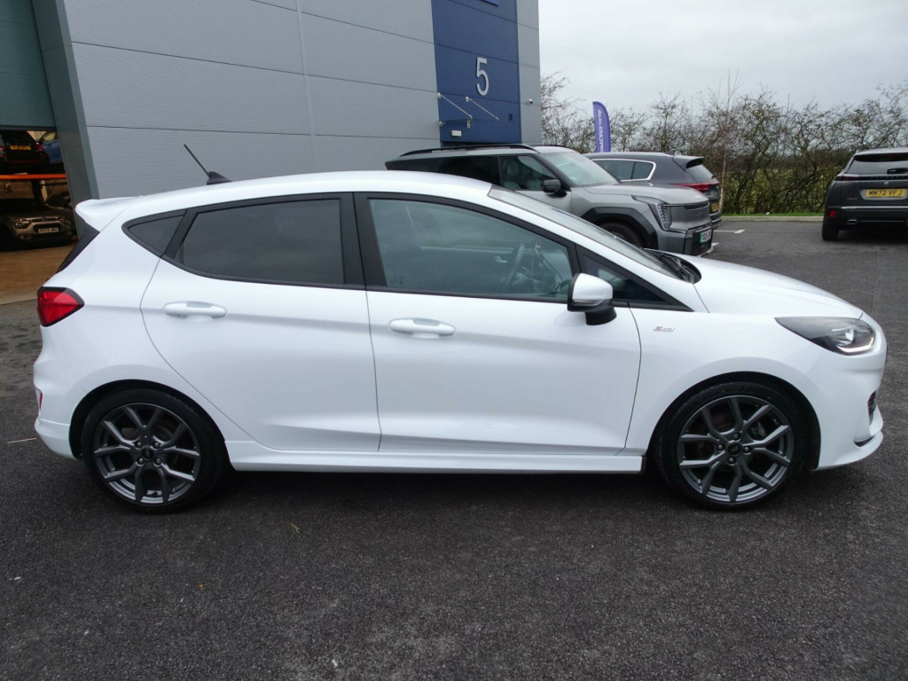 This 2022 Ford Fiesta ST Line Edition offers an exceptional blend of style and practicality, making it a standout choice. Powered by an efficient 1.0L petrol engine, this Euro 6 compliant model boasts a highlight fuel economy of 58 mpg, ensuring your journeys are both economical and enjoyable. This is one of the newer hybrid models that have a timing chain, not the infamous ''wet belt''. Complimented by a documented service history and MOT to September 2026.The ST Line Edition trim level comes equipped with desirable features such as SAT NAV, DAB and Bluetooth, automatic headlights, rear parking distance sensors for easier manoeuvring, and air conditioning to keep you comfortable. Additionally, the NCAP Pack, which includes automatic headlights, contributes to the vehicle's safety credentials.Experience impressive performance with a 0-62mph acceleration time of just 9.4 seconds, demonstrating its responsive nature. This Ford Fiesta also stands out with its low CO2 emissions, indicating a more environmentally conscious driving experience compared to many other vehicles in its class. The LED projector headlights with distinctive daytime running lights not only enhance visibility but also contribute to the car's modern and dynamic appearance.Another great value offering from the Copycars team, please get in touch to arrange a viewing and test drive... Ford Navigation System with Ford SYNC 3 - Apple CarPlay and Android Auto and FordPass Connect - Embedded Modem, 17in Alloy Wheels - ST-Line 5-spoke - Rock Metallic, Air Conditioning - Manual, Airbags - Driver and Front Passenger, Airbags - Front Side Impact, Airbags - Front and Rear Side Curtain, Anti-Lock Braking System - ABS with Electronic Brake Force Distribution - EBD, Automatic Rain Sensing Wipers and Auto-Dimming Rear View Mirror, Black Belt Line Finisher, Black Interior Headlining, Body Colour Bumpers, Cargo Area Cover, Centre Console with Armrest and Illuminated Cupholders, Chrome Finish Exhaust Pipe, Courtesy Light - Front Map Light and Rear - Overhead LED, Cruise Control, Door Handles - Body Colour, Door Lever - Chrome Finish, Door Mirrors - Electrically-Operated and Heated - Power-Foldable with Integrated Side Indicators - Body Colour Housings and Puddle Lights, Driver Seat with Manual Height Adjust, EPAS - Electric Power Assisted Steering, Electric Windows - Front, Electric Windows - Rear, Electronic Stability Programme - ESP with Hill Start Assist, Emergency Brake Warning - Automatic Hazard Warning Lights, Enhanced Electronic Stability Control - ESC with Traction Control - Emergency Brake Assist - EBA - Hill Start Assist - HSA and Trailer Sway Control, Floor Mats - Front Velour, Ford Easy-Fuel Capless Refuelling System, Front Bumper - Unique ST-Line, Front Seats - Sports Style, Headlights - Automatic, IPS - Intelligent Protection System, Keyless Start with Ford Power Start Button, LED Projector Headlights with Daytime Running Lights, Large Rear Spoiler - Body Colour with Centre High Mounted Stop Light, Leather Gaiter, Leather Handbrake and Gearknob, Locking Wheel Nuts, MyKey, NCAP Pack, Overhead Console - Sunglasses Holder, Parking Distance Sensors - Rear, Quickclear Heated Windscreen, Rear Bumper - Unique ST-Line, Rear Fog Lamps, Rear Lights - LED Night Signature, Rear Privacy Glass, Rear Seat - 60-40 Split Back and Cushion, Remote Central-Double Locking, ST-Line Flat-Bottomed Leather Steering Wheel, ST-Line Front Fog Lamps with Cornering Lights, ST-Line Front Scuff Plates, ST-Line Side Skirt Body Mouldings - Body Colour, Seats - Front Passenger 2-Way Adjustment, Seats - ISOFIX Mounting Provision for Child Seats, Selectable Drive Modes, Side Panel - Bodyside Mouldings - Body Colour, Sports Pedals, Sports Tuned Suspension, Steering Column - Rake and Reach Adjustment, Tailgate Wash-Wipe, Thatcham Category 1 Alarm, Trip Computer, Tyre Pressure Monitoring System - TPMS, Tyre Repair Kit, Unique ST-Line Upper Grille and Full Bodystyling Kit with ST-Line Wing Badges, 1 Key. Full service history