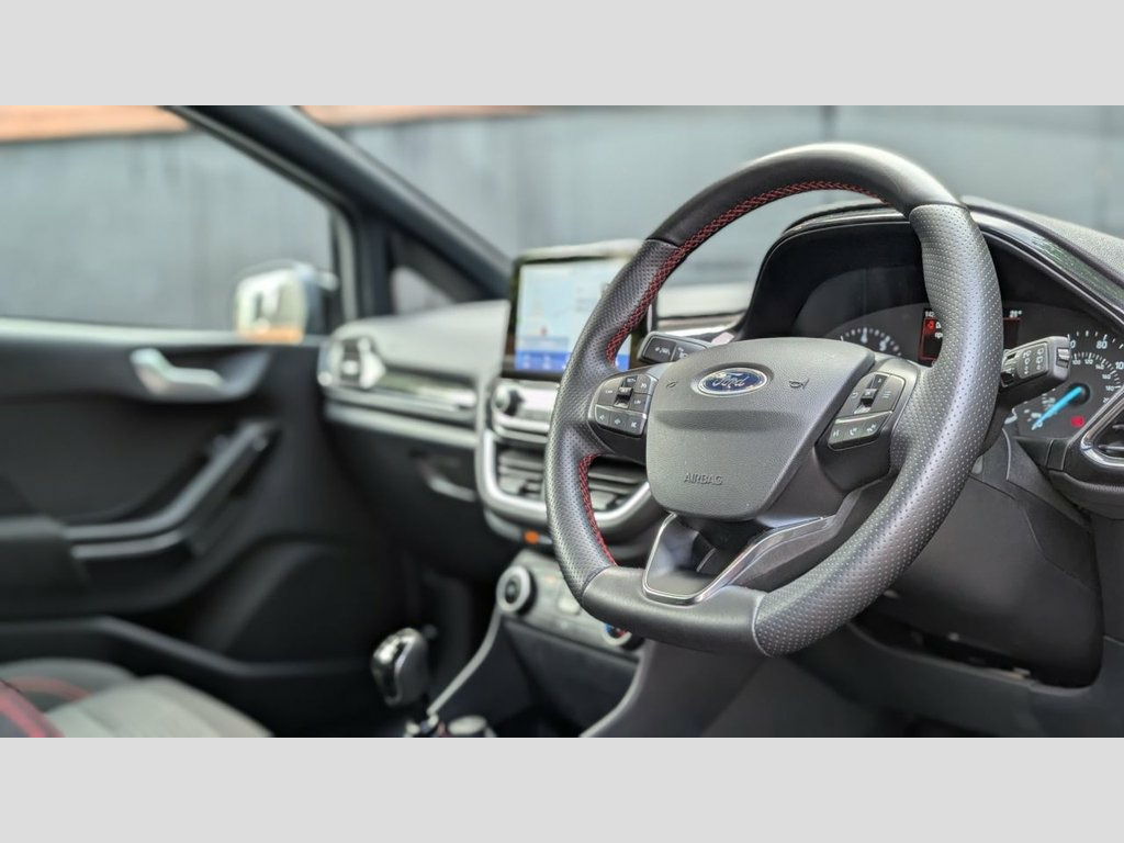 THIS LOVELY EXAMPLE OF A FORD FIESTA ST-LINE COMES WITH A GREAT SPECIFICATION INCLUDING - 17" alloy wheels in graphite grey - Front splitter - Side skirt extensions - Agate black metallic paint - Manual transmission - Rear parking sensors - High resolution media screen with DAB - Navigation HDD - Apple / Android CarPlay - Air conditioning with climate control - High performance headlights with daytime running lights - Graphite fabric seats with contrast red stitching - Keyless start - OPTIONAL EXTRAS INCLUDE - Optional brake caliper painting - Optional rear privacy - 12 month manufacturer equivalent warranty available - PLEASE CALL US ON 01780 435024 TO SPEAK WITH A MEMBER OF OUR SALES TEAM TO RESERVE YOUR NEXT VEHICLE - This vehicle is subject to a £249 fitment fee for the styling parts Court Cloth - Ebony, 17in Alloy Wheels - ST-Line 5-spoke - Ro, Air Conditioning - Manual, Airbags - Driver and Front Passenger, Airbags - Front Side Impact, Airbags - Front and Rear Side Curtain, Anti-Lock Braking System - ABS with Elec, Automatic Rain Sensing Wipers and Auto-D, Black Belt Line Finisher, Black Interior Headlining, Body Colour Bumpers, Cargo Area Cover, Centre Console with Armrest and Illumina, Chrome Finish Exhaust Pipe, Courtesy Light - Front Map Light and Rea, Cruise Control, Door Handles - Body Colour, Door Lever - Chrome Finish, Door Mirrors - Electrically-Operated and, Driver Seat with Manual Height Adjust, EPAS - Electric Power Assisted Steering, Electric Windows - Fro