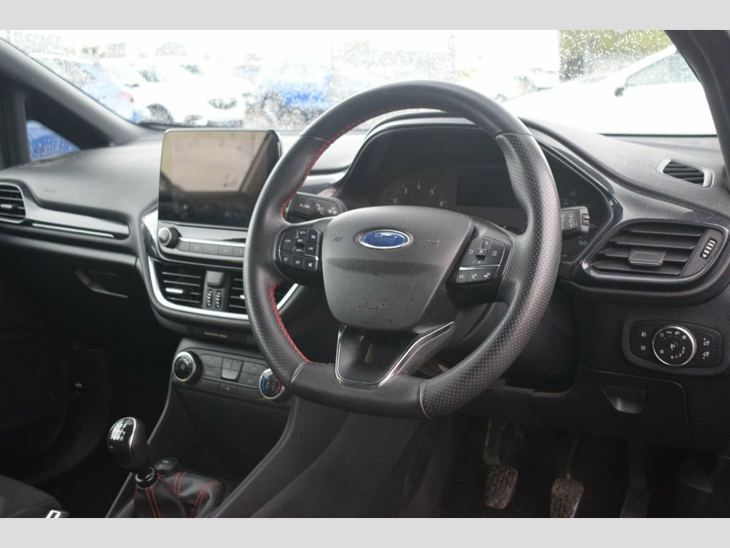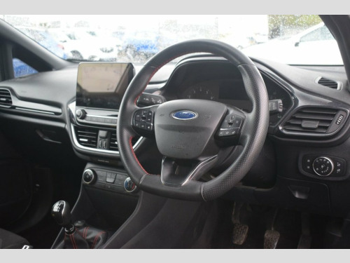 This 2022 Ford Fiesta ST-Line Edition boasts a single owner and a clear vehicle history check, offering peace of mind for its next custodian. Powered by a 1.0L Euro 6 petrol engine, this popular hatchback combines efficiency with a spirited drive, achieving 0-60mph in just 9.4 seconds. Its ST-Line trim enhances the sporty appeal, while the inclusion of a Ford Navigation System with Ford SYNC 3, compatible with both Apple CarPlay and Android Auto, ensures seamless connectivity. Further enhancing convenience are rear parking distance sensors, automatic LED projector headlights with daytime running lights, and manual air conditioning. The MOT remains valid until June 2026, and the vehicle comes with partial service history. Experience impressive fuel economy with this Fiesta, achieving a remarkable 58 mpg, which, alongside its low CO2 emissions, makes it an economical choice for daily driving. These highlights demonstrate how this particular Ford Fiesta ST-Line Edition stands out from other similar vehicles, offering a compelling blend of performance, technology, and cost-effectiveness. The FordPass Connect embedded modem further adds to its modern appeal, keeping you connected on the go. 17in Alloy Wheels - ST-Line 5-spoke - Ro, Air Conditioning - Manual, Airbags - Driver and Front Passenger, Airbags - Front Side Impact, Airbags - Front and Rear Side Curtain, Anti-Lock Braking System - ABS with Elec, Automatic Rain Sensing Wipers and Auto-D, Black Belt Line Finisher, Black Interior Headlining, Body Colour Bumpers, Cargo Area Cover, Centre Console with Armrest and Illumina, Chrome Finish Exhaust Pipe, Courtesy Light - Front Map Light and Rea, Cruise Control, Door Handles - Body Colour, Door Lever - Chrome Finish, Door Mirrors - Electrically-Operated and, Driver Seat with Manual Height Adjust, EPAS - Electric Power Assisted Steering, Electric Windows - Front, Electronic Stabil