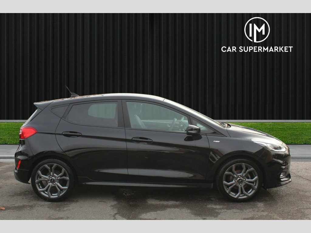 IM car supermarket is pleased to offer this very well Ford Fiesta 1.0T EcoBoost MHEV ST-Line Edition Euro 6 (s/s) 5dr in black colour with only 37,803 miles on the clock. The car comes with 3 months warranty. MOT valid until 29 January 2026. A high specification includes Navigation System, Radio DAB, Climate Control, Parking Sensors, Phone and Media BT Connection. 17in Alloy Wheels - ST-Line 5-spoke - Ro, Air Conditioning - Manual, Airbags - Driver and Front Passenger, Airbags - Front Side Impact, Airbags - Front and Rear Side Curtain, Anti-Lock Braking System - ABS with Elec, Automatic Rain Sensing Wipers and Auto-D, Black Belt Line Finisher, Black Interior Headlining, Body Colour Bumpers, Cargo Area Cover, Centre Console with Armrest and Illumina, Chrome Finish Exhaust Pipe, Courtesy Light - Front Map Light and Rea, Cruise Control, Door Handles - Body Colour, Door Lever - Chrome Finish, Door Mirrors - Electrically-Operated and, Driver Seat with Manual Height Adjust, EPAS - Electric Power Assisted Steering, Electric Windows - Front, Electric Windows