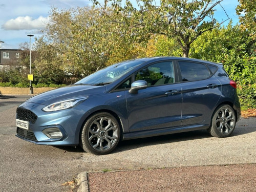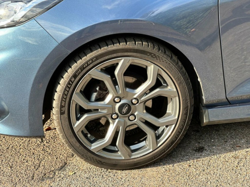Stunning Ford Fiesta MHEV ST-Line Edition in Chrome Blue with Cloth interior supplied with Service History, FITTING & INSTALLATION OF GHOST 2 IMMOBILISER AVAILABLE, Car will be supplied with 6 Month Warranty and New MOT, 17-inch "Rock Metallic" 5-spoke ST-Line alloy wheels, ST-Line full bodystyling kit, including unique upper grille, front and rear bumpers, and side skirts, ST-Line front fog lamps with cornering lights, Sports-style front seats with ST-Line detailing, ST-Line flat-bottomed steering wheel with contrast stitching, Ford SYNC 3 navigation with Apple CarPlay and Android Auto, Keyless start with Ford Power Start Button, , Auto-dimming rear-view mirror, Automatic rain-sensing wipers, Black interior headlining, Sensico-wrapped handbrake and gear knob, Sports pedals, 1.0T EcoBoost MHEV (Mild Hybrid) petrol engine - Sports-tuned suspension - Electric Power Assisted Steering (EPAS) and ECO mode, ABS, Air conditioning, Alarm, Cloth seat trim, Cruise control, Heated mirrors, Parking sensors, Sat Nav, Sports seats, Steering wheel rake adjustment - reach adjustment, Electric mirrors, PAS, Remote locking, LED projector headlights with daytime running lights, Chrome finish exhaust pipe, Quick clear heated windscreen, Rear privacy glass & Many More Features Spare Wheel - 14in Steel, Chrome Blue, 17in Alloy Wheels - ST-Line 5-spoke - Ro, Air Conditioning - Manual, Airbags - Driver and Front Passenger, Airbags - Front Side Impact, Airbags - Front and Rear Side Curtain, Anti-Lock Braking System - ABS with Elec, Automatic Rain Sensing Wipers and Auto-D, Black Belt Line Finisher, Black Interior Headlining, Body Colour Bumpers, Centre Console with Armrest and Illumina, Courtesy Light - Front Map Light and Rea, Cruise Control, Door Handles - Body Colour, Door Lever - Chrome Finish, Door Mirrors - Electrically-Operated and, Driver Seat with Manual Height Adjust, EPAS - Electric Power Assisted Steering, Electric Windows - Front, Electric Windows - Rear,