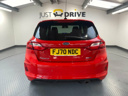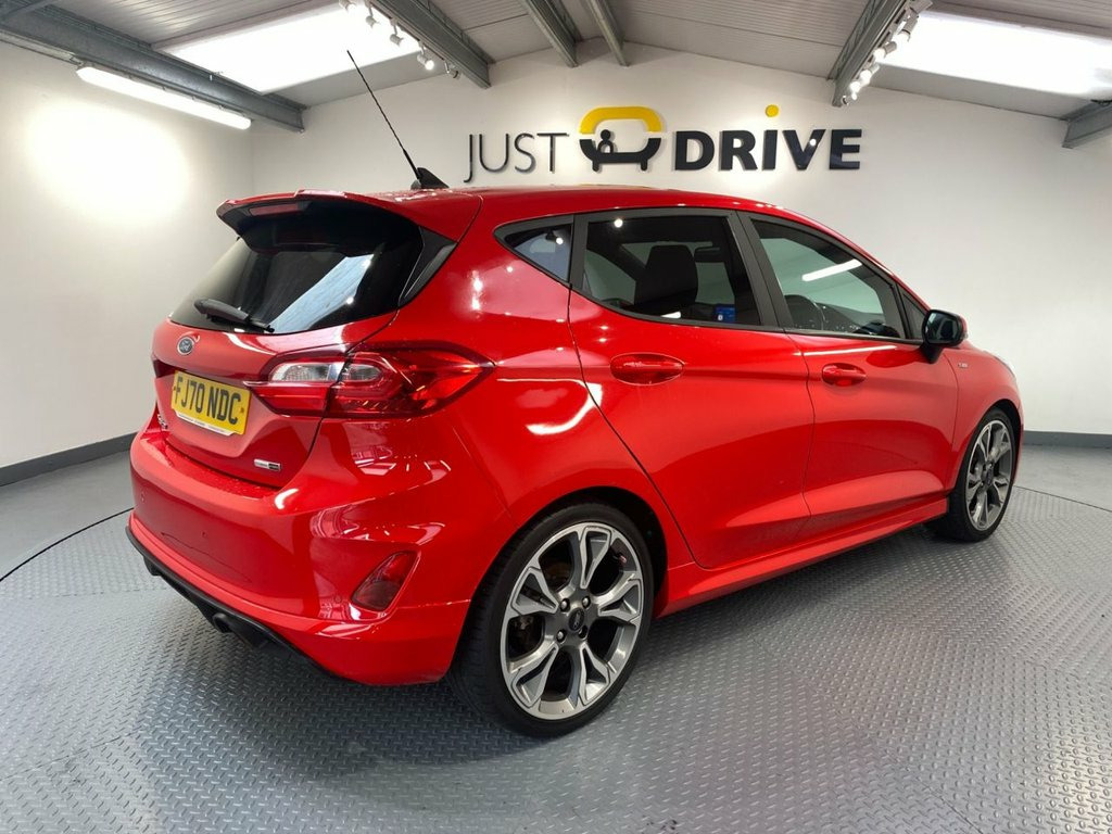 Just Drive are thrilled to offer this fantastic Fiesta ST-Line and its purposeful appearance is backed up by the superb driving experience. Its 1.0 Turbo mild-hybrid petrol engine revs smoothly to deliver peppy performance, while its sports-tuned suspension strikes a nice balance between comfort and dynamism. This is enhanced by its well-weighted, direct steering and a precise, light gearshift. Fully colour coded in Race Red, the sporty exterior is enhanced with 17" diamond cut alloy wheels, dark tint privacy glass and sports body styling. Inside there's sport style seats in part leather effect upholstery and Ford's famous SYNC touchscreen media system - this includes navigation, Bluetooth connectivity for multiple devices with voice control and also supports DAB radio and Apple CarPlay. The impressive level of equipment continues with cruise control, rear park sensors, air conditioning, lane departure warning and a leather multi-function sport steering wheel. The 1.0 turbo petrol engine produces an powerful 153 Bhp, is ULEZ compliant and should achieve around 57 mpg on the combined cycle. 18in Alloy Wheels - ST-Line 5-Spoke - Ro, 4.2in TFT Instrument Cluster Screen, Air Conditioning - Electronic Automatic , Airbags - Driver and Front Passenger, Airbags - Front Side Impact, Airbags - Front and Rear Side Curtain, Anti-Lock Braking System - ABS with Elec, Automatic Rain Sensing Wipers and Auto-D, B and O PLAY In-Car Audio Premium Sound , Black Belt Line Finisher, Black Interior Headlining, Body Colour Bumpers, Cargo Area Cover, Centre Console with Armrest and Illumina, Chrome Finish Exhaust Pipe, Courtesy Light - Front Map Light and Rea, Cruise Control, Door Handles - Body Colour, Door Lever - Chrome Finish, Door Mirrors - Electrically-Operated and, Driver Seat with Manual Heigh