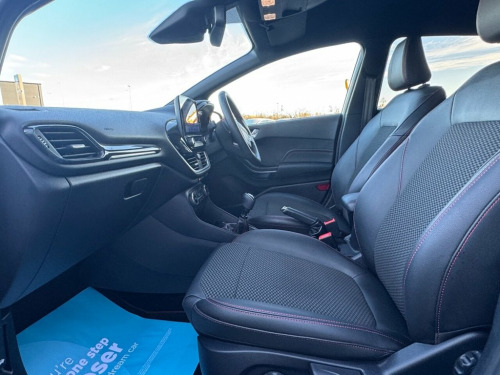 DRIVE HOME TODAY IN THIS SUPER FUNKY LOW MILEAGE AND HIGH SPECIFICATION 2021-71 FORD FIESTA 1.0T ECOBOOST MHEV ST-LINE X EDITION 5 DOOR HATCHBACK 155 BHP 5 DOOR FINISHED IN FREEDOM BLUE METALLIC AND TRIMMED WITH BLACK HEATED PART LEATHER SPORTS SEATING. ONE FORMER KEEPER FROM NEW WITH ONY 18K MILES COMPLETE WITH A SERVICE HISTORY AND JUST SERVICED @ 17,462 MILES ON THE 08-11-2025 . A SUPERB COMBINATION OF STYLE, LUXURY AND ECONOMY . GREAT SPEC INC 18"ALLOY WHEELS, COMFORT PACK, B&O SOUND, CRUISE CONTROL, SAT-NAV, CAMERA, HEATED SEATS & STEERING WHEEL, CAR PLAY,CLIMATE CONTROL, PRIVACY GLASS, DAB, BLUETOOTH, ELECTRIC FOLDING MIRRORS, ALONG WITH THE USUAL FORD REFINEMENTS. Partial Leather - ST-Line X Red Pack - B, 18in Alloy Wheels - ST-Line 5-Spoke - Ro, 4.2in TFT Instrument Cluster Screen, Air Conditioning - Electronic Automatic , Airbags - Driver and Front Passenger, Airbags - Front Side Impact, Airbags - Front and Rear Side Curtain, Anti-Lock Braking System - ABS with Elec, Automatic Rain Sensing Wipers and Auto-D, B and O PLAY In-Car Audio Premium Sound , Black Belt Line Finisher, Black Interior Headlining, Body Colour Bumpers, Cargo Area Cover, Centre Console with Armrest and Illumina, Chrome Finish Exhaust Pipe, Courtesy Light - Front Map Light and Rea, Cruise Control, Door Handles - Body Colour, Door Lever - Chrome Finish, Door Mirrors - Electrically-O