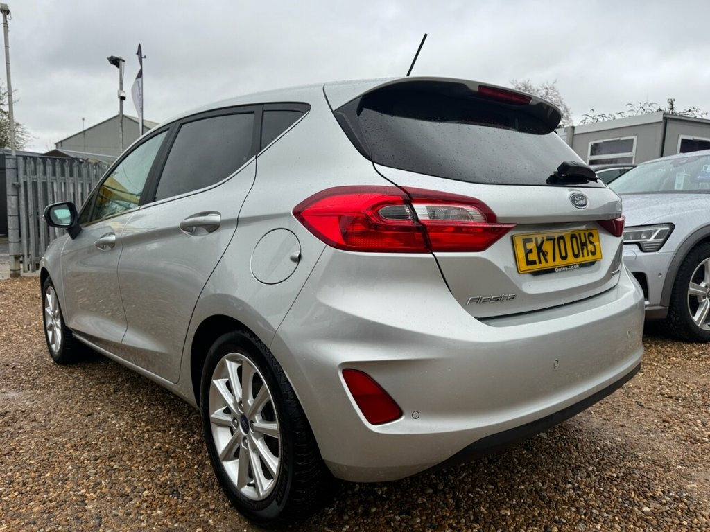 This 2020 Ford Fiesta Titanium boasts a clear vehicle history, offering you peace of mind. This popular hatchback features a 1.0L petrol engine and meets Euro 6 emissions standards. Its Titanium trim level includes stylish LED projector headlights with daytime running lights, and for your convenience, manual air conditioning and rear parking distance sensors. Navigating your journeys is made simple with the Ford Navigation System, complete with Ford SYNC 3, offering seamless integration for Apple CarPlay and Android Auto, alongside FordPass Connect embedded modem. The NCAP Pack further enhances safety with automatic headlights. Experience impressive efficiency with this Ford Fiesta, achieving a highlight fuel economy of 58 mpg, which indicates it is more economical than many similar vehicles. Its low CO2 emissions also contribute to its appeal. For those who appreciate performance, this Fiesta accelerates from 0 to 60 mph in just 9.4 seconds, demonstrating a responsive driving experience that sets it apart from other cars in its class. Moondust Silver, 16in Alloy Wheels - 10 Spoke, Air Conditioning - Manual, Airbags - Driver and Front Passenger, Airbags - Front Side Impact, Airbags - Front and Rear Side Curtain, Anti-Lock Braking System - ABS with Elec, Automatic Rain Sensing Wipers and Auto-D, Body Colour Bumpers, Centre Console with Armrest and Illumina, Chrome Belt Line Finisher, Chrome Lower Window Surround, Courtesy Light - Front Map Light and Rea, Cruise Control, Door Handles - Body Colour, Door Lever - Chrome Finish, Door Mirrors - Electrically-Operated and, Driver Seat with Manual Height Adjust, EPAS - Electric Power Assisted Steering, Electric Windows - Front, Electric Windows - Rear, Electronic Stability Programm