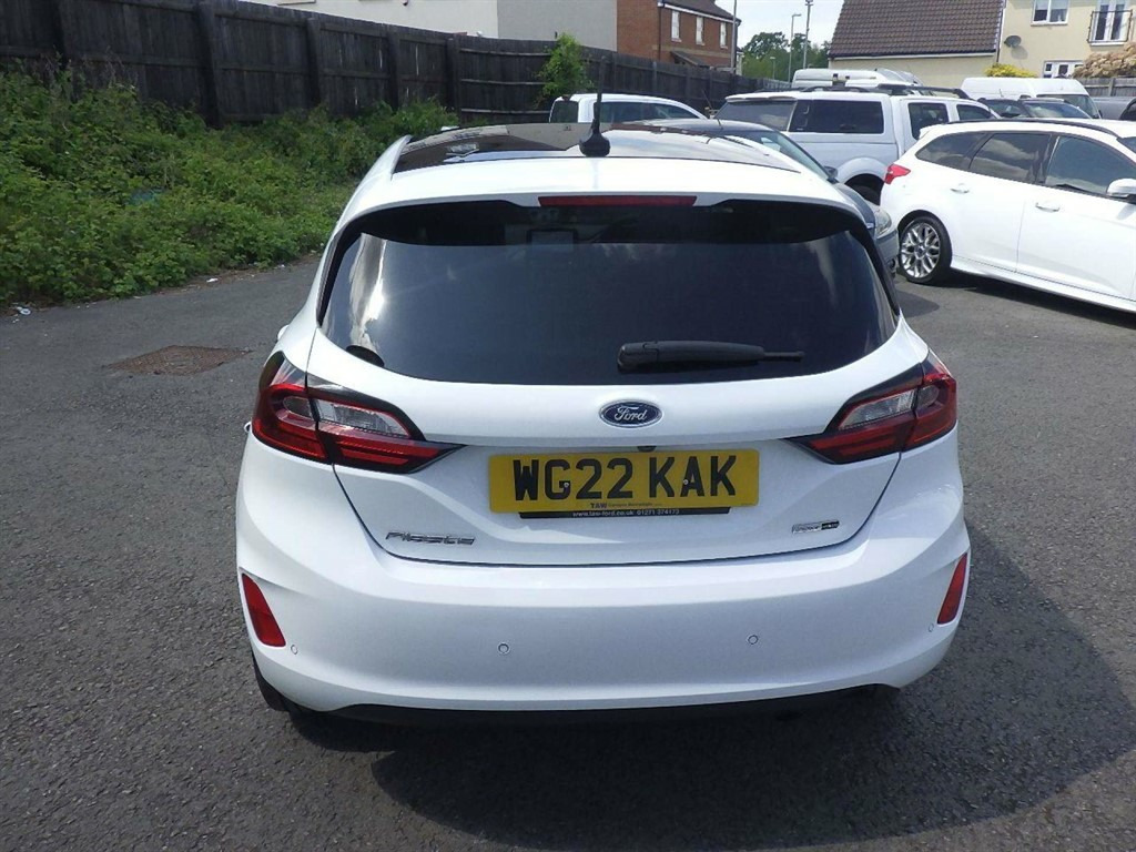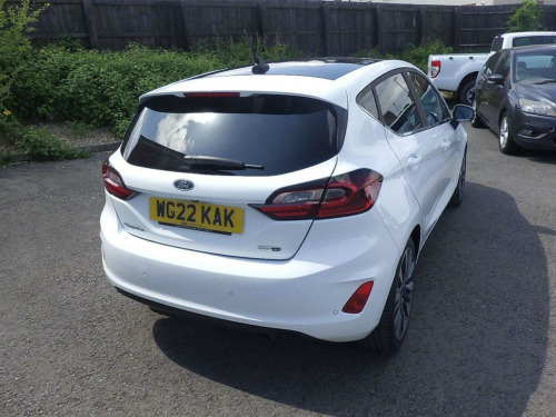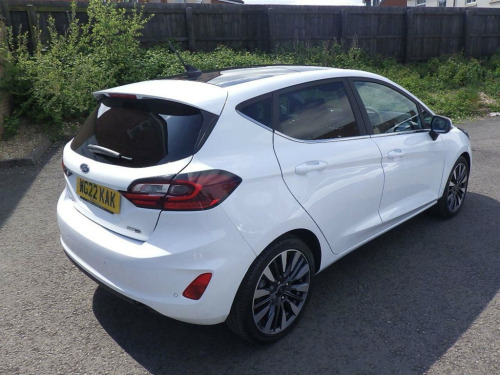 With only one previous owner and low mileage of just 13555 miles for a 2022 registration, this Ford Fiesta 1.0L Petrol Hybrid is a superb example of the Titanium Vignale trim. As a Euro 6 emissions class car, this Fiesta T Titanium Vignale comes with a host of features to enhance your driving experience. Enjoy the luxury of the Opening Panorama Roof, complete with a Panoramic Sunroof, and Matrix LED Headlights with Signature LED Daytime Running Lights and Integrated Sequential Indicators. The Driver Assistance Pack, including Adaptive Cruise Control, adds convenience and safety to every journey. The Winter Pack, featuring heated seats and a heated steering wheel, ensures comfort during colder months. Manoeuvring is made easy with the Rear View Camera and Rear Parking Assistance. The Fiesta accelerates from 0-62mph in 9.6 seconds, demonstrating its responsive performance. This is a great indication of how this vehicle performs against its competitors. Trip Computer,Winter Pack,Tyre Repair Kit,Tyre Pressure Monitoring System - TPMS,Traffic Sign Recognition, Auto High Beam and Driver Alert,Thatcham Category Alarm with Power Door Deadlocks,Tailgate Wash-Wipe,Steering Column - Rake and Reach Adjustment,Standard Suspension,Sensico Steering Wheel,Selectable Drive Modes,Seats - ISOFIX Mounting Provision for Child Seats,SYNC 3 with Navigation,Remote Central-Double Locking,Rear View Camera,Rear Spoiler - Body Colour with Centre High Mounted Stop Light,Chrome Belt Line Finisher,Enhanced Electronic Stability Control - ESC with Traction Control - Emergency Brake Assist - EBA - Hill Start Assist - HSA and Trailer Sway Control,Emergency Brake Warning - Automatic Hazard Warning Lights,Electrically-Operated Front Windows with One Touch Drivers,Electric Windows - Rear,EPAS - Electric Power Assisted Steering,Door Mirrors - Heated - Electric - Integrated Side Indicators - Body Coloured,Door Lever - Chrome Finish,Door Handles - Body Colour,Cruise Control includes Speed Limiter and Intelligent Speed Assistance,Courtesy Light - Front LED with Map-reading Light,Floor Mats - Front,Centre Console - Premium with Openable Stowage Area with USB Connectivity - 2 Cupholders and 12v Power Point,Cargo Area Cover,Body Colour Bumpers,Automatic Rain Sensing Wipers and Auto-Dimming Rear View Mirror,Anti-Lock Braking System - ABS with Electronic Brake Force Distribution - EBD,Airbags - Side Curtain,Airbags - Front Side Impact,Airbags - Driver and Front Passenger,Air Conditioning - Electronic Automatic Temperature Control - EATC,4-Way Manual Passengers Seat Adjust,Lane-Keeping Aid with Lane-Keeping Assist,Rear Seat - 60-40 Split Back and Cushion,Rear Privacy Glass,Rear Lights - LED,Rear Fog Lamps,Quickclear Heated Windscreen,Parking Distance Sensors - Rear,Overhead Console - Sunglasses Holder,MyKey,Locking Wheel Nuts,17in Alloy Wheels - 10 Spoke with Pearl Grey Machined Finish,LED Headlights with Daytime Running Lights and Integrated Fog Lights,Interior Ambient LED Lighting,IPS - Intelligent Protection System,High Gloss Chrome Grille Surround with Satin Grille Insert,Headlights - Automatic,Full Digital 12.3in Instrument Cluster,Front Seat - Driver 4-Way Manual Adjust,Front Fog Lamps with Cornering Lights,Ford Key Free System - Keyless Entry with Keyless Start,Ford Easy-Fuel Capless Refuelling System,Driver Assistance Pack,B&O Premium Sound System,Opening Panorama Roof,Matrix LED Headlights with Signature LED Daytime Running Lights and Integrated Sequential Indicator