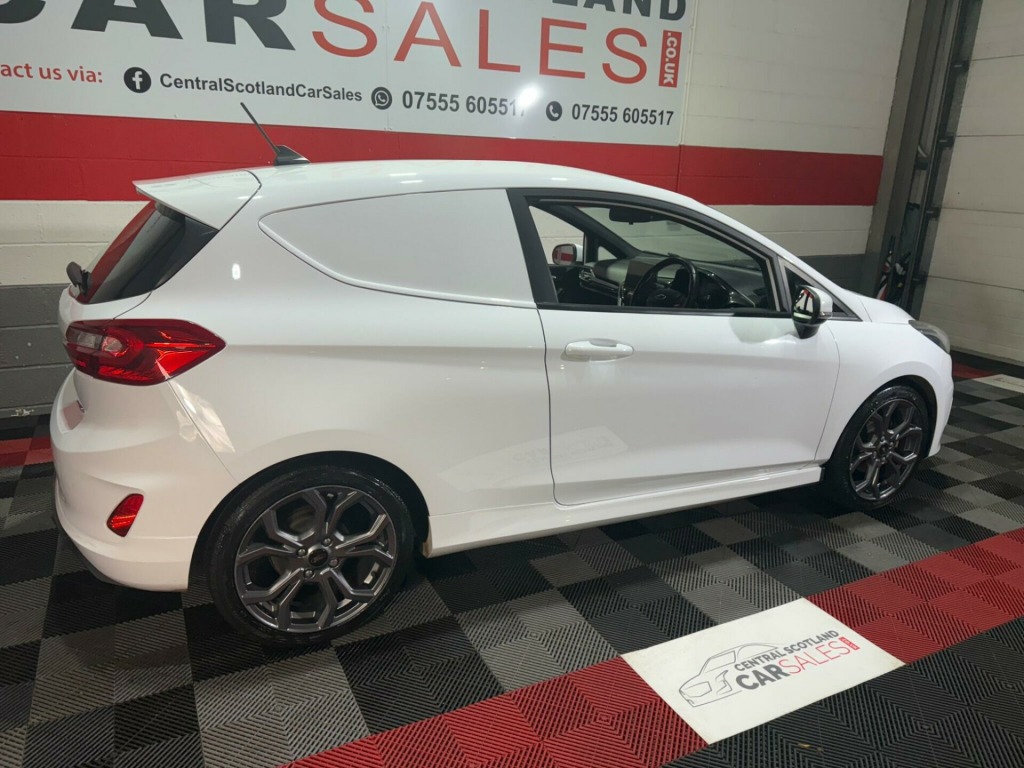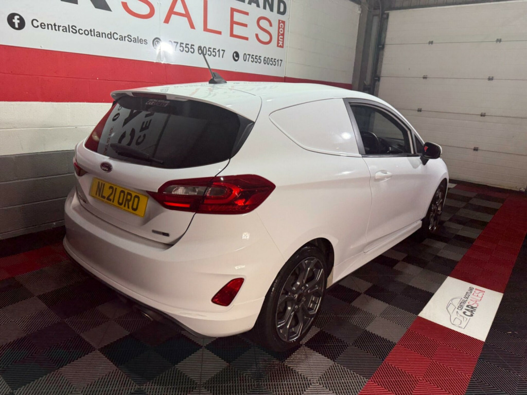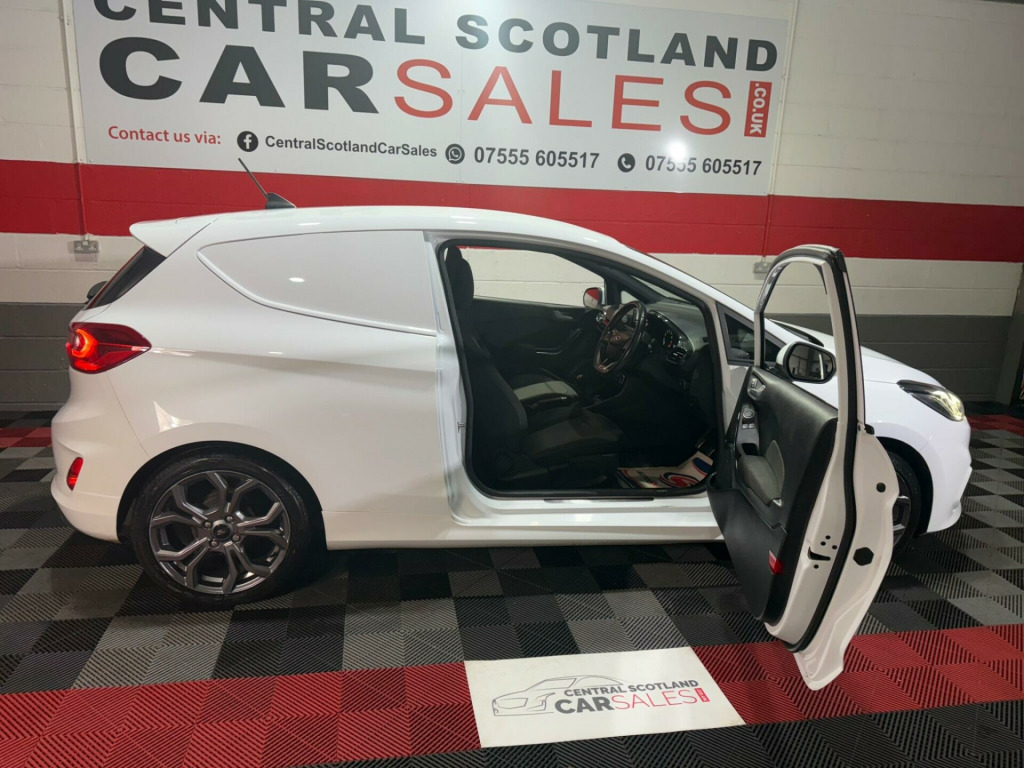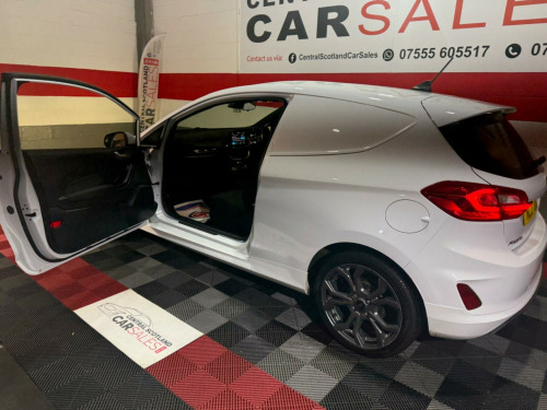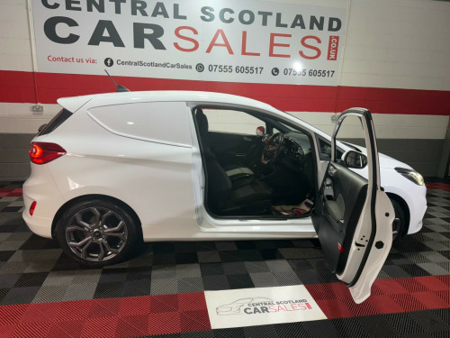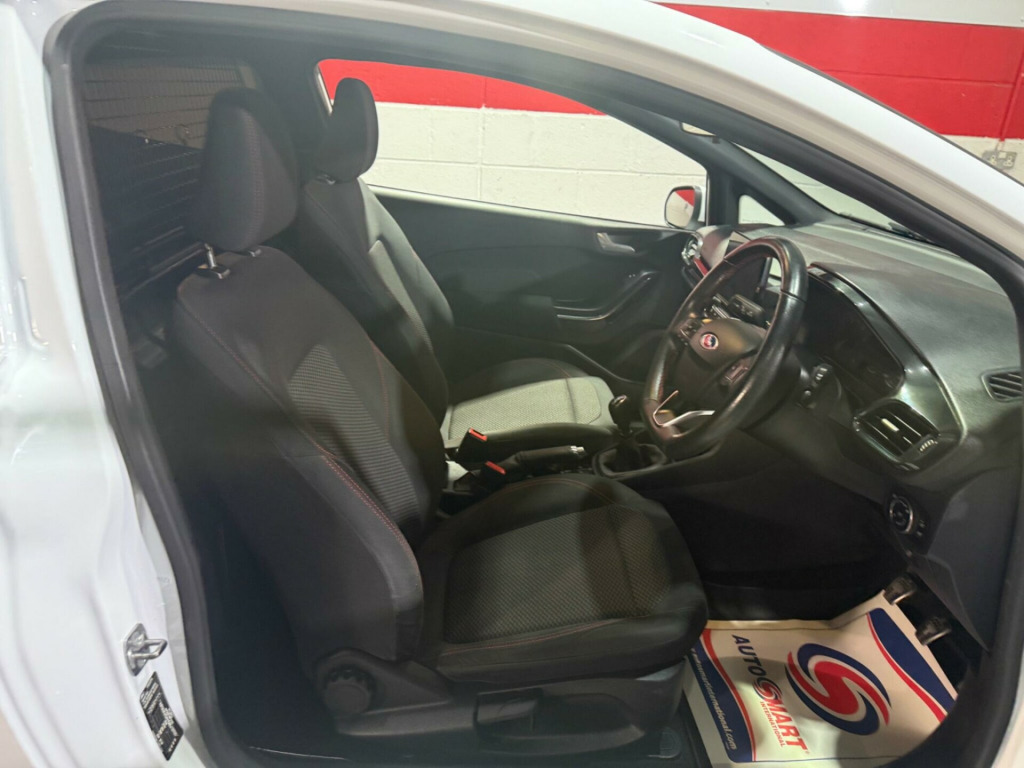 This 2021 Ford Fiesta Van boasts a clear vehicle history, offering you peace of mind from the start. This Sport derivative features a 1.0L EcoBoost petrol engine, meeting Euro 6 emissions standards. It comes with a 2 month warranty and a 12 month MOT will be provided on purchase, ensuring its roadworthiness. Notable features include LED projector headlights with daytime running lights, manual air conditioning, automatic headlights, and the Ford SYNC radio with DAB and Bluetooth connectivity.The 1.0T EcoBoost Sport model delivers an impressive 123 bhp, a highlight that sets it apart from many other vans in its class. This enhanced engine power provides a more dynamic driving experience. The combination of its sporty trim, efficient engine, and modern technology makes this Fiesta Van a compelling choice for those seeking a capable and well equipped commercial vehicle. urt cloth - ebony, ford sync 3 dab radio with usb, ford sync 3 radio with dab and satellite navigation, pre-collision assist, rear parking sensors, airbag pack, driver assistance pack 2, 18in alloy wheels - 5x2 spoke - rock metallic machined, large rear spoiler, seat pack, 17in alloy wheels - 5x2-spoke - rock metallic, abs - anti-lock braking system, active grille shutter, adjustable speed limiter, aluminium gear shift knob with leather gaiter, automatic headlights, bulkhead - full height - upper half mesh, door mirrors - electrically operated and heated - body coloured, driver and passenger airbags with passenger deactivation switch, eba - emergency brake assist, epas - electric power assisted steering, ecocoach, emergency brake lights, ford easy fuel - capless refuelling system, ford sync radio with dab, fordpass connect, front fog lamps with cornering lights, hla - hill launch assist, headliner - woven-dark, keyless start with ford power start button, led projector headlights with daytime running lights, led taillamps, lane keeping system, load floor liner, manual air conditioning, power door deadlocks - double locking, power front windows with one touch up down, premium floor mats, quickclear heated front windscreen, quickclear heated front windscreen with heated washer jets, rear spoiler - body colour, remote central locking with two flip keys, seats - drivers 4-way adjustment, spare wheel - 14in steel, sports seats, sports style body kit, sports suspension, stainless steel sports foot pedals, steering column - rake and reach adjustment, steering wheel - leather-trimmed sports style flat bottomed, thatcham category 1 alarm with power door deadlocks, traction control - tc, trip computer, tyre pressure monitoring system