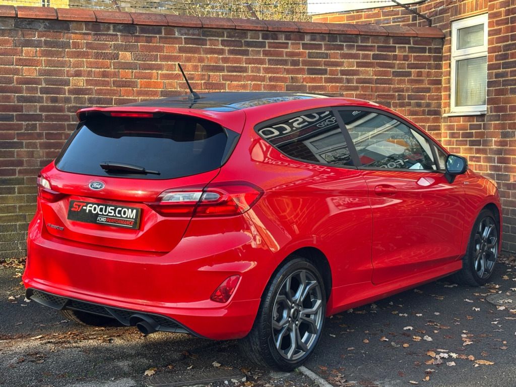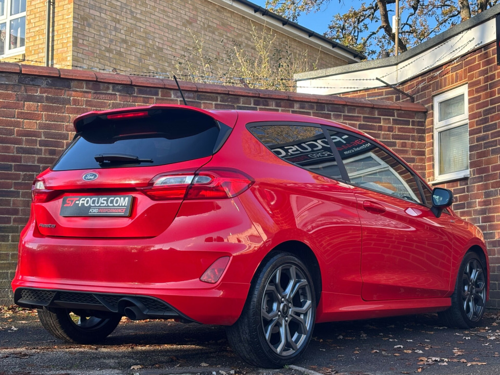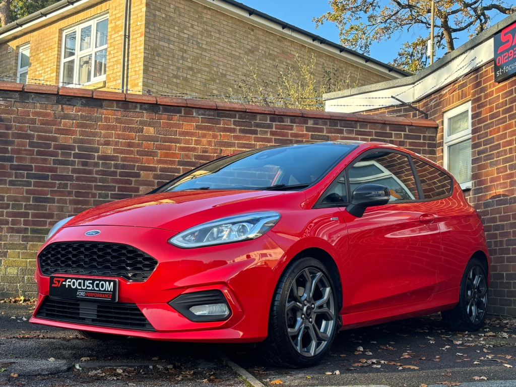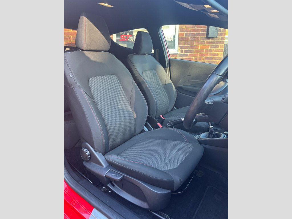 We are pleased to offer this beautiful example Fiesta ST-Line finished in Race Red.This car has been meticulously looked after its whole life, the previous owner had owned this car since nearly new purchasing in November 2018.It has never had any expense spared and comes with FULL FORD MAIN DEALER SERVICE HISTORY. It is also a LOW INSURANCE GROUP, and is very economical on fuel.It also comes with a great factory spec including:*SYNC 3 MEDIA SYSTEM.*QUICK CLEAR HEATED WINDSCREEN.*GLOSS BLACK PAINTED ROOF FROM FACTORY.*17'' ROCK GREY GENUINE FORD ALLOW WHEELS.*SAT NAV.*CRUISE CONTROL.*AIR CON.*ECO MODE.*AUTO STOP/START.*MUCH MORE...We can offer finance on this vehicle and we also accept part exchange if required... Please be aware if a third party finance company is used there will be a small admin fee applied.WWW.ST-FOCUS.COM 01293 536444EMAIL: ST-FOCUSHOTMAIL.COM'THE ORIGINAL FORD PERFORMANCE SPECIALISTS!' in alloy wheels - st-line 5-spoke - rock metallic, black belt line finisher, body coloured electrically operated door mirrors with integrated side indicators, door handles - body colour, electrically-operated front windows with one touch drivers, front bumper - unique st-line, quickclear heated windscreen, rear bumper - unique st-line, rear spoiler - body colour - large, st line front scuff plates, st-line side skirt body mouldings - body colour, tyre repair kit, unique st-line upper grille and full bodystyling kit with st-line wing badges, wipers - standard with 6 speed interval settings, abs - anti-lock braking system, airbags - driver, airbags - front passenger, airbags - front and rear side curtain, airbags - side curtain, airbags - side impact, ebd - electronic brakeforce distribution, electronic stability control - esc with traction control and emergency brake assist - eba, electronic stability programme - esp with hill start assist, ford easy fuel system, ips - intelligent protection system, ncap pack, remote central locking and engine immobiliser, tailgate wash-wipe, thatcham alarm, air conditioning - manual, centre console with armrest and illuminated cupholders, courtesy light - ambient led courtesy lighting cup holder, courtesy light - front map light and rear - overhead led, door lever - chrome finish, front seats - sports style, gearshift knob - st -line leather trimmed with aluminium inset and metal grey gaiter stitching, glovebox - illuminated, headliner - woven, leather-trimmed handbrake, manual drivers seat height adjustment, mykey, overhead console - sunglasses holder, rear fog lamps, rear seat - 60-40 split back and cushion, st floor mats - front and rear, sports pedals, steering column - rake and reach adjustment, steering wheel - st-line 3-spoke leather trimmed flat bottomed, warning triangle storage, ford dab radio with ford sync3 - apple car play and android auto, headlights - automatic on-off, headlights - halogen projector with black bezel and dedicated led daytime running lights, st-line front fog lamps with cornering lights, power steering, sports tuned suspension, trip computer, tyre pressure monitoring system - tpms