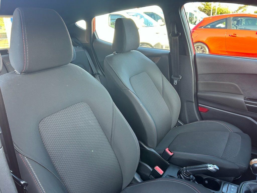 This 2018 Ford Fiesta ST Line boasts exceptionally low mileage for its age, having covered just 52,865 miles. It features a responsive 1.0L petrol engine and meets Euro 6 emissions standards. The vehicle comes with 2 keys, a 3 month warranty and a full 12 months MOT will be provided upon purchase. Its last service was completed on 26th November 2025 at 52,880 miles, demonstrating excellent provenance. Notable features include Ford DAB Radio with Ford SYNC3, offering seamless integration with Apple CarPlay and Android Auto, and the NCAP Pack which includes automatic headlights for enhanced safety and convenience. Manual air conditioning ensures a comfortable cabin environment. Experience impressive fuel economy with this Fiesta, achieving a remarkable 66 mpg, which is a significant highlight indicating its efficiency compared to similar vehicles. It also boasts low CO2 emissions, further contributing to its economical running costs. The acceleration from 0 to 60 mph in 10.6 seconds provides a capable and engaging driving experience. This combination of excellent fuel economy, low emissions, and brisk acceleration makes this Ford Fiesta ST Line a compelling choice for those seeking a practical yet enjoyable car. Court Cloth - Ebony, Race Red, 17in Alloy Wheels - ST-Line 5-Spoke - Ro, ABS - Anti-lock Braking System, Air Conditioning - Manual, Airbags - Driver, Airbags - Front Passenger, Airbags - Front and Rear Side Curtain, Airbags - Side Curtain, Airbags - Side Impact, Black Belt Line Finisher, Body Coloured Electrically Operated Door, Centre Console with Armrest and Illumina, Courtesy Light - Ambient LED Courtesy Li, Courtesy Light - Front Map Light and Rea, Door Handles - Body Colour, Door Lever - Chrome Finish, EBD - Electronic Brakeforce Distribution, Electrically-Operated Front Windows with, Electronic Stability Control - ESC with , Electronic Stability Programme - ESP wit, Ford DAB Radio with