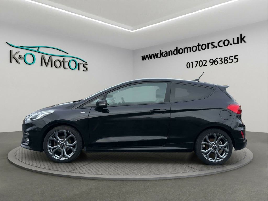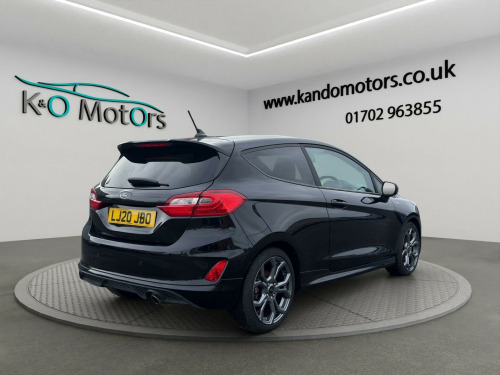 Welcome to K&O Motors – Your Trusted Source for Quality Cars in Southend, Essex. Discover an exciting selection of vehicles, each hand-selected and ready for immediate viewing and purchase. This 2020 Used Ford Fiesta ST Line Edition, finished in Metallic Black is fully ULEZ compliant and offered for sale in Southend-on-Sea, Essex. This vehicle is just one of many premium-quality models available at K&O Motors, all carefully chosen for their condition, value, and performance. With a great specification and service history throughout, this car is fully prepped and ready for its next owner today. We’re proud to be recognised in the top 5% of Autotrader dealers for five consecutive years, having earned their ‘Highly Rated for Customer Service’ Award annually due to our consistent focus on customer satisfaction. Why choose K&O Motors? We are conveniently located in Southend, Essex and have earned over 295 verified 5-star reviews, with a 99%+ customer satisfaction rate. Every vehicle undergoes a full multi-point health check and is fully HPI clear, ensuring complete peace of mind. Exceptional customer service is our number one priority. We offer competitive part exchange deals and finance packages tailored to all credit backgrounds, including those with poor credit. Nationwide delivery is available at a pre-agreed fee. For added peace of mind, we provide nationwide drive-away warranty cover for up to 3 years. We also offer free collection from Southend Central or Prittlewell train stations, making it easy and convenient for you to visit us. Book an appointment today to view our stock or secure your chosen vehicle with a fully refundable deposit. Our opening hours are Monday to Friday, 9:15 AM to 6:00 PM, and Saturday, 9:15 AM to 1:00 PM. Appointments outside these hours are available on request. At K&O Motors, we don’t just sell cars – we redefine the buying experience. Contact us today or visit us in person. Your journey to a quality vehicle starts here.. 17in Alloy Wheels - ST-Line 5-spoke - Rock Metallic, Air Conditioning - Manual, Airbags - Driver and Front Passenger, Airbags - Front Side Impact, Airbags - Front and Rear Side Curtain, Anti-Lock Braking System - ABS with Electronic Brake Force Distribution - EBD, Automatic Rain Sensing Wipers and Auto-Dimming Rear View Mirror, Black Interior Headlining, Body Colour Bumpers, Centre Console with Armrest and Illuminated Cupholders, Courtesy Light - Front Map Light and Rear - Overhead LED, Cruise Control, Door Handles - Body Colour, Door Lever - Chrome Finish, Door Mirrors - Electrically-Operated and Heated - Power-Foldable with Integrated Side Indicators - Body Colour Housings and Puddle Lights, Driver Seat with Manual Height Adjust, Dual Tone Horn, EPAS - Electric Power Assisted Steering, Electric Windows - Front, Electronic Stability Programme - ESP with Hill Start Assist, Emergency Brake Warning - Automatic Hazard Warning Lights, Floor Mats - Front and Rear, Ford Easy-Fuel Capless Refuelling System, Ford Navigation System with Ford SYNC 3 - Apple CarPlay and Android Auto and FordPass Connect - Embedded Modem, Front Seats - Sports Style, Glovebox - Illuminated, Halogen Projector Headlights with LED Daytime Running Lights, IPS - Intelligent Protection System, Keyless Start with Ford Power Start Button, Large Body Coloured Rear Spoiler, MyKey, NCAP Pack, Overhead Console - Sunglasses Holder, Parking Distance Sensors - Rear, Quickclear Heated Windscreen, Rear Fog Lamps, Rear Lights - LED Night Signature, Rear Privacy Glass, Rear Seat - 60-40 Split Back and Cushion, Remote Central-Double Locking, ST-Line Front Fog Lamps with Cornering Lights, ST-Line Side Skirt Body Mouldings - Body Colour, Seats - ISOFIX Mounting Provision for Child Seats, Selectable Drive Modes, Sensico Wrapped Handbrake and Gear Knob, Sensico Wrapped ST-Line Flat-Bottom Steering Wheel, Sports Pedals, Sports Tuned Suspension, Steering Column - Rake and Reach Adjustment, Tailgate Wash-Wipe, Thatcham Category 1 Alarm, Trip Computer, Tyre Pressure Monitoring System - TPMS, Tyre Repair Kit, USB Connection x2, Ultra Low Rolling Resistance Tyres, Unique ST-Line Upper Grille and Full Bodystyling Kit with ST-Line Wing Badges, Warning Triangle Storage. Full service history