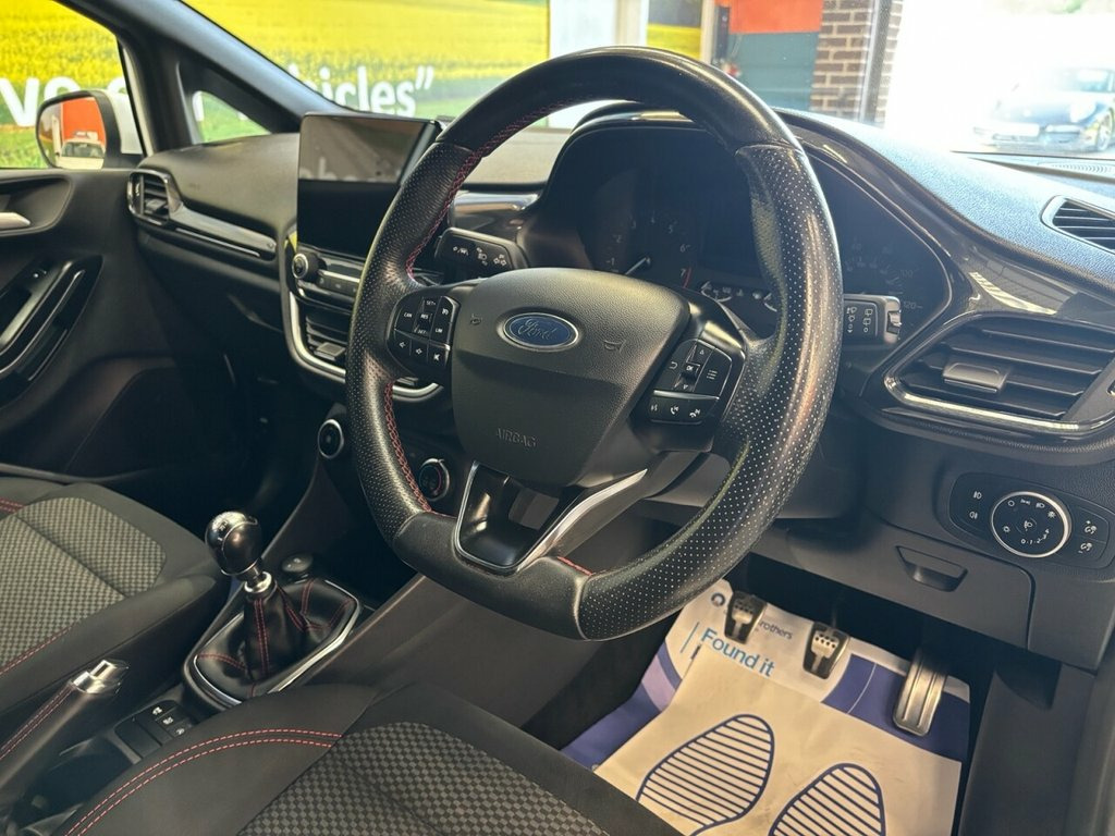 Scott's of Leeds Car Sales are pleased to offer this FORD FIESTA 1.0T EcoBoost ST-Line Edition Hatchback 5 Door Petrol Manual in White. The car is in good condition throughout, in the best colour combination and a great specification including Satellite Navigation, Cruise control, Speed limiter, apple carplay, DAB radio, Bluetooth, Rear parking sensors, automatic lights, alloy wheels, USB point, privacy glass, isofix, Pushbutton start, and much much more. The car will be supplied with an up to date service record having just been serviced in our Workshop, an MOT until April 2026 and 2 Keys ready to drive away. A guaranteed 12 Months MOT can be added for an extra £100. DISCLAIMER: The above specification is true and correct. Any other specification listed elsewhere can sometimes be incorrect. Please check with Sales Executive to clarify this if needed prior to purchase. 17in Alloy Wheels - ST-Line 5-spoke - Ro, Air Conditioning - Manual, Airbags - Driver and Front Passenger, Airbags - Front Side Impact, Airbags - Front and Rear Side Curtain, Anti-Lock Braking System - ABS with Elec, Automatic Rain Sensing Wipers and Auto-D, Black Interior Headlining, Body Colour Bumpers, Centre Console with Armrest and Illumina, Courtesy Light - Front Map Light and Rea, Cruise Control, Door Handles - Body Colour, Door Lever - Chrome Finish, Door Mirrors - Electrically-Operated and, Driver Seat with Manual Height Adjust, EPAS - Electric Power Assisted Steering, Electric Windows - Front, Electric Windows - Rear, Electronic Stability Programme - ESP wit, Emergency Brake Warnin