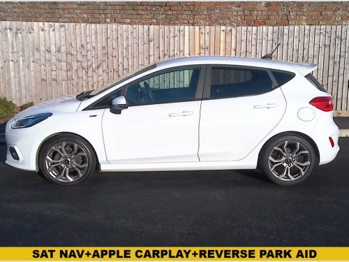 This 2021 Ford Fiesta ST-Line Edition is a superb example of a popular hatchback, offering a blend of style and practicality. Finished in Frozen White with contrast black cloth interior and with 17" Rock Metallic Alloy Wheels. Powered by an efficient 1.0L petrol engine, this Euro 6 compliant model is designed for modern driving. It comes equipped with striking LED projector headlights featuring daytime running lights, the Ford Navigation System with Ford SYNC 3, which seamlessly integrates with Apple CarPlay and Android Auto, Air Conditioning, Cruise Control and Rear Park Aid. It also has the Ford Quick Clear windscreen - perfect for cold mornings! It has been both well looked after and maintained and we are happy to include a further service, 12 month's MOT and a 6 month warranty for complete peace of mind. It is HPI checked clear, has a service book and two remote locking keys. The Ford Fiesta ST-Line Edition delivers an impressive fuel economy of 54 miles per gallon, demonstrating its efficiency compared to other vehicles in its class. Its low CO2 emissions further highlight its environmentally conscious design. With an acceleration of 0-60mph in just 10.6 seconds, this Fiesta offers responsive performance for everyday journeys, making it a well rounded choice for those seeking a capable and economical car. Our advertised price includes a further service, 12 months MOT and a 6 month warranty for complete peace of mind. We are happy to take your part exchange Frozen White, Court Cloth - Ebony, 17in Alloy Wheels - ST-Line 5-spoke - Ro, Ford Navigation System with Ford SYNC 3 , Cruise Control, Air Conditioning , Apple Carplay & Android Auto, Parking Distance Sensors - Rear, Quickclear Heated Windscreen, Door Mirrors - Electrically-Operated and, Automatic Rain Sensing Wipers and Auto-D, IPS - Intelligent Protection System, MyKey, Body Colour Bumpers, Centre Console with Armrest and Illumina, Keyless Start with Ford Power Start Butt, Courtesy Light - Front Map Light and Rea, Black Belt Line Finisher, Door Handles - Body Colour, Black Interior Headlining, Airbags - Driver and Front Passenger, Door Lever - Chrome Finish, Airbags - Front Side Impact