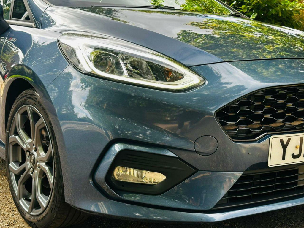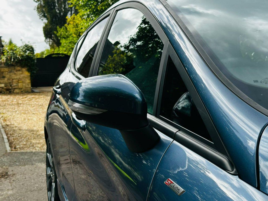 . 17in Alloy Wheels - ST-Line 5-spoke - Rock Metallic, Air Conditioning - Manual, Airbags - Driver and Front Passenger, Airbags - Front Side Impact, Airbags - Front and Rear Side Curtain, Anti-Lock Braking System - ABS with Electronic Brake Force Distribution - EBD, Automatic Rain Sensing Wipers and Auto-Dimming Rear View Mirror, Black Interior Headlining, Body Colour Bumpers, Centre Console with Armrest and Illuminated Cupholders, Courtesy Light - Front Map Light and Rear - Overhead LED, Cruise Control, Door Handles - Body Colour, Door Lever - Chrome Finish, Door Mirrors - Electrically-Operated and Heated - Power-Foldable with Integrated Side Indicators - Body Colour Housings and Puddle Lights, Driver Seat with Manual Height Adjust, Dual Tone Horn, EPAS - Electric Power Assisted Steering, Electric Windows - Front, Electric Windows - Rear, Electronic Stability Programme - ESP with Hill Start Assist, Emergency Brake Warning - Automatic Hazard Warning Lights, Floor Mats - Front and Rear, Ford Easy-Fuel Capless Refuelling System, Ford Navigation System with Ford SYNC 3 - Apple CarPlay and Android Auto and FordPass Connect - Embedded Modem, Front Seats - Sports Style, Glovebox - Illuminated, Halogen Projector Headlights with LED Daytime Running Lights, IPS - Intelligent Protection System, Keyless Start with Ford Power Start Button, Large Body Coloured Rear Spoiler, MyKey, NCAP Pack, Overhead Console - Sunglasses Holder, Parking Distance Sensors - Rear, Quickclear Heated Windscreen, Rear Fog Lamps, Rear Lights - LED Night Signature, Rear Privacy Glass, Rear Seat - 60-40 Split Back and Cushion, Remote Central-Double Locking, ST-Line Front Fog Lamps with Cornering Lights, ST-Line Side Skirt Body Mouldings - Body Colour, Seats - ISOFIX Mounting Provision for Child Seats, Selectable Drive Modes, Sensico Wrapped Handbrake and Gear Knob, Sensico Wrapped ST-Line Flat-Bottom Steering Wheel, Sports Pedals, Sports Tuned Suspension, Steering Column - Rake and Reach Adjustment, Tailgate Wash-Wipe, Thatcham Category 1 Alarm, Trip Computer, Tyre Pressure Monitoring System - TPMS, Tyre Repair Kit, USB Connection x2, Ultra Low Rolling Resistance Tyres, Unique ST-Line Upper Grille and Full Bodystyling Kit with ST-Line Wing Badges, Warning Triangle Storage, Court Cloth - Ebony, Chrome Blue.
