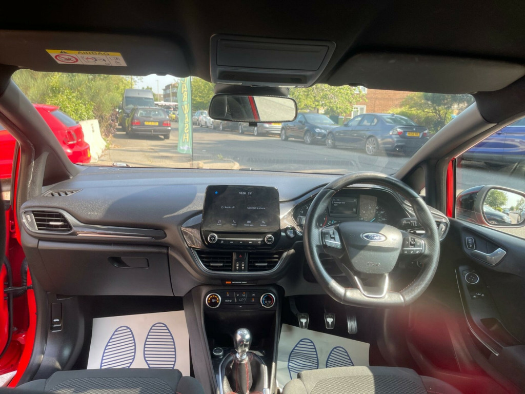 Beautiful Ford Fiesta 1.0T EcoBoost ST-Line in excellent condition. Top Specs,Rear Parking Sensors, Electric Windows, Electric Side Mirrors, Climate Control, Steering Control, Cruise Control, Bluetooth Connection, Aux Connection, Alloys, Isofix, and many more...., Great Mpg, cheap to Tax and Insure. ULEZ compliant, 2 Previous Owners. The car has been very well looked after and comes with FULL-Service history. We had it serviced recently at 71700 miles on 10/10/2025. It has also been MOTed till 05/10/2026 with no advisory. 3 Months essential warranty with Customer Protect is also included for your peace of mind. It is in very good condition and drives very smoothly with no fault whatsoever. ALL OUR CARS ARE FULLY INSPECTED BY PROFESSIONALS PRIOR TO ADVERTISEMENT & COME WITH 12 MONTHS FREE BASIC AA BREAKDOWN COVER. Finance is also available on request. DRIVE-AWAY INSURANCE IS ALSO AVAILABLE AT A COST. TO VIEW MORE STOCK PLEASE VISIT OUR WEBSITE AT: WWW.MEGAMOTORSUK.CO.UK , uise control, rear view camera, shadow black contrast roof and mirrors, spare wheel - 14in steel, court cloth - ebony, 17in alloy wheels - 5x2-spoke - rock metallic, air conditioning - manual, airbags - driver and front passenger, airbags - front side impact, airbags - front and rear side curtain, anti-lock braking system - abs with electronic brake force distribution - ebd, black belt line finisher, centre console with two cupholders and 12v power point, courtesy light - front map light and rear - overhead led, door handles - body colour, door lever - chrome finish, door mirrors - heated - electric - integrated side indicators - body coloured, epas - electric power assisted steering, emergency brake warning - automatic hazard warning lights, enhanced electronic stability control - esc with traction control - emergency brake assist - eba - hill start assist - hsa and trailer sway control, ford easy-fuel capless refuelling system, ford sync with touchscreen - dab radio - apple carplay and android auto, front bumper - unique st-line, front door threshold plates - st-line, front seat - drivers manual height and fore-aft adjustment, front seats - sports style, gearshift knob - leather-trimmed with aluminium insert, glovebox - illuminated, headlights - automatic on-off, headlights - halogen projector with black bezel and dedicated led daytime running lights, headliner - black woven, headliner - woven-dark, ips - intelligent protection system, keyless start with ford power start button, large rear spoiler - body colour with centre high mounted stop light, leather-trimmed handbrake, mykey, ncap pack, overhead console - sunglasses holder, quickclear heated windscreen, rear bumper - unique st-line, rear fog lamps, rear lights - non-led, rear seat - 60-40 split back and cushion, remote central locking and engine immobiliser, st-line front fog lamps with cornering lights, st-line side skirt body mouldings - body colour, seats - isofix mounting provision for child seats, sports pedals, sports tuned suspension, steering column - rake and reach adjustment, steering wheel - st-line 3-spoke leather trimmed flat bottomed, tailgate wash-wipe, thatcham category 1 alarm, trip computer, tyre pressure monitoring system - tpms, tyre repair kit, unique st-line upper grille and full bodystyling kit with st-line wing badges, warning triangle storage, windows - electrically operated front with one touch lowering-closing on drivers side, wipers - standard with 6 speed interval settings