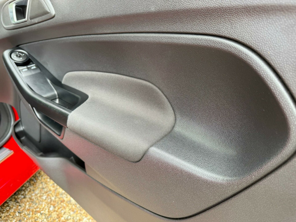 With a full service history and a clear vehicle check, this 2017 Ford Fiesta ST-Line is a great choice. As a ST-Line trim, this Fiesta is equipped with a 1.0L petrol engine and complies with Euro 6 emission standards. The car includes rear privacy glass, manual air conditioning, and a Ford DAB radio with Ford SYNC, including Bluetooth connectivity. With only 59000 miles on the clock, this Fiesta has low mileage for its age.This Fiesta stands out with its impressive fuel economy, achieving up to 63 mpg, meaning lower running costs compared to similar vehicles. It also boasts low CO2 emissions, making it a greener choice. The car can accelerate from 0-62mph in just 9.0 seconds, demonstrating its responsive performance. ar privacy glass, 17in alloy wheels - 8-spoke - rock metallic finish, bumpers - front and rear body colour, centre console, courtesy light - front with map reading lights, courtesy light - rear, door handles - body colour, door mirrors - electrically-operated and heated - integrated side indicators - body colour housing, double locking, dress up kit - full, drivers seat lumbar support, epas - electric power assisted steering, ecoselect button, electrically-operated front windows with one touch, engine immobiliser - passive anti-theft system, first aid kit and warning traingle storage, footwell lights - driver and passenger, ford dab with ford sync, ford easy fuel capless refuelling system with misfuel inhibitor, front fog lights - black bezel rings, front lower grille insert - mesh black, front seats - sports style, front upper grille insert - black mesh, full body styling kit, gear shift indicator, gearshift knob - leather, glovebox - illuminated, halogen projector headlights with silver surrounds and led daytime running lights, headlights - courtesy delay, headlining - woven - dark, high-mounted rear brake light, hill start assist, ips - intelligent protection system, interior door lever - chrome finish, loadspace compartment light, loadspace floor carpet, locking wheel nuts, manual air conditioning, mykey, pedals - sports, perimeter alarm, pollen filter, power point socket - 12 v, quickclear heated windscreen, rear lights - led night signature, remote central locking with two flip keys, removable package tray, st full body styling kit, seats - drivers 4-way manual adjustment, sports suspension, steering wheel - st-line 3-spoke leather-trimmed, suspension - front stabiliser bar, tailgate handle - body colour, tailgate wash-wipe, tinted glass, trip computer, tyre pressure monitoring system, wipers - front variable intermittent