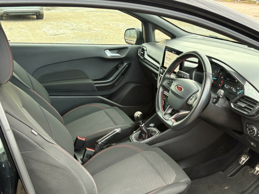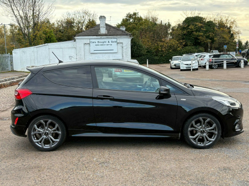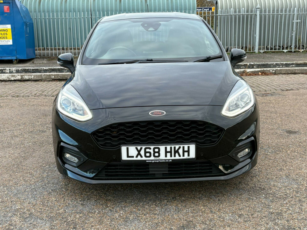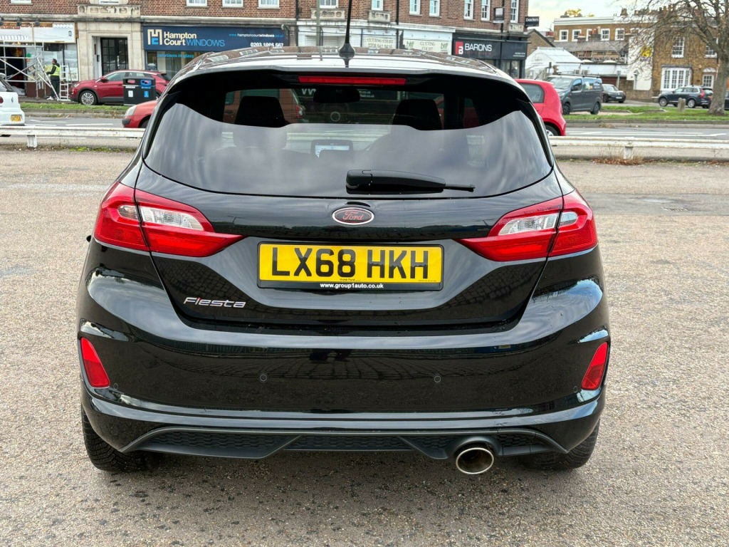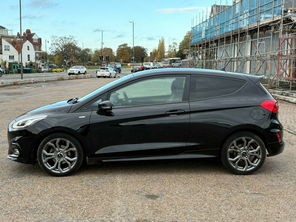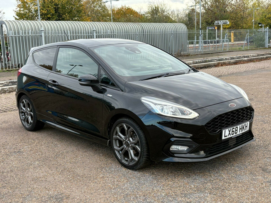 Ford Fiesta 998cc ST Line Turbo in Black with Dark Grey Cloth Trim, Only 63,000 Miles, Service History, Presented in Great Condition with Service History & very Recent MOT, Apple Car Play, HPi Clear, 2 Keys Warranty, Glenbournes Hampton Court Motor Centre KT8 9AE TEL: 0203 968 0956 or 07836 221295 in alloy wheels - 5x2-spoke - rock metallic, air conditioning - manual, airbags - driver and front passenger, airbags - front side impact, airbags - front and rear side curtain, anti-lock braking system - abs with electronic brake force distribution - ebd, black belt line finisher, centre console with two cupholders and 12v power point, courtesy light - front map light and rear - overhead led, door handles - body colour, door lever - chrome finish, door mirrors - heated - electric - integrated side indicators - body coloured, epas - electric power assisted steering, emergency brake warning - automatic hazard warning lights, enhanced electronic stability control - esc with traction control - emergency brake assist - eba - hill start assist - hsa and trailer sway control, ford easy-fuel capless refuelling system, ford sync with touchscreen - dab radio - apple carplay and android auto, front bumper - unique st-line, front door threshold plates - st-line, front seat - drivers manual height and fore-aft adjustment, front seats - sports style, gearshift knob - leather-trimmed with aluminium insert, glovebox - illuminated, headlights - automatic on-off, headlights - halogen projector with black bezel and dedicated led daytime running lights, headliner - black woven, headliner - woven-dark, ips - intelligent protection system, keyless start with ford power start button, large rear spoiler - body colour with centre high mounted stop light, leather-trimmed handbrake, mykey, ncap pack, overhead console - sunglasses holder, quickclear heated windscreen, rear bumper - unique st-line, rear fog lamps, rear lights - non-led, rear seat - 60-40 split back and cushion, remote central locking and engine immobiliser, st-line front fog lamps with cornering lights, st-line side skirt body mouldings - body colour, seats - isofix mounting provision for child seats, sports pedals, sports tuned suspension, steering column - rake and reach adjustment, steering wheel - st-line 3-spoke leather trimmed flat bottomed, tailgate wash-wipe, thatcham category 1 alarm, trip computer, tyre pressure monitoring system - tpms, tyre repair kit, unique st-line upper grille and full bodystyling kit with st-line wing badges, warning triangle storage, windows - electrically operated front with one touch lowering-closing on drivers side, wipers - standard with 6 speed interval settings