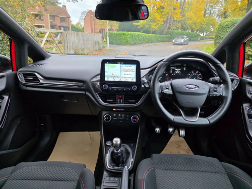 This 2018 Ford Fiesta ST Line offers peace of mind with a clear vehicle history check and a full 12 months MOT provided on purchase. This popular hatchback is equipped with a 1.0L petrol engine and meets Euro 6 emissions standards. Inside, you'll find the convenient Ford Navigation System with Ford SYNC 3, offering seamless integration with Apple CarPlay and Android Auto, alongside a Ford DAB Radio that also supports these smartphone connectivity features. Experience impressive performance with this Fiesta, accelerating from 0 to 62mph in just 9.0 seconds. Its fuel economy is a notable highlight, achieving an excellent 58 mpg, and it also boasts low CO2 emissions, indicating it is a more efficient choice compared to many other vehicles in its class. Ford DAB Radio with Ford SYNC3 - Apple Car Play and Android Auto,Quickclear Heated Windscreen,17in Alloy Wheels - ST-Line 5-Spoke - Rock Metallic,Electronic Stability Control - ESC with Traction Control and Emergency Brake Assist - EBA,Ford Easy Fuel System,Power Steering,Sports Pedals,Sports Tuned Suspension,Ford Navigation System with Ford SYNC 3 - Apple CarPlay and Android Auto
