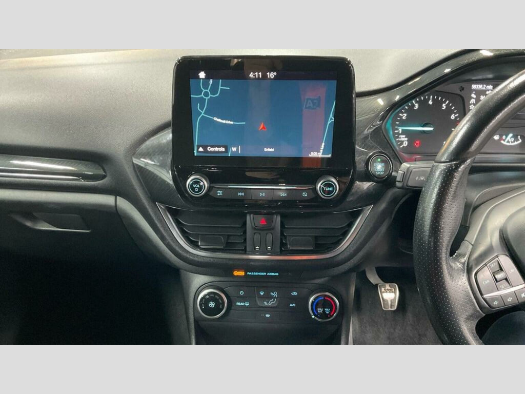 Boasting a remarkably low mileage for its age, this 2017 Ford Fiesta T ST Line presents a superb ownership proposition. This Euro 6 compliant model features a 1.0L petrol engine and comes with a clear vehicle history check, a full service history, and a 3 month warranty for your peace of mind. The ST Line trim enhances its sporty appeal, and it includes the convenient City Pack with rear parking sensors, automatic headlights, and manual air conditioning. Stay connected and entertained with the Ford DAB Radio, featuring Ford SYNC3 with Apple CarPlay and Android Auto compatibility. This Fiesta T ST Line offers impressive efficiency, achieving an outstanding 66 mpg and benefiting from low CO2 emissions, making it an economical choice. Its acceleration from 0 to 62 mph in just 10.5 seconds demonstrates a responsive driving experience that surpasses many vehicles in its class. Furthermore, a 12 month MOT will be provided on purchase, ensuring its roadworthiness.