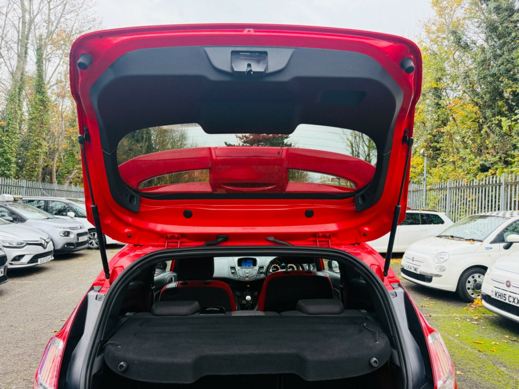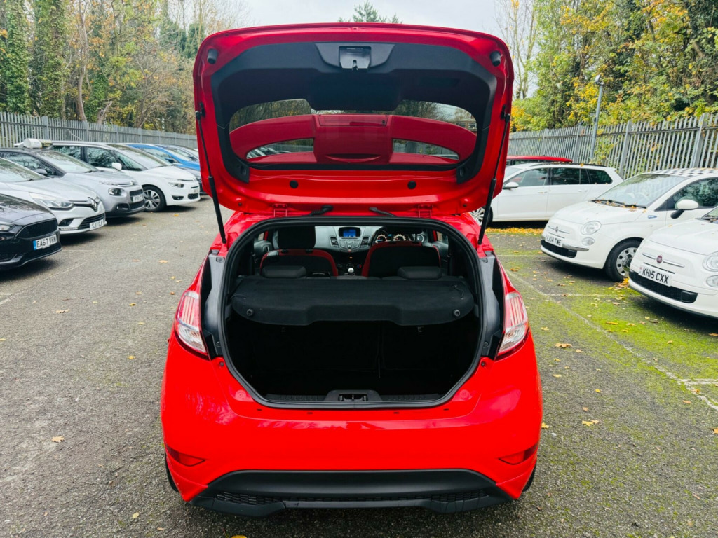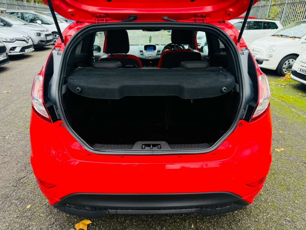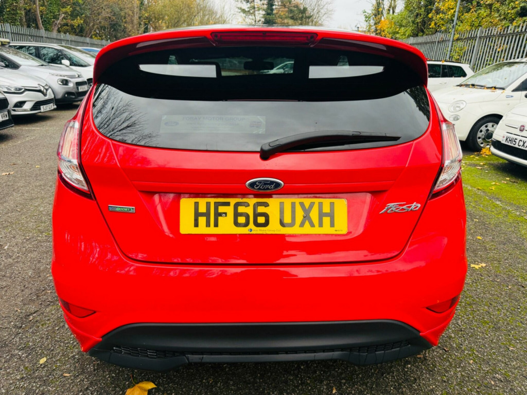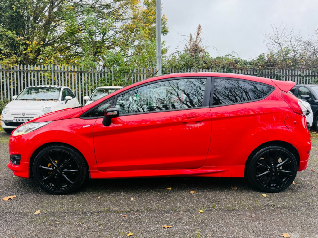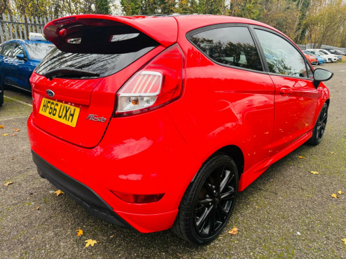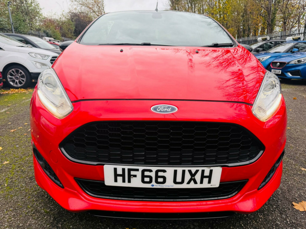 RED, SERVICE HISTORY, FINANCE AVAILABLE, NAVIGATION SYSTEM, PRIVACY GLASS, START/STOP, CRUISE CONTROL,ULEZ COMPLIANTSUPERB DRIVE, VERY ECONOMICAL, ALLOY WHEELS, CLIMATE CONTROL, VERY WELL LOOKED AFTER, VERY CLEAN IN AND OUTThis 2016 Ford Fiesta ST Line is a remarkable find, having been cherished by just one owner since new. This Euro 6 compliant 1.0 litre petrol model boasts a clear vehicle history check and an MOT valid until November 2026, offering peace of mind for its next custodian. Inside, you'll appreciate the manual air conditioning for comfortable journeys, alongside the Ford DAB radio system with Ford SYNC, which includes Bluetooth connectivity for seamless phone integration and audio streaming.Experience the impressive performance of this Fiesta, with a brisk 0-62mph acceleration time of just 9.0 seconds, demonstrating its dynamic capabilities. This model also stands out for its excellent fuel economy, achieving an impressive 63 miles per gallon, and its low CO2 emissions, making it an economical and environmentally conscious choice compared to many other vehicles in its class.. 17in Alloy Wheels - 8-Spoke - Rock Metallic Finish, Bumpers - Front and Rear Body Colour, Centre Console, Courtesy Light - Front with Map Reading Lights, Courtesy Light - Rear, Door Handles - Body Colour, Door Mirrors - Electrically-operated and Heated - Integrated Side Indicators - Body Colour Housing, Double Locking, Dress Up Kit - Full, Drivers Seat Lumbar Support, EPAS - Electric Power Assisted Steering, ESP - Electronic Stability Programme, EcoSelect Button, Electrically-Operated Front Windows with One Touch, Engine Immobiliser - Passive Anti-theft System, First Aid Kit and Warning Traingle Storage, Footwell Lights - Driver and Passenger, Ford DAB with Ford SYNC, Ford Easy Fuel Capless Refuelling System with Misfuel Inhibitor, Front Fog Lights - Black Bezel Rings, Front Lower Grille Insert - Mesh Black, Front Seats - Sports Style, Front Upper Grille Insert - Black Mesh, Full Body Styling Kit, Gear Shift Indicator, Gearshift Knob - Leather, Glovebox - Illuminated, Halogen Projector Headlights with Silver Surrounds and LED Daytime Running Lights, Headlights - Courtesy Delay, Headlining - Woven - Dark, High-Mounted Rear Brake Light, Hill Start Assist, IPS - Intelligent Protection System, Interior Door Lever - Chrome Finish, Loadspace Compartment Light, Loadspace Floor Carpet, Locking Wheel Nuts, Manual Air Conditioning, MyKey, Pedals - Sports, Perimeter Alarm, Pollen Filter, Power Point Socket - 12 V, Quickclear Heated Windscreen, Rear Lights - LED Night Signature, Remote Central Locking with Two Flip Keys, Removable Package Tray, ST Full Body Styling Kit, Seats - Drivers 4-Way Manual Adjustment, Sports Suspension, Steering Wheel - ST-Line 3-Spoke Leather-Trimmed, Suspension - Front Stabiliser Bar, Tailgate Handle - Body Colour, Tailgate Wash-Wipe, Tinted Glass, Trip Computer, Tyre Pressure Monitoring System, Wipers - Front Variable Intermittent.