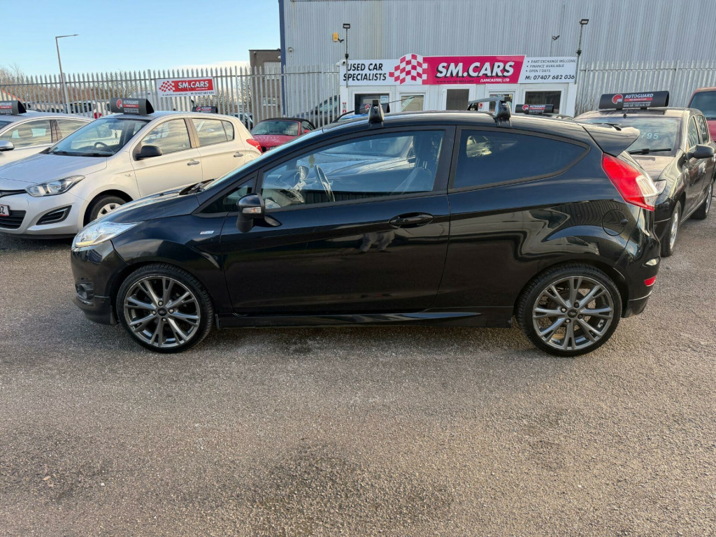Nationwide Delivery Available . Please note that the cars a Previous Damaged/Repaired car . The cars been repaired to a Fantastic Standard as I cant see where the cars been Repaired . Grab a Bargain as the cars over £2000 under the RRP . And this doesnt affect any future insurance claims . JUST COME OFF A PLATE TRANSFER , ITS COME FROM -SO10 BLE and going onto WD66DOA . 2017 66 Registered FORD FIESTA 1.0T ST-LINE 3 DOOR in a Lovely Metallic Black . As you can see car does have a Very Nice and Still Very Bright Bodywork and is a Credit to its Previous Keeper . It also has a Nice Clean Interior ( Valeted Pictures will Follow ) , And more importantly the car drives Very Well and benefits from coming FRESHLY Serviced and a NEW WET BELT Replaced . This is the ST-LINE model so it comes with its Great Looks as well as a Great Specification . The car will offer Someone a Great Modern Looking Car with its Very Low Running costs with its Amazing MPG,. Low Insurance and Road Tax . I'm sure the first to see and drive will buy . Very Practical car with a Still Good Practical Interior Space . The car Currently has MOT until OCTOBER 2026 Also comes with a 3 Months Warranty that can also be extended at Fantastic Prices . Finance Options available with Zero Deposit Options . We will take any Vehicle as a Part Exchange , Any Viewings or test drives welcome , Great PX Prices given , Were open 7 days a week , Credit, debit cards taken, We have over 60 cars in stock including other Similar Cars .For more info please dont hesitate to give us a call or send us an email.. 17in Alloy Wheels - 8-Spoke - Rock Metallic Finish, Bumpers - Front and Rear Body Colour, Centre Console, Courtesy Light - Front with Map Reading Lights, Courtesy Light - Rear, Door Handles - Body Colour, Door Mirrors - Electrically-operated and Heated - Integrated Side Indicators - Body Colour Housing, Double Locking, Dress Up Kit - Full, Drivers Seat Lumbar Support, EPAS - Electric Power Assisted Steering, ESP - Electronic Stability Programme, EcoSelect Button, Electrically-Operated Front Windows with One Touch, Engine Immobiliser - Passive Anti-theft System, First Aid Kit and Warning Traingle Storage, Footwell Lights - Driver and Passenger, Ford DAB with Ford SYNC, Ford Easy Fuel Capless Refuelling System with Misfuel Inhibitor, Front Fog Lights - Black Bezel Rings, Front Lower Grille Insert - Mesh Black, Front Seats - Sports Style, Front Upper Grille Insert - Black Mesh, Full Body Styling Kit, Gear Shift Indicator, Gearshift Knob - Leather, Glovebox - Illuminated, Halogen Projector Headlights with Silver Surrounds and LED Daytime Running Lights, Headlights - Courtesy Delay, Headlining - Woven - Dark, High-Mounted Rear Brake Light, Hill Start Assist, IPS - Intelligent Protection System, Interior Door Lever - Chrome Finish, Loadspace Compartment Light, Loadspace Floor Carpet, Locking Wheel Nuts, Manual Air Conditioning, MyKey, Pedals - Sports, Perimeter Alarm, Pollen Filter, Power Point Socket - 12 V, Quickclear Heated Windscreen, Rear Lights - LED Night Signature, Remote Central Locking with Two Flip Keys, Removable Package Tray, ST Full Body Styling Kit, Seats - Drivers 4-Way Manual Adjustment, Sports Suspension, Steering Wheel - ST-Line 3-Spoke Leather-Trimmed, Suspension - Front Stabiliser Bar, Tailgate Handle - Body Colour, Tailgate Wash-Wipe, Tinted Glass, Trip Computer, Tyre Pressure Monitoring System, Wipers - Front Variable Intermittent, Rear Privacy Glass. Part service history