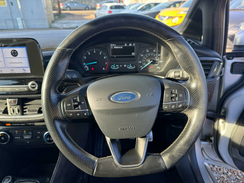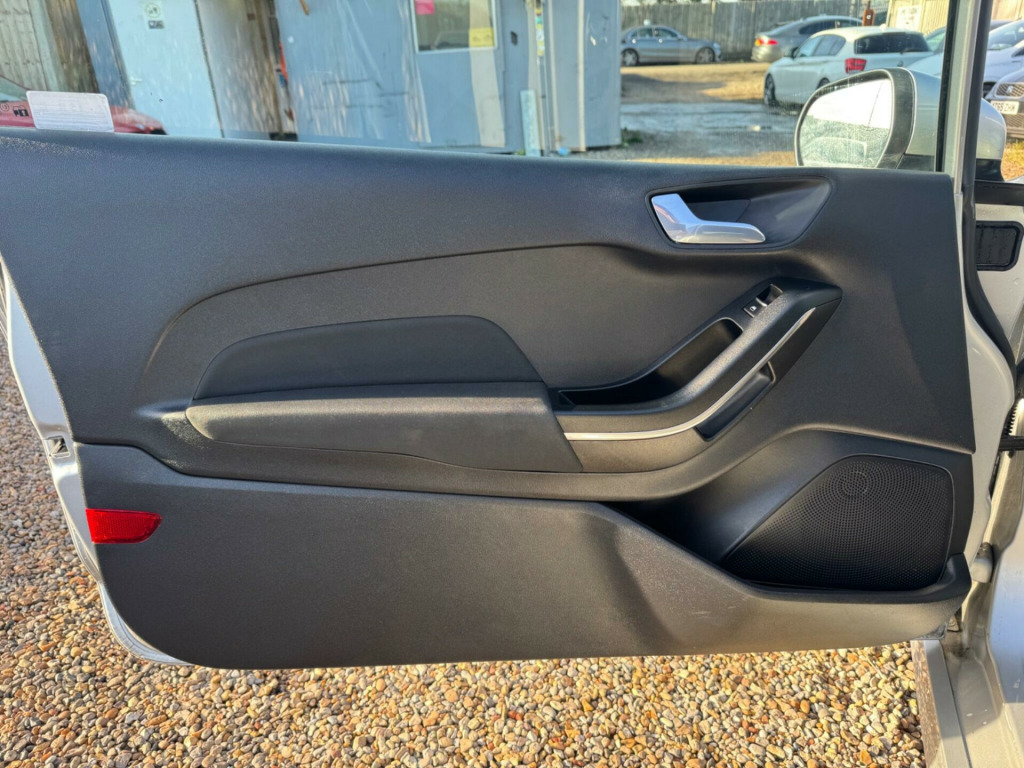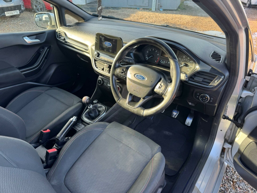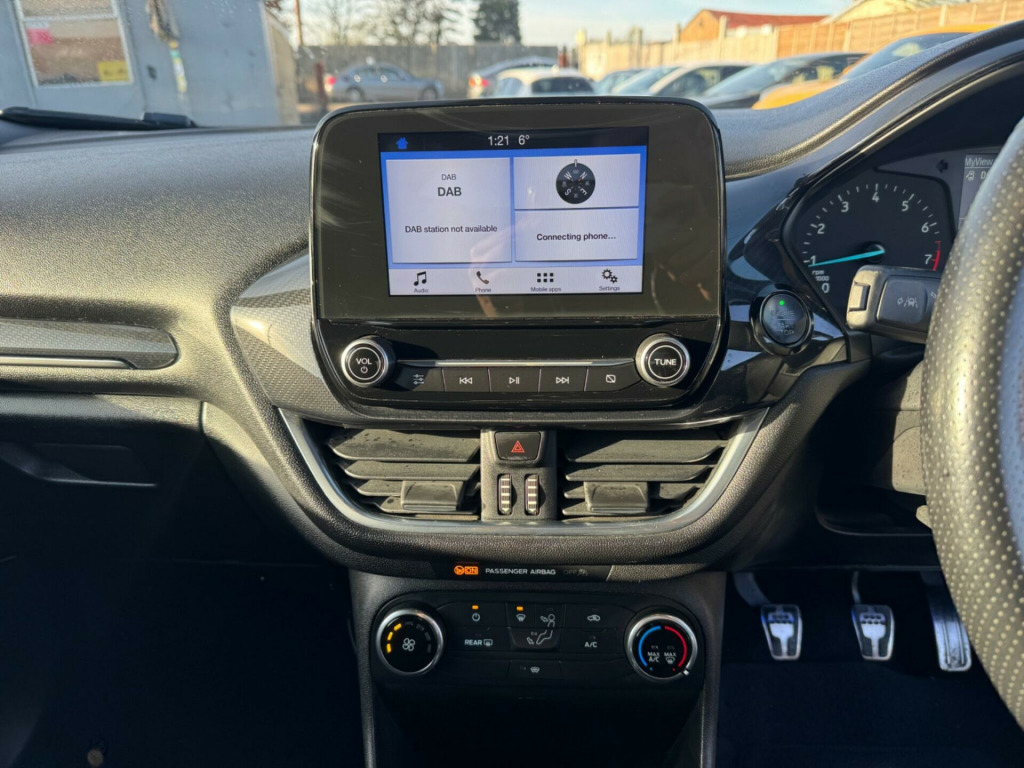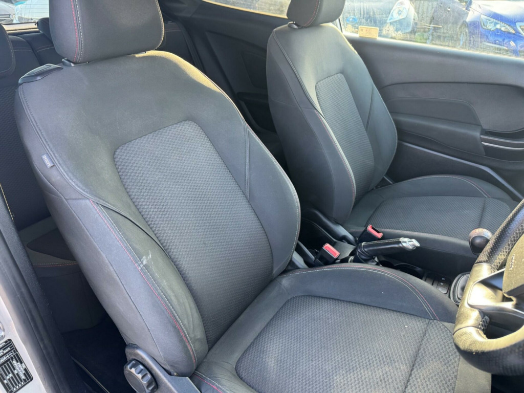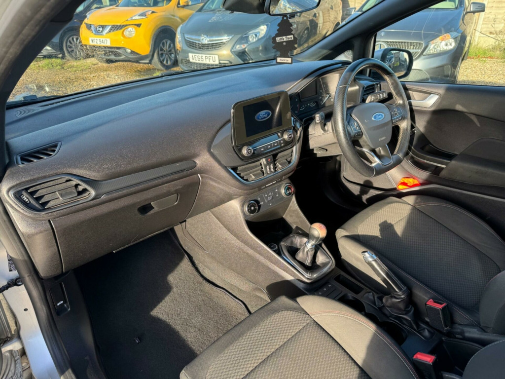 This 2017 Ford Fiesta T ST-Line offers an exceptional blend of style and efficiency, boasting an impressive fuel economy of 66 miles per gallon. As a Euro 6 compliant vehicle, it also benefits from low CO2 emissions, making it an environmentally conscious choice. This particular model comes equipped with a manual air conditioning system for your comfort, and the Ford DAB Radio featuring Ford SYNC3 integration, which seamlessly connects with both Apple CarPlay and Android Auto, ensuring you stay connected on every journey. The inclusion of automatic on-off headlights, part of the NCAP Pack, adds an extra layer of convenience and safety.Under the bonnet, you'll find a responsive 1.0L petrol engine that delivers a 0 to 62 miles per hour acceleration in just 10.5 seconds. These performance figures, combined with its outstanding fuel economy and low emissions, demonstrate how this Ford Fiesta ST-Line stands out from other vehicles in its class, offering a compelling package for drivers seeking a practical yet engaging driving experience. in alloy wheels - st-line 5-spoke - rock metallic, abs - anti-lock braking system, air conditioning - manual, airbags - driver, airbags - front passenger, airbags - front and rear side curtain, airbags - side curtain, airbags - side impact, black belt line finisher, body coloured electrically operated door mirrors with integrated side indicators, centre console with armrest and illuminated cupholders, courtesy light - ambient led courtesy lighting cup holder, courtesy light - front map light and rear - overhead led, door handles - body colour, door lever - chrome finish, ebd - electronic brakeforce distribution, electrically-operated front windows with one touch drivers, electronic stability control - esc with traction control and emergency brake assist - eba, electronic stability programme - esp with hill start assist, ford dab radio with ford sync3 - apple car play and android auto, ford easy fuel system, front bumper - unique st-line, front seats - sports style, gearshift knob - st -line leather trimmed with aluminium inset and metal grey gaiter stitching, glovebox - illuminated, headlights - automatic on-off, headlights - halogen projector with black bezel and dedicated led daytime running lights, headliner - woven, ips - intelligent protection system, leather-trimmed handbrake, manual drivers seat height adjustment, mykey, ncap pack, overhead console - sunglasses holder, power steering, quickclear heated windscreen, rear bumper - unique st-line, rear fog lamps, rear seat - 60-40 split back and cushion, rear spoiler - body colour - large, remote central locking and engine immobiliser, st floor mats - front and rear, st line front scuff plates, st-line front fog lamps with cornering lights, st-line side skirt body mouldings - body colour, sports pedals, sports tuned suspension, steering column - rake and reach adjustment, steering wheel - st-line 3-spoke leather trimmed flat bottomed, tailgate wash-wipe, thatcham alarm, trip computer, tyre pressure monitoring system - tpms, tyre repair kit, unique st-line upper grille and full bodystyling kit with st-line wing badges, warning triangle storage, wipers - standard with 6 speed interval settings