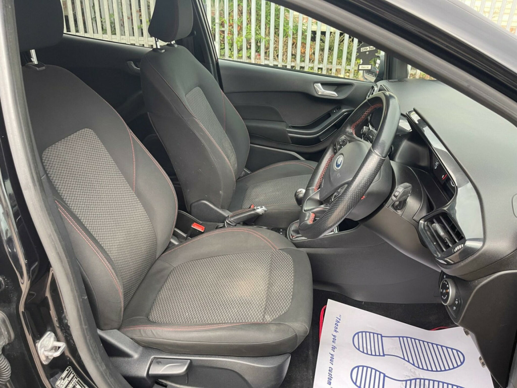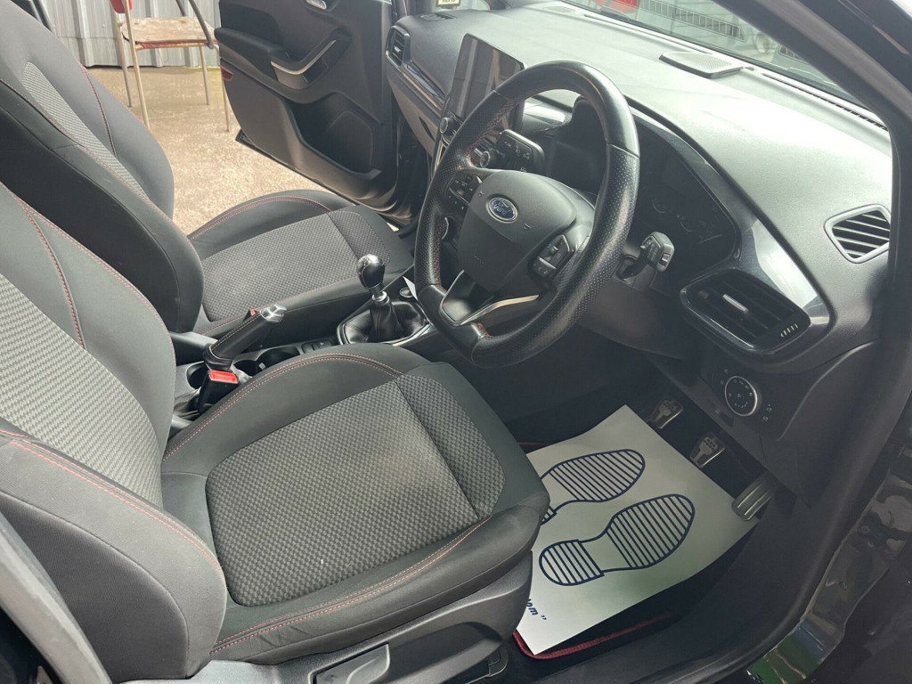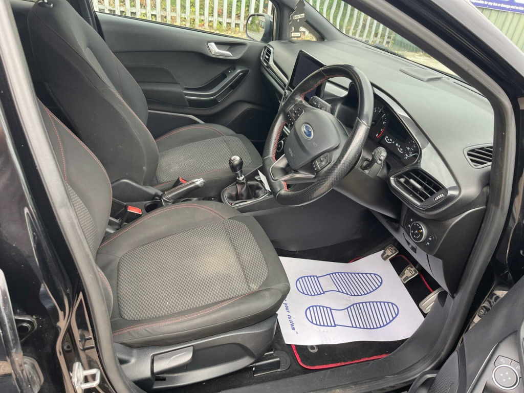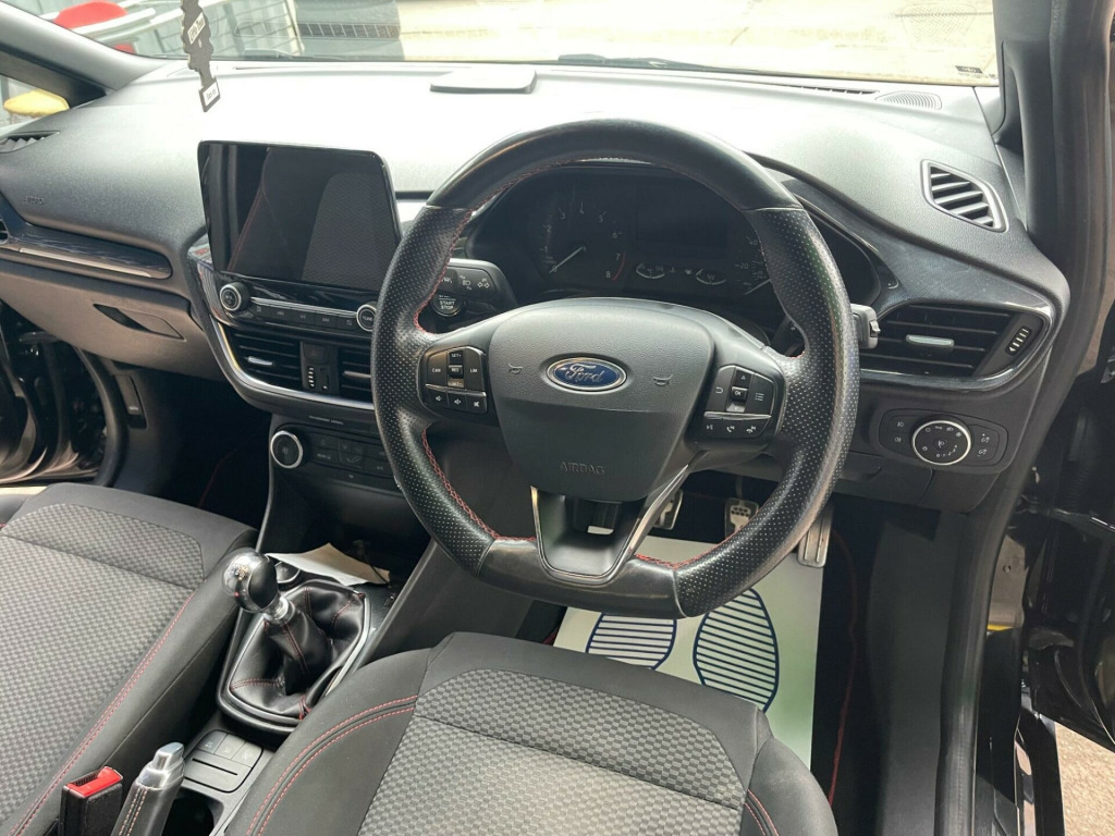 This 2019 Ford Fiesta ST Line offers a compelling blend of sporty styling and modern technology. Powered by an efficient 1.0 litre petrol engine, this Euro 6 compliant model is registered in 2019 and presents itself as a well equipped example of the popular Fiesta range. Inside, you'll find the convenient Ford SYNC system, complete with a touchscreen, DAB radio, and seamless integration for both Apple CarPlay and Android Auto, ensuring your smartphone is always connected. Comfort is further enhanced by manual air conditioning, while the automatic on-off headlights, also part of the NCAP Pack, add to the driving ease and safety.The driving experience of this Fiesta ST Line is further enhanced by its responsive performance, achieving 0 to 62 miles per hour in just 10.0 seconds. This acceleration figure, alongside its low CO2 emissions, indicates a vehicle that balances spirited driving with economical running. These attributes make it a stand out choice for those seeking a capable and enjoyable compact car.Nationwide delivery available, Engine & Gearbox Warranty , New MOT and new service included in the price, Category S repaired to a roadworthy and professional standard using genuine parts, we welcome any inspections, PX welcomed, For further information, more pictures and availability please call or message us on 07413133838 or visit our website www.KelvinWayMotors.co.uk, The car is located at Kelvin Way Motors, West Bromwich, B70 7JW, We are open Monday to Saturday 10am-6pm, Sunday and bank holidays with appointments. in alloy wheels - 5x2-spoke - rock metallic, air conditioning - manual, airbags - driver and front passenger, airbags - front side impact, airbags - front and rear side curtain, anti-lock braking system - abs with electronic brake force distribution - ebd, black belt line finisher, centre console with two cupholders and 12v power point, courtesy light - front map light and rear - overhead led, door handles - body colour, door lever - chrome finish, door mirrors - heated - electric - integrated side indicators - body coloured, epas - electric power assisted steering, emergency brake warning - automatic hazard warning lights, enhanced electronic stability control - esc with traction control - emergency brake assist - eba - hill start assist - hsa and trailer sway control, ford easy-fuel capless refuelling system, ford sync with touchscreen - dab radio - apple carplay and android auto, front bumper - unique st-line, front door threshold plates - st-line, front seat - drivers manual height and fore-aft adjustment, front seats - sports style, gearshift knob - leather-trimmed with aluminium insert, glovebox - illuminated, headlights - automatic on-off, headlights - halogen projector with black bezel and dedicated led daytime running lights, headliner - black woven, headliner - woven-dark, ips - intelligent protection system, keyless start with ford power start button, large rear spoiler - body colour with centre high mounted stop light, leather-trimmed handbrake, mykey, ncap pack, overhead console - sunglasses holder, quickclear heated windscreen, rear bumper - unique st-line, rear fog lamps, rear lights - non-led, rear seat - 60-40 split back and cushion, remote central locking and engine immobiliser, st-line front fog lamps with cornering lights, st-line side skirt body mouldings - body colour, seats - isofix mounting provision for child seats, sports pedals, sports tuned suspension, steering column - rake and reach adjustment, steering wheel - st-line 3-spoke leather trimmed flat bottomed, tailgate wash-wipe, thatcham category 1 alarm, trip computer, tyre pressure monitoring system - tpms, tyre repair kit, unique st-line upper grille and full bodystyling kit with st-line wing badges, warning triangle storage, wipers - standard with 6 speed interval settings